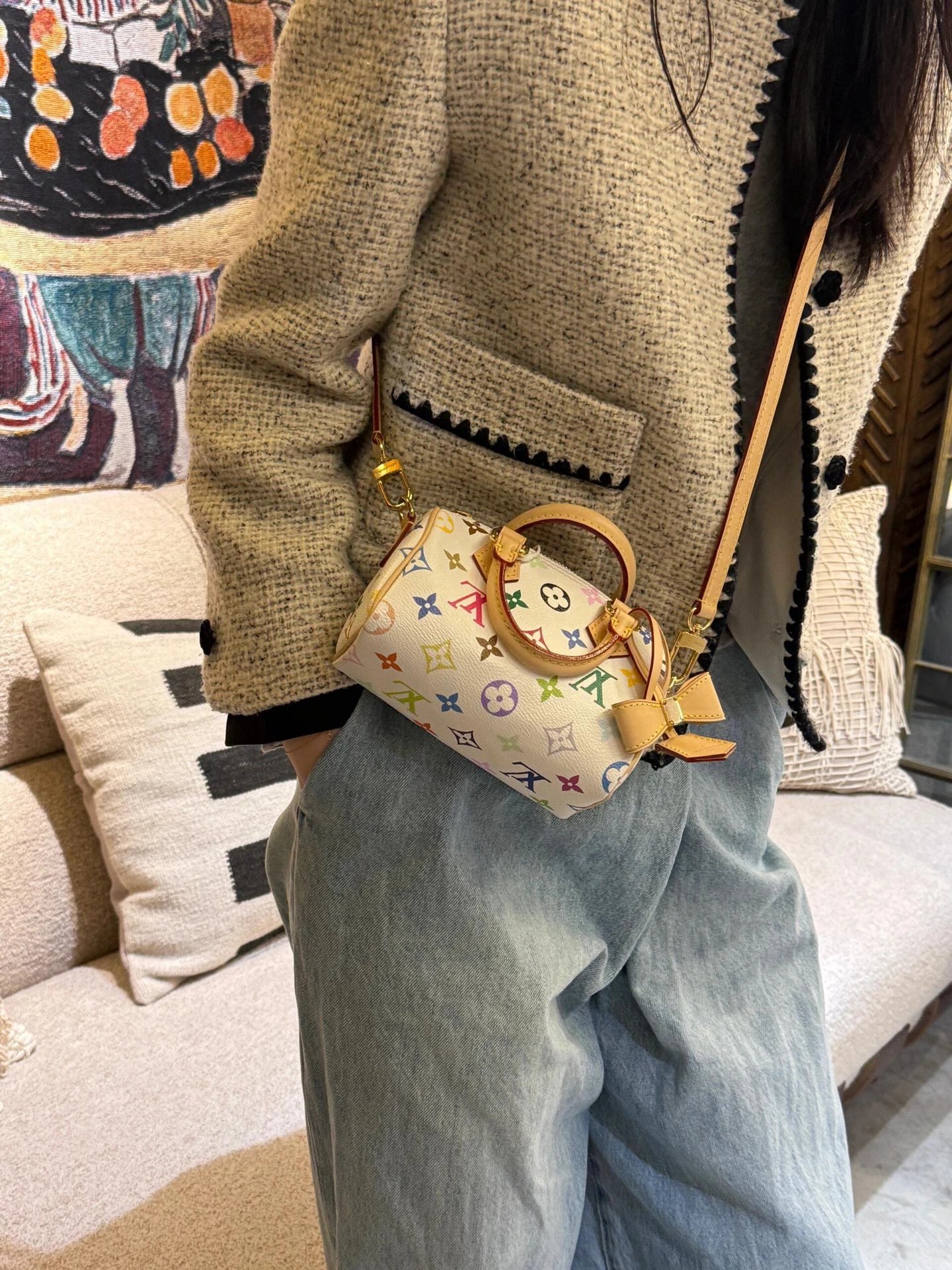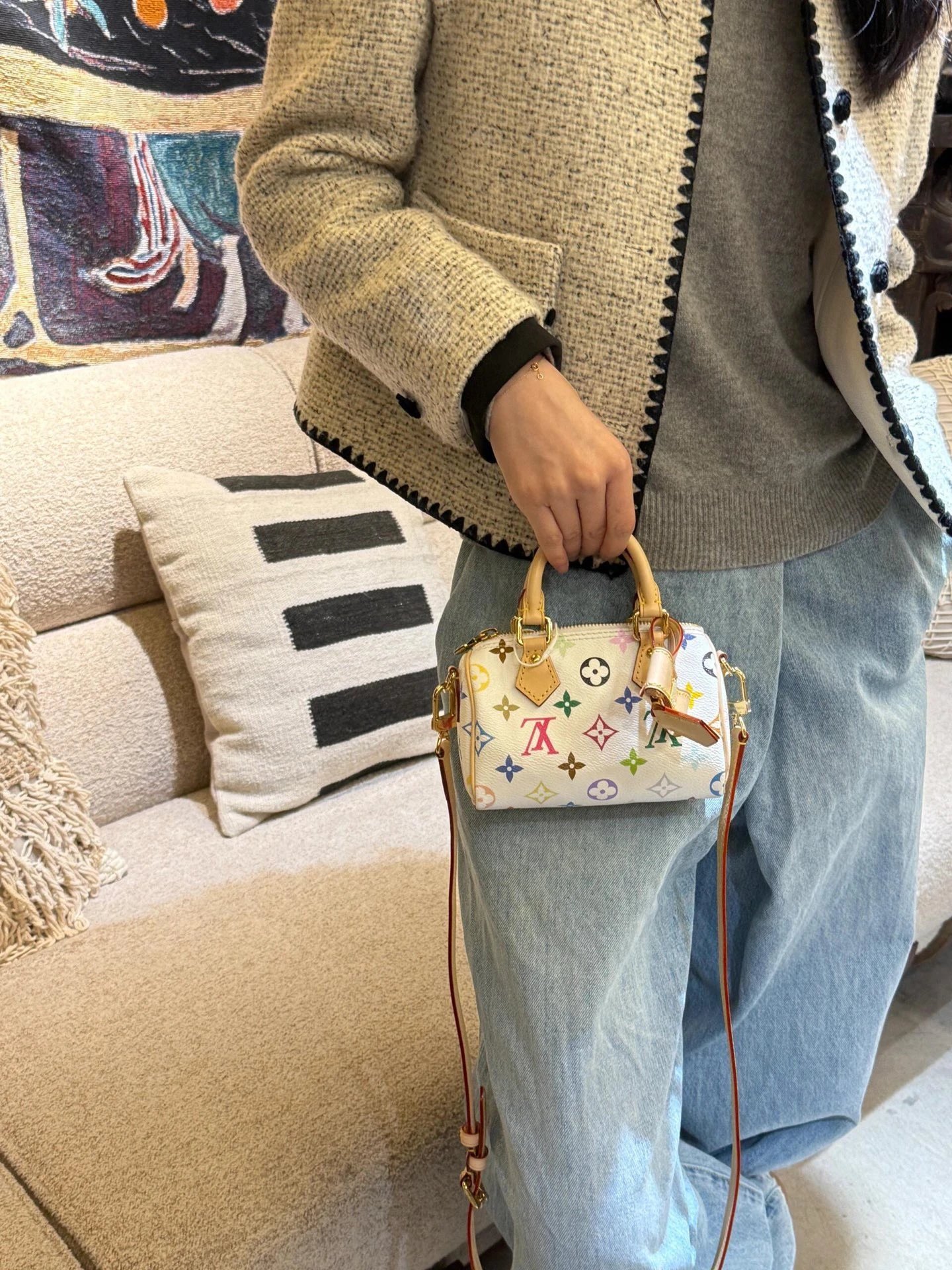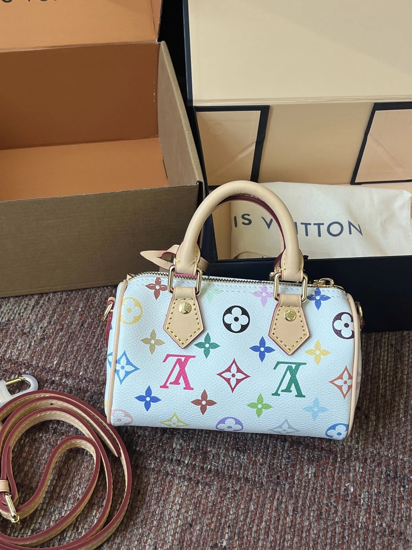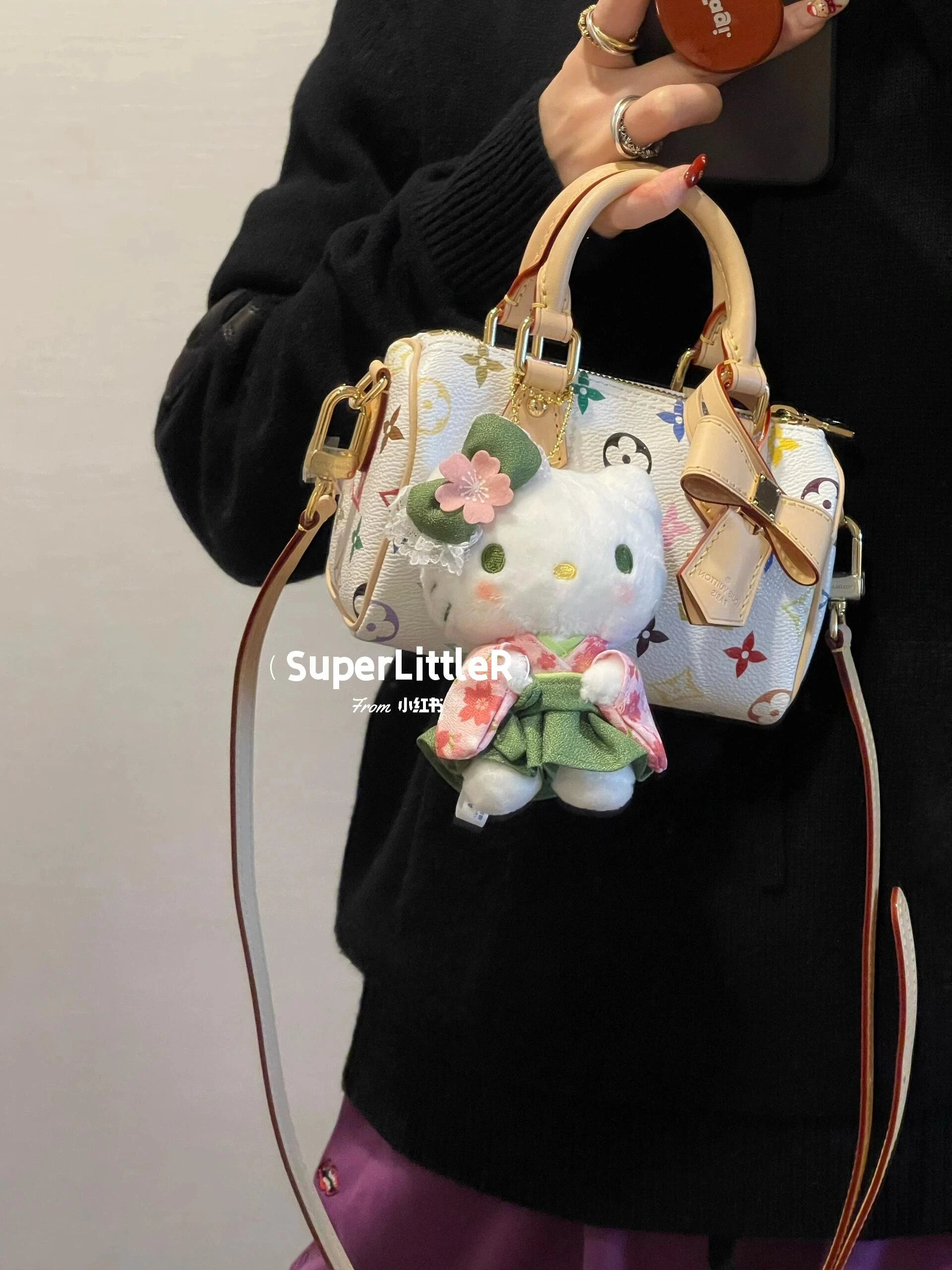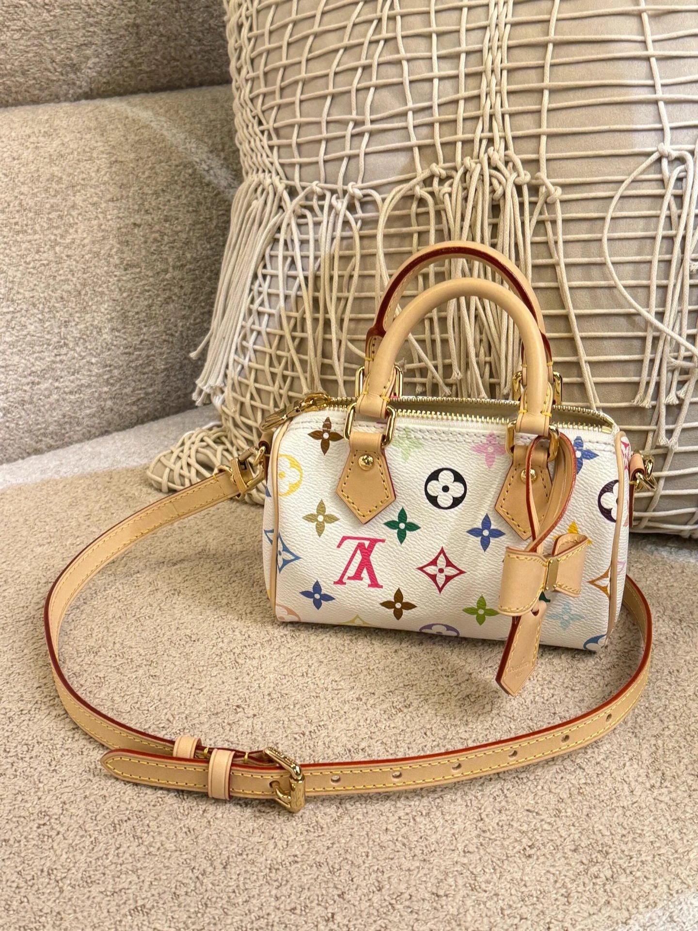 T*k*shi Mur*k*mi's white three-color series Nano Sp**dy16 handbag Mini pillow bag vintage classic shoulder bag Pure cowhide handbag Tears of the times White three-color shoulder bag Nylon wide shoulder strap Heavy industry hardware original leather