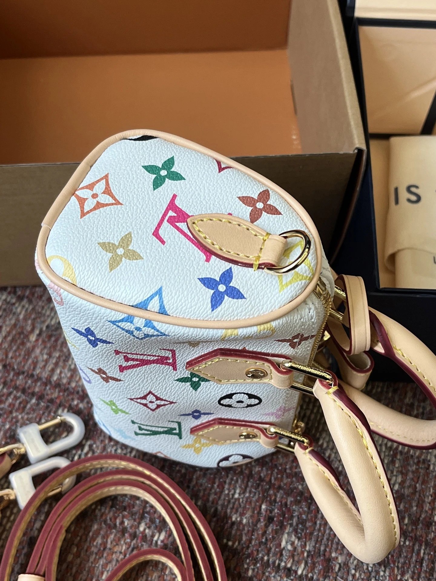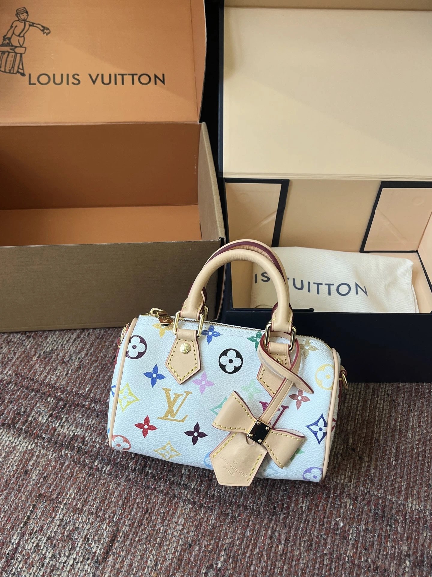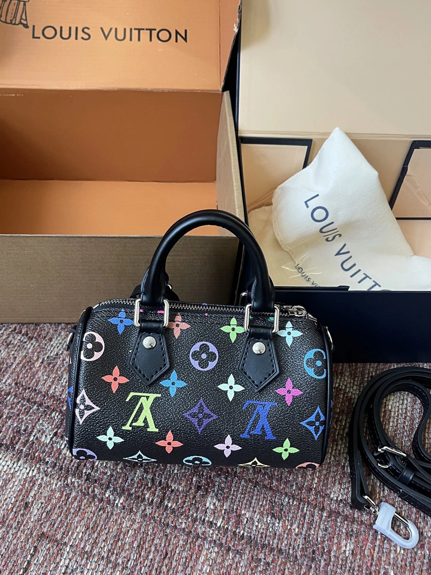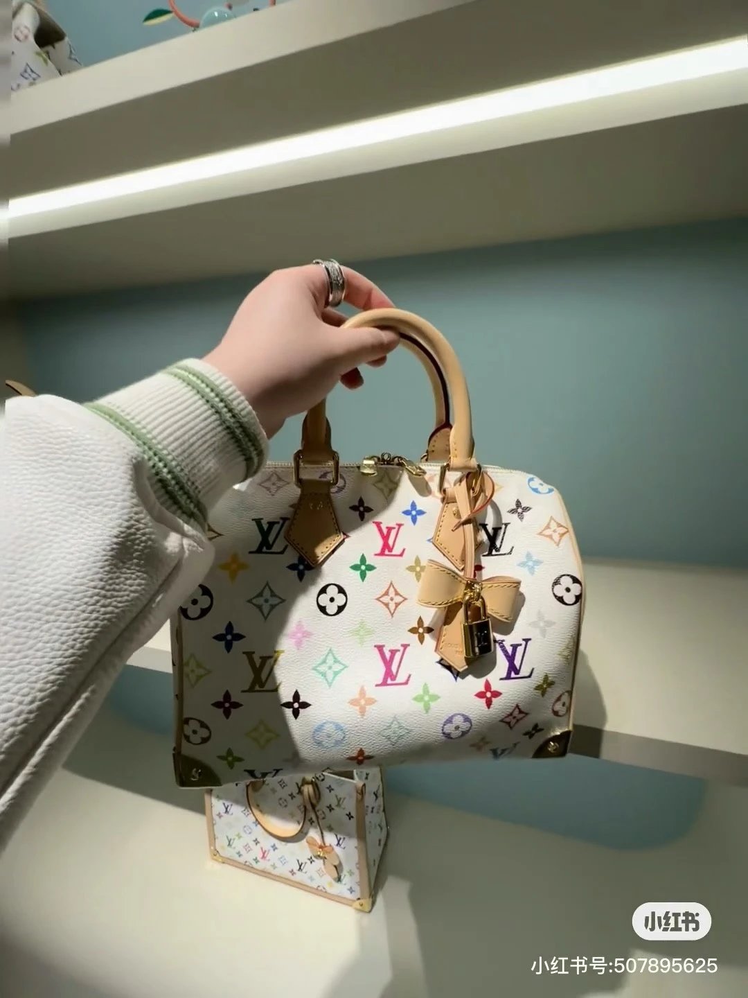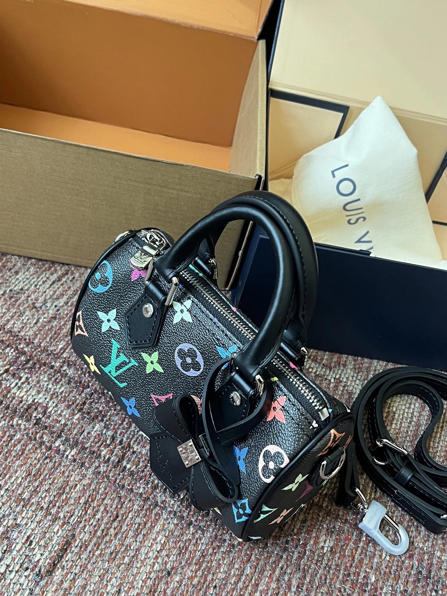 T*k*shi Mur*k*mi's white three-color series Nano Sp**dy16 handbag Mini pillow bag vintage classic shoulder bag Pure cowhide handbag Tears of the times White three-color shoulder bag Nylon wide shoulder strap Heavy industry hardware original leather