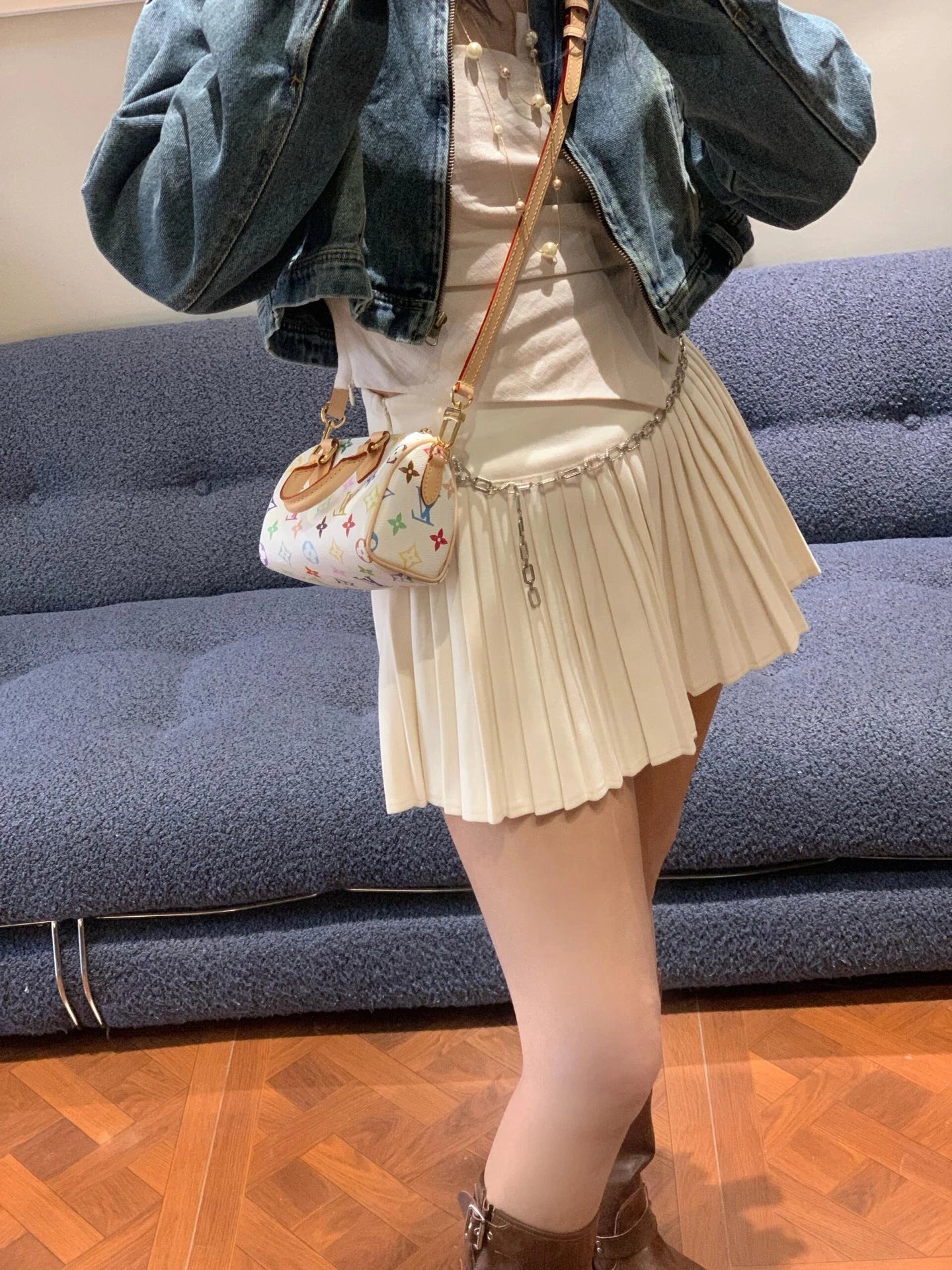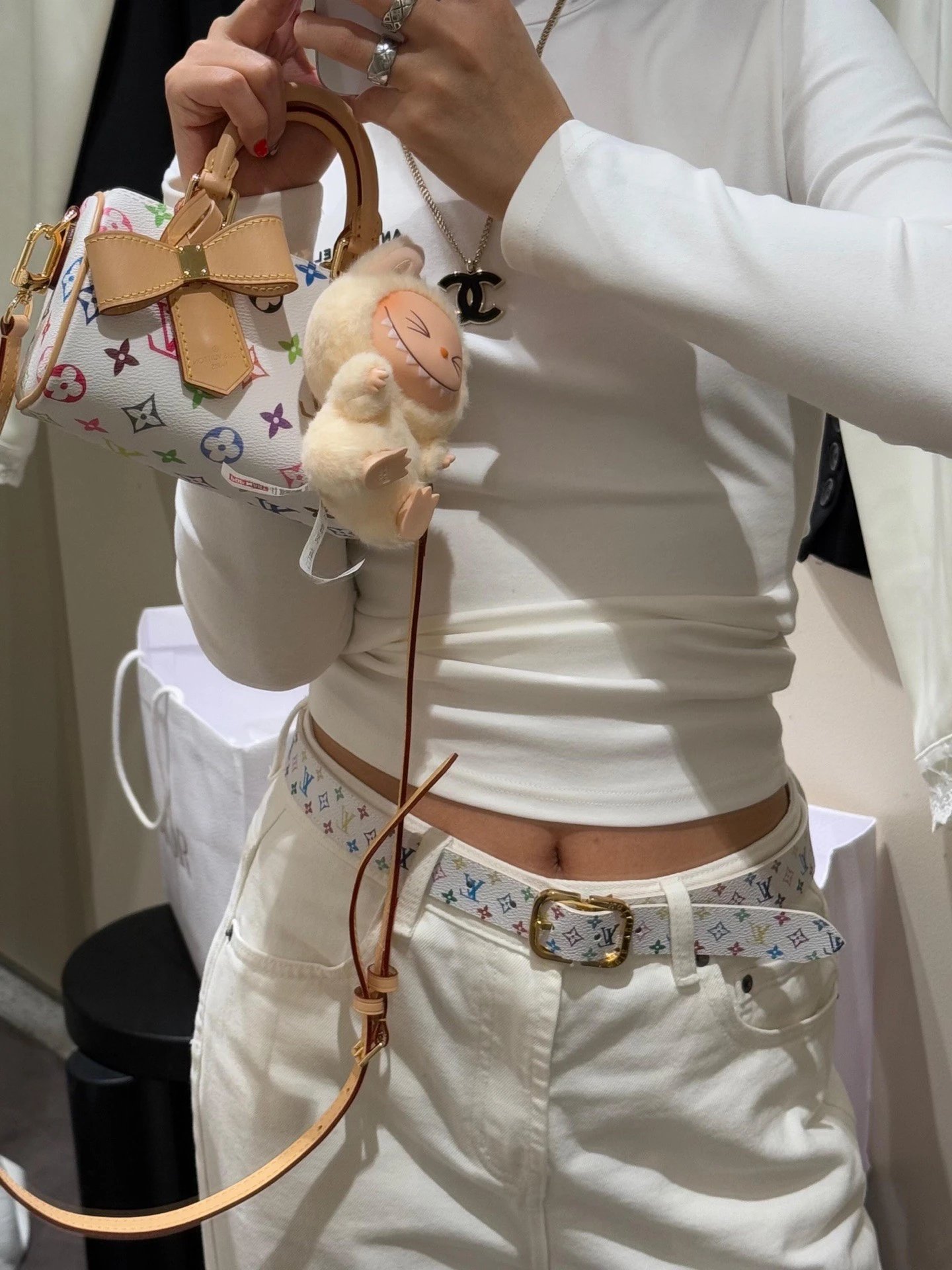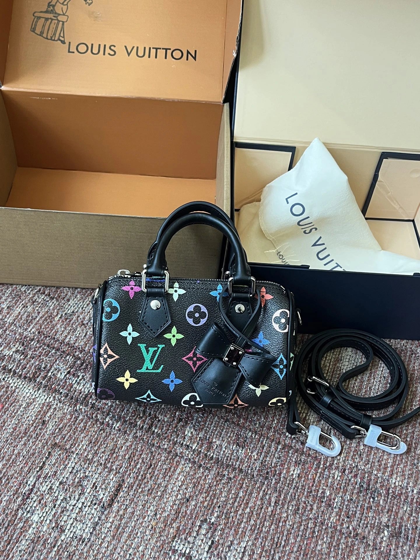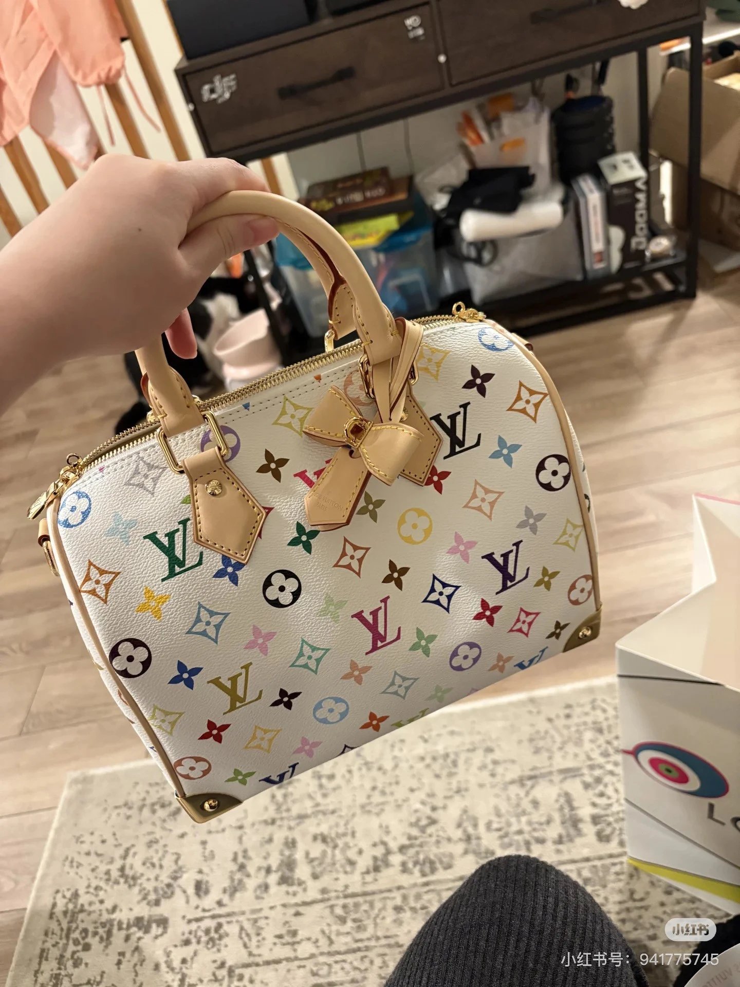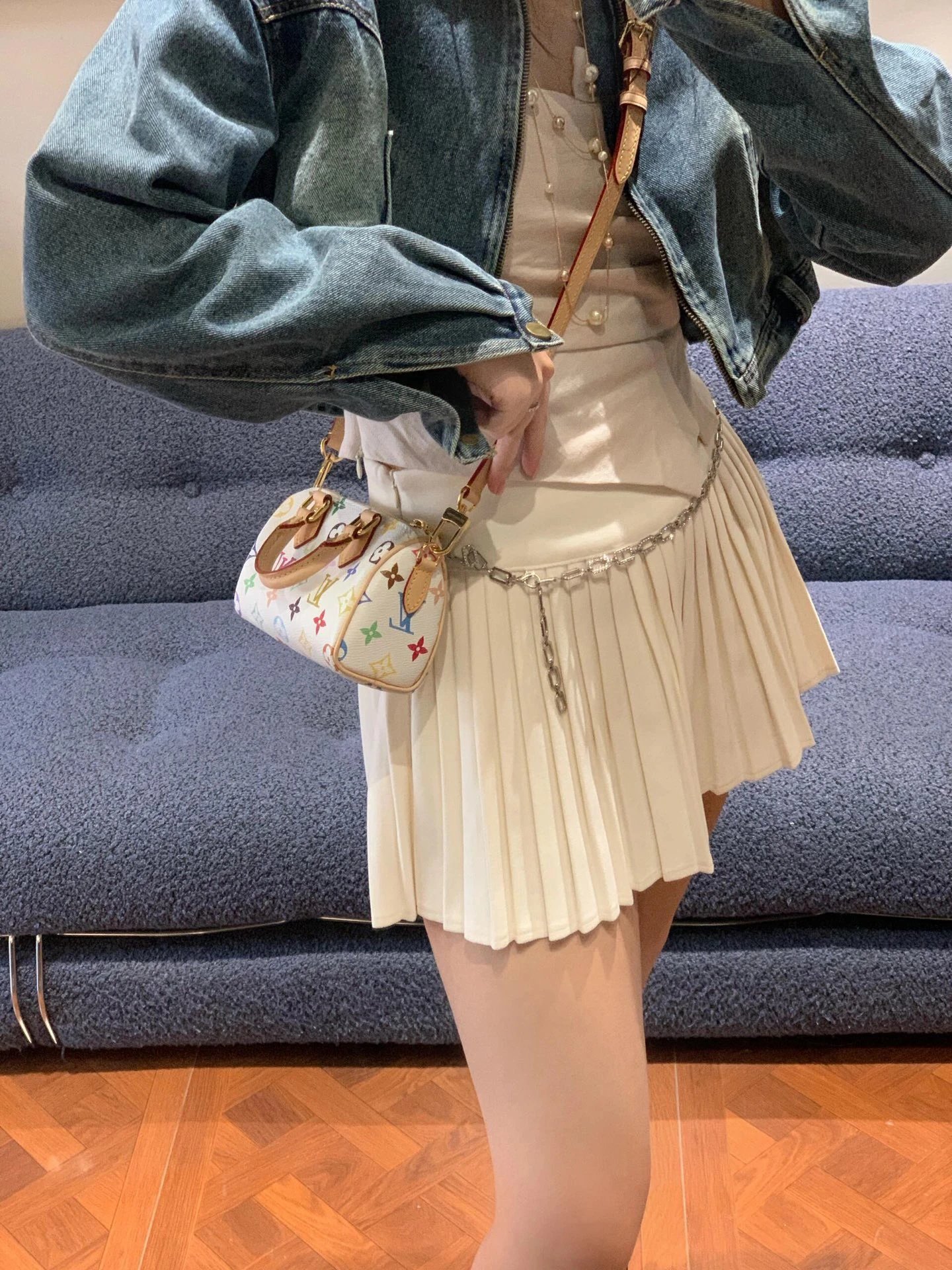 T*k*shi Mur*k*mi's white three-color series Nano Sp**dy16 handbag Mini pillow bag vintage classic shoulder bag Pure cowhide handbag Tears of the times White three-color shoulder bag Nylon wide shoulder strap Heavy industry hardware original leather