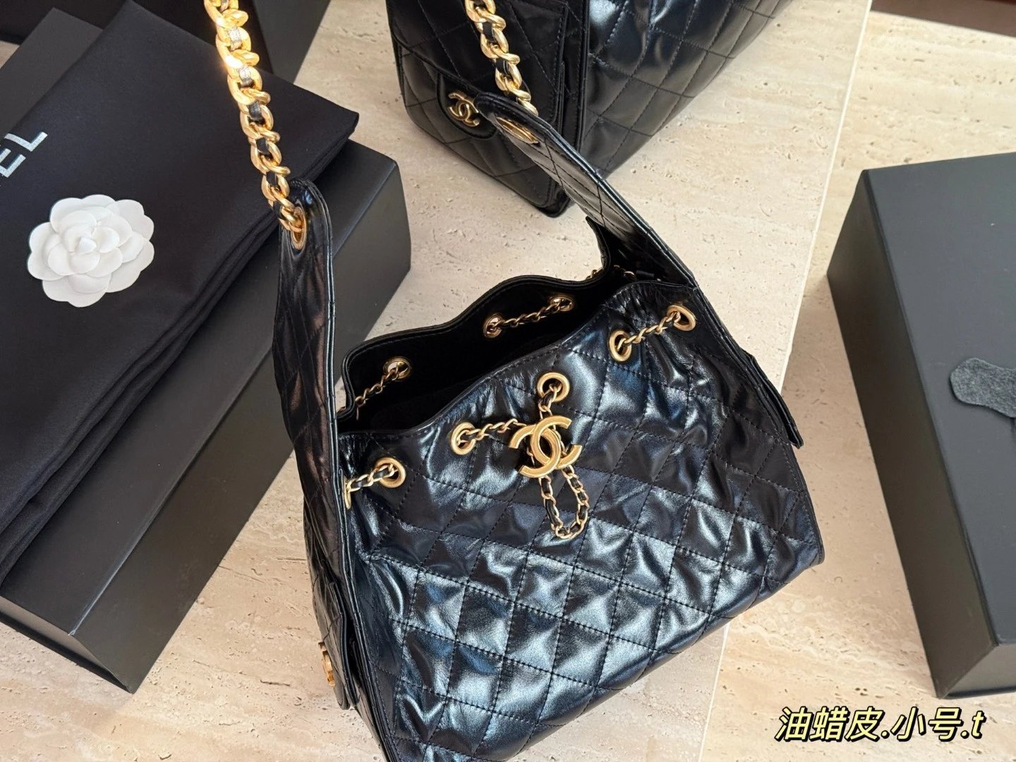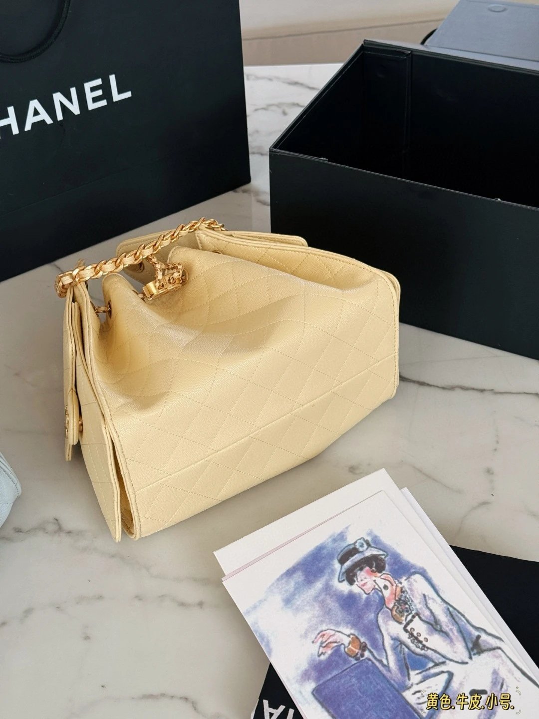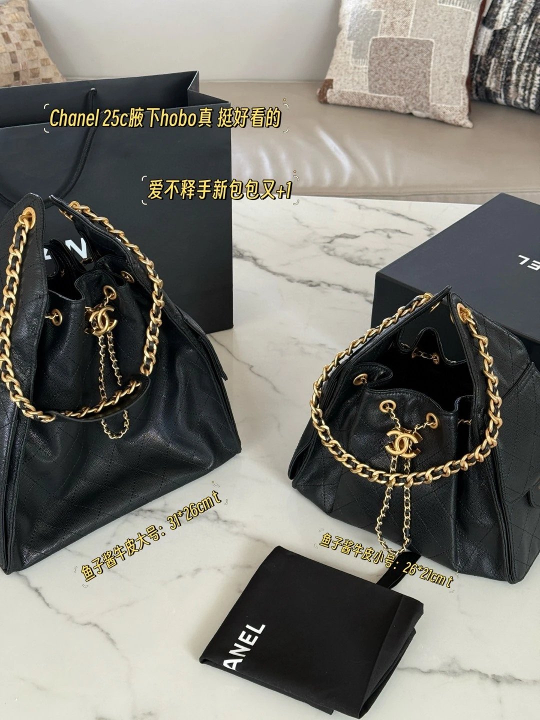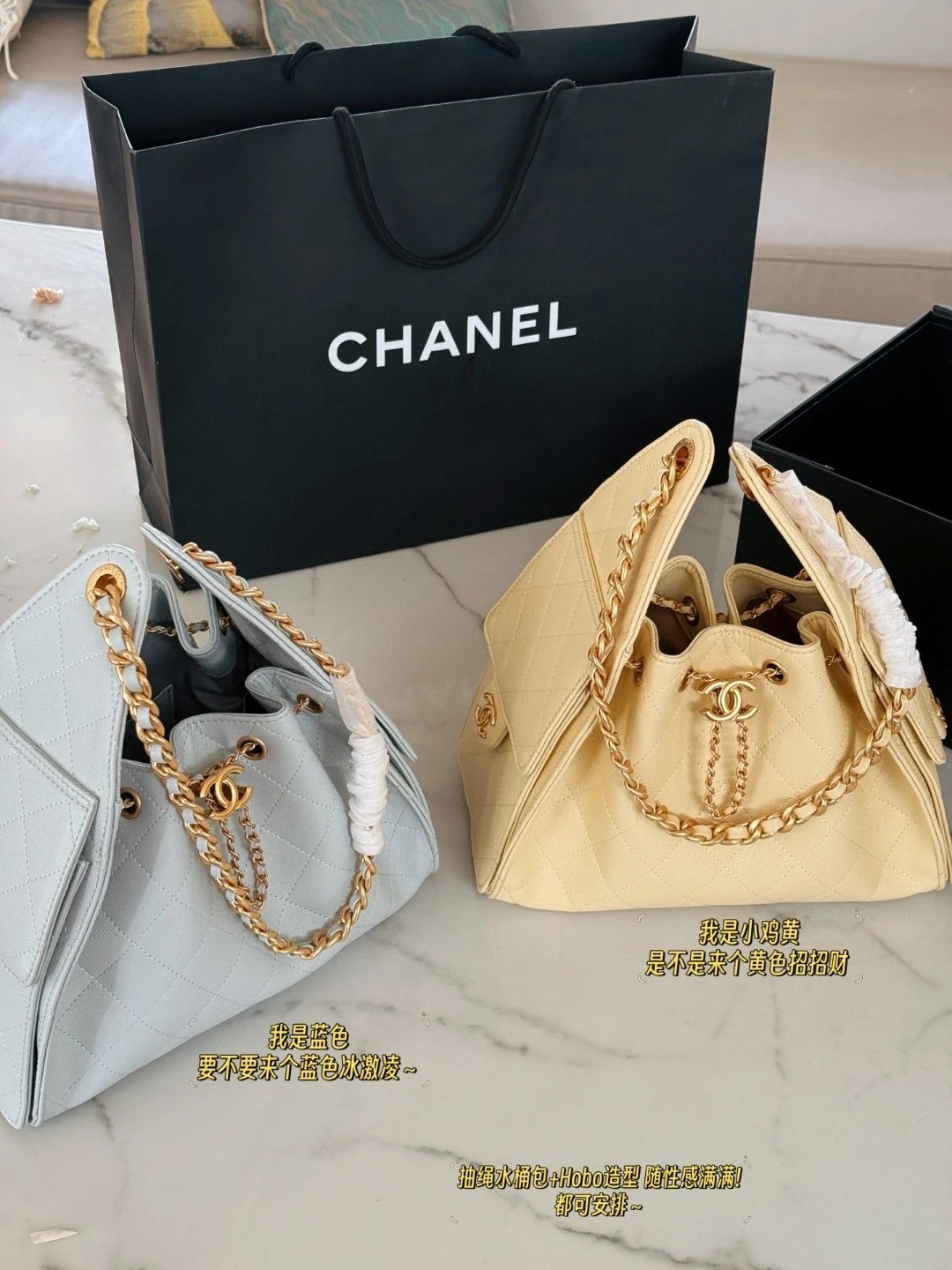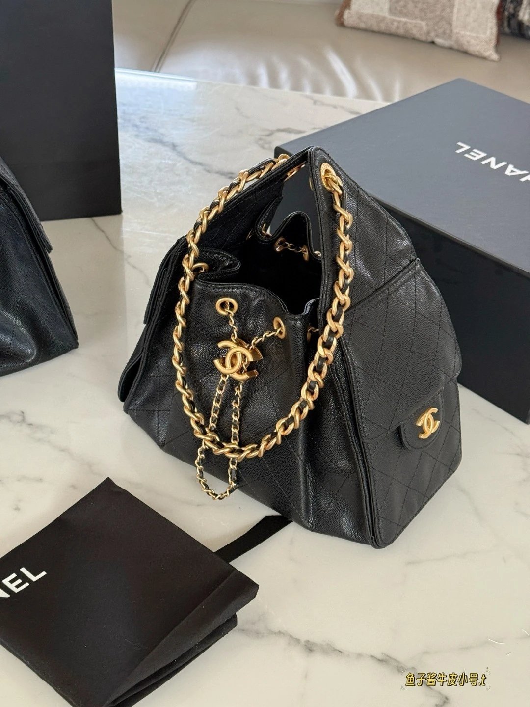 25C new hobo bag CHANE1 cowhide drawstring bucket bag classic chain bag 🤞 original C family caviar cowhide **hardware handbag satchel bag gift box packaging