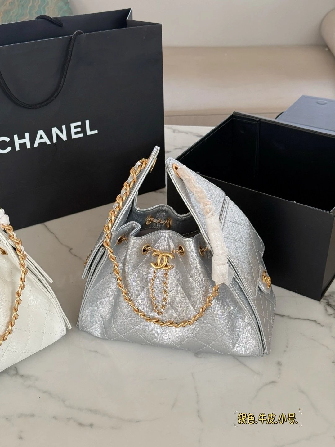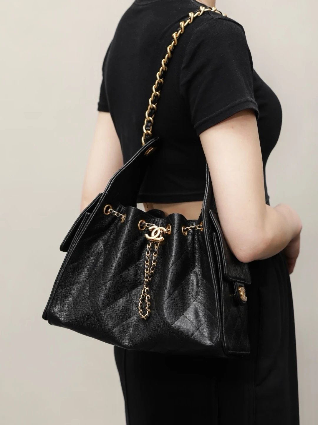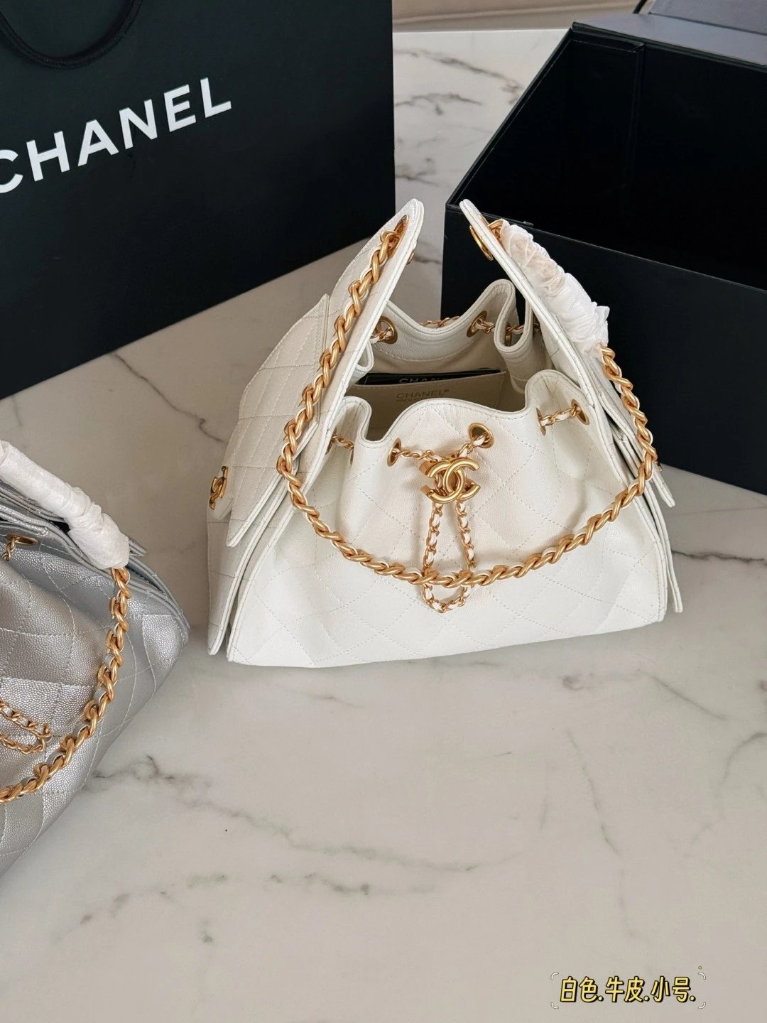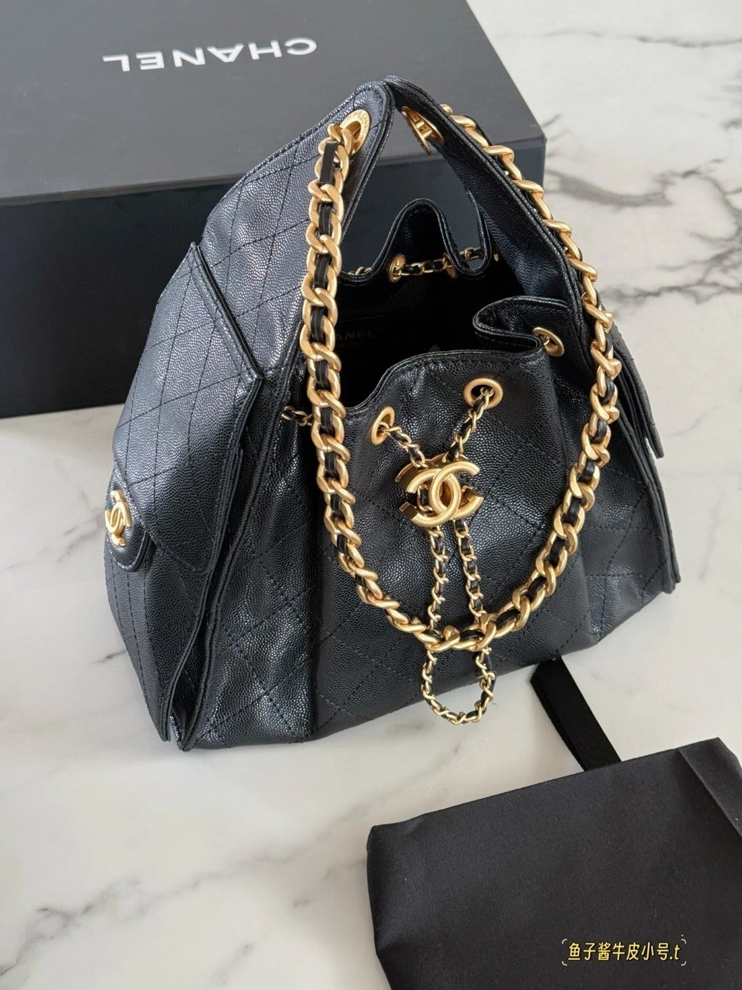 25C new hobo bag CHANE1 cowhide drawstring bucket bag classic chain bag 🤞 original C family caviar cowhide **hardware handbag satchel bag gift box packaging