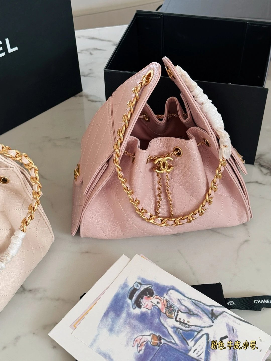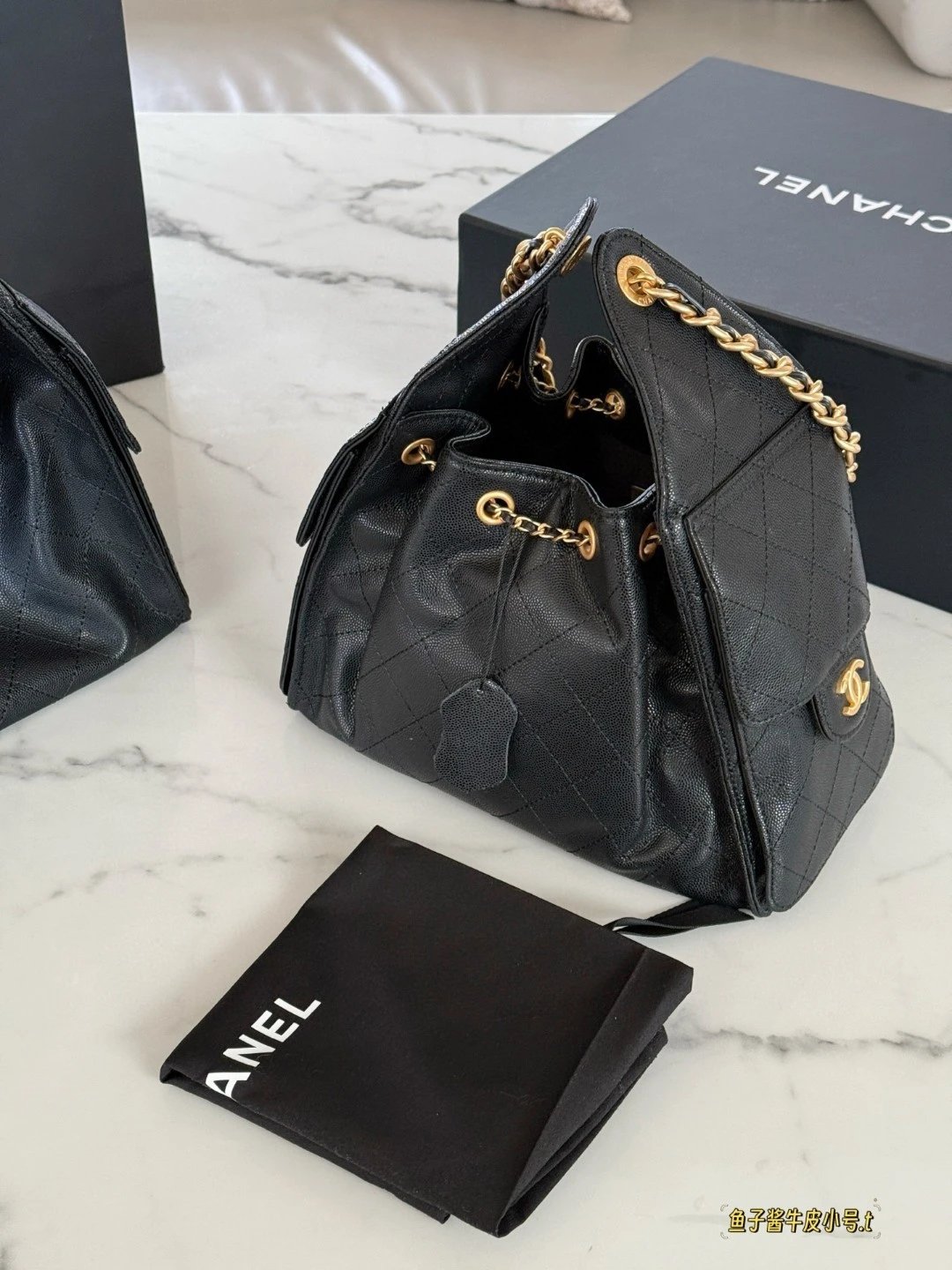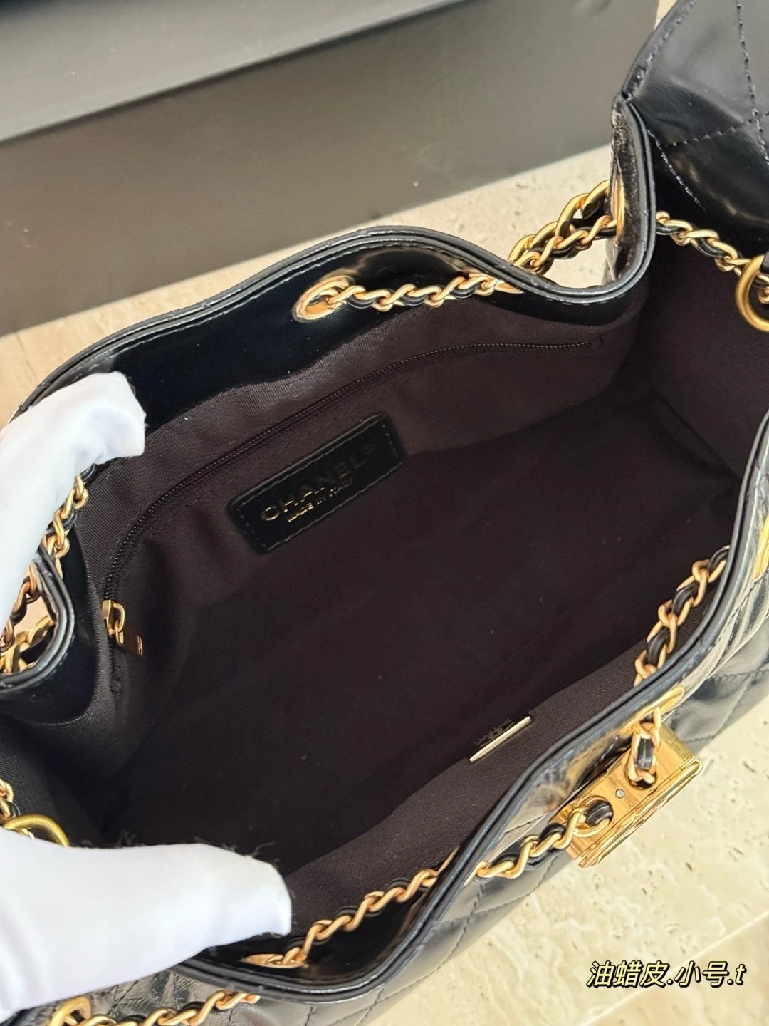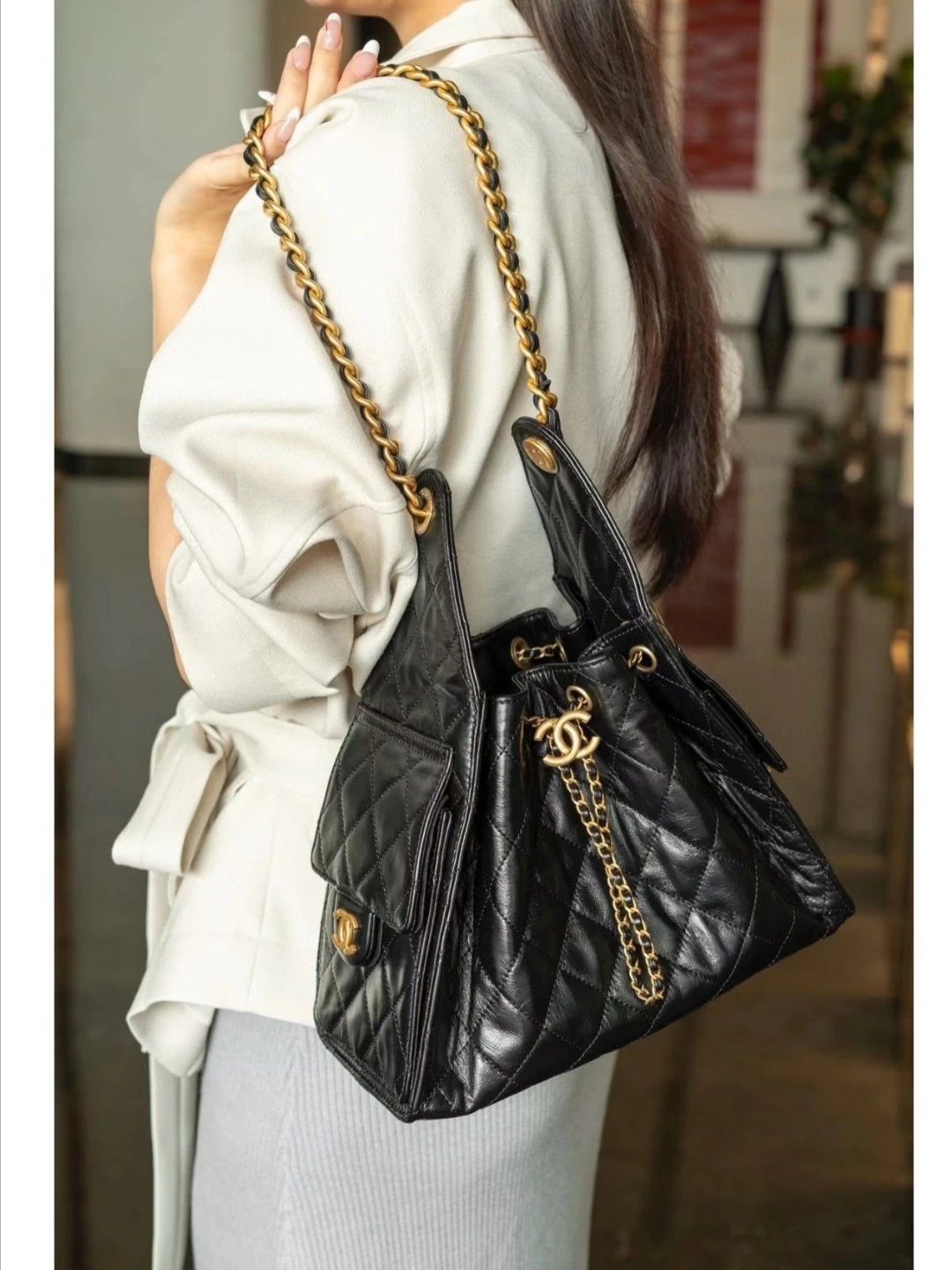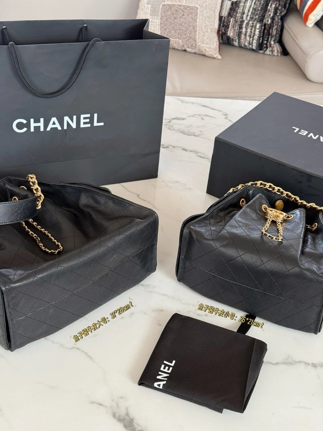 25C new hobo bag CHANE1 cowhide drawstring bucket bag classic chain bag 🤞 original C family caviar cowhide **hardware handbag satchel bag gift box packaging