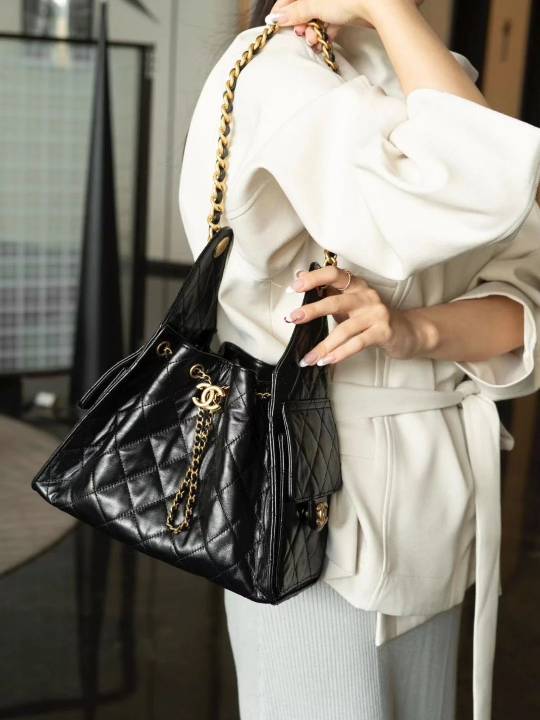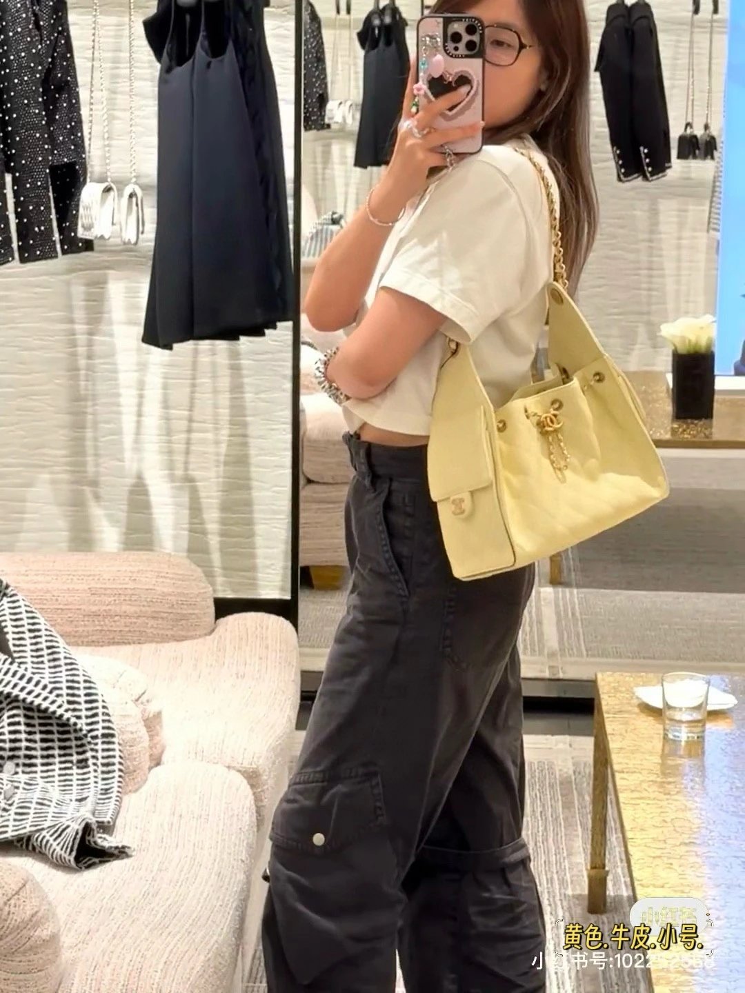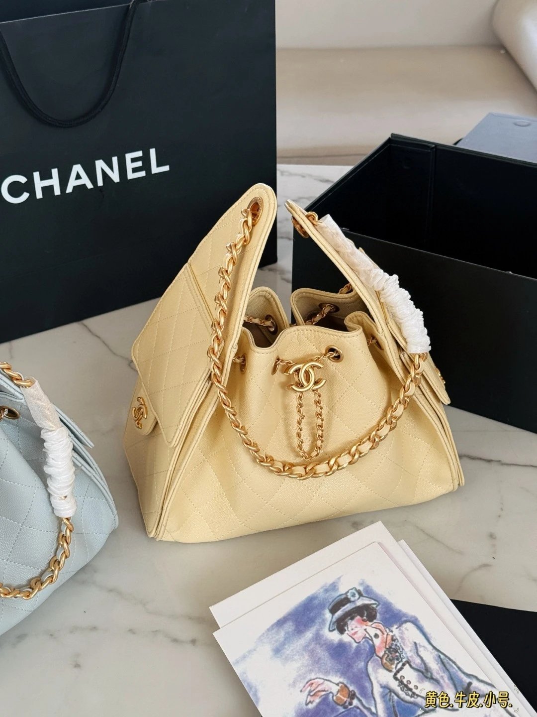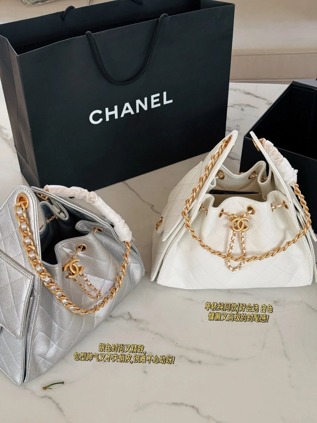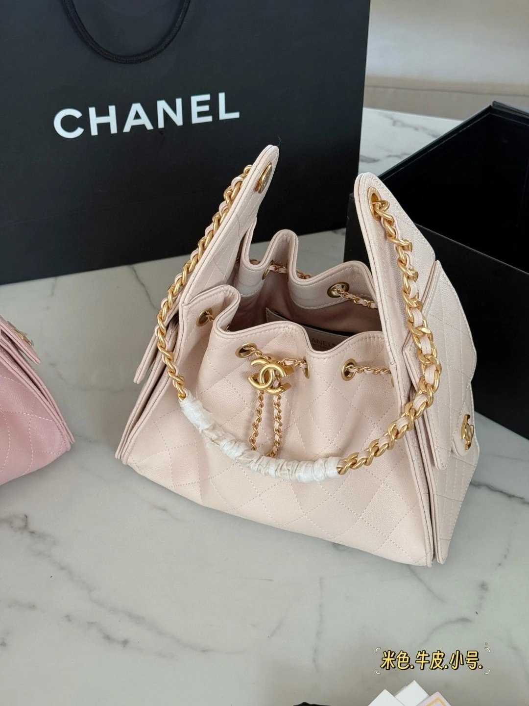 25C new hobo bag CHANE1 cowhide drawstring bucket bag classic chain bag 🤞 original C family caviar cowhide **hardware handbag satchel bag gift box packaging