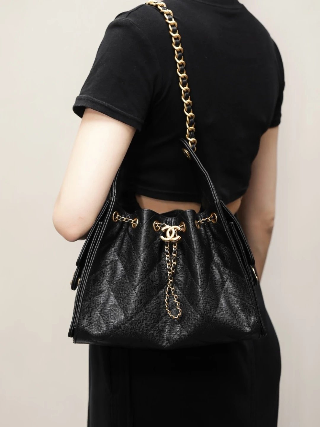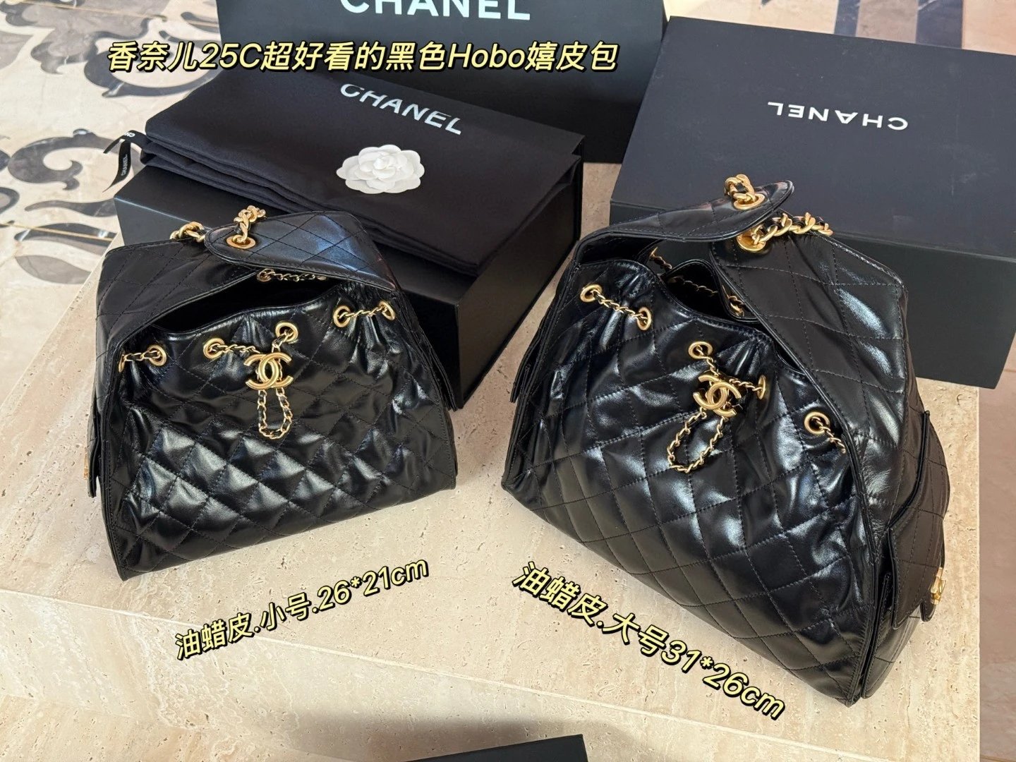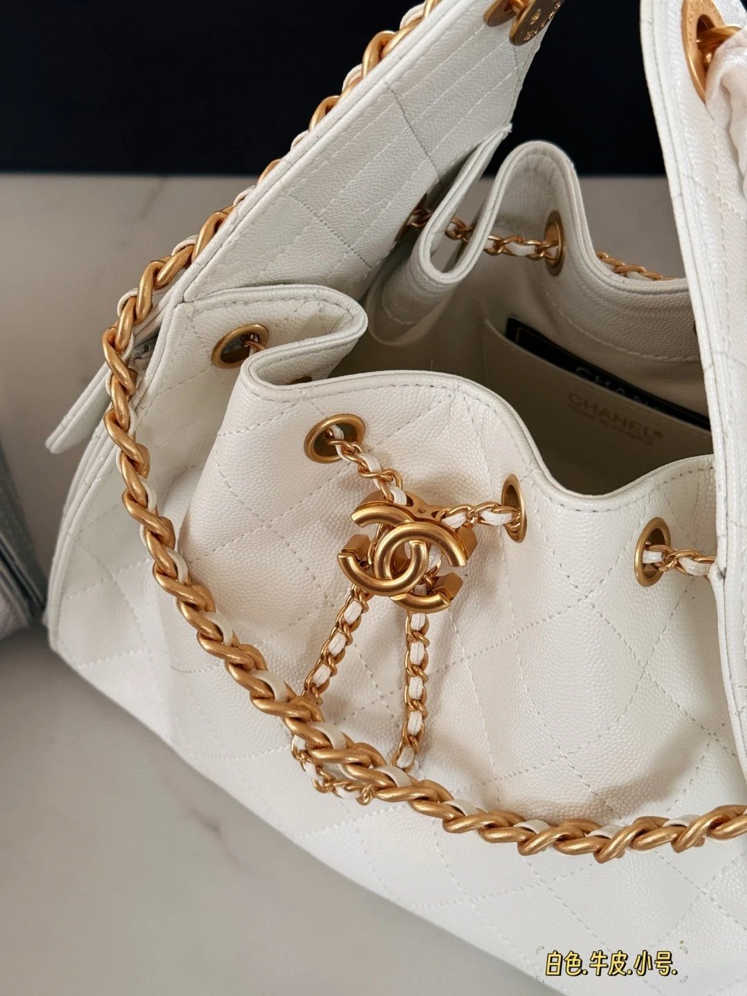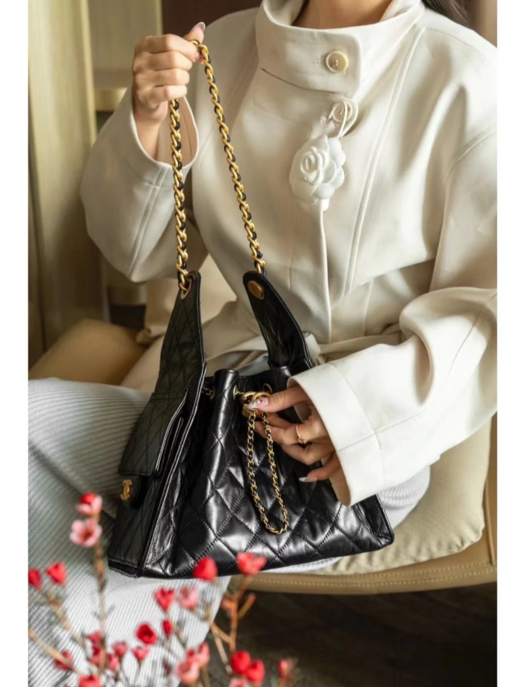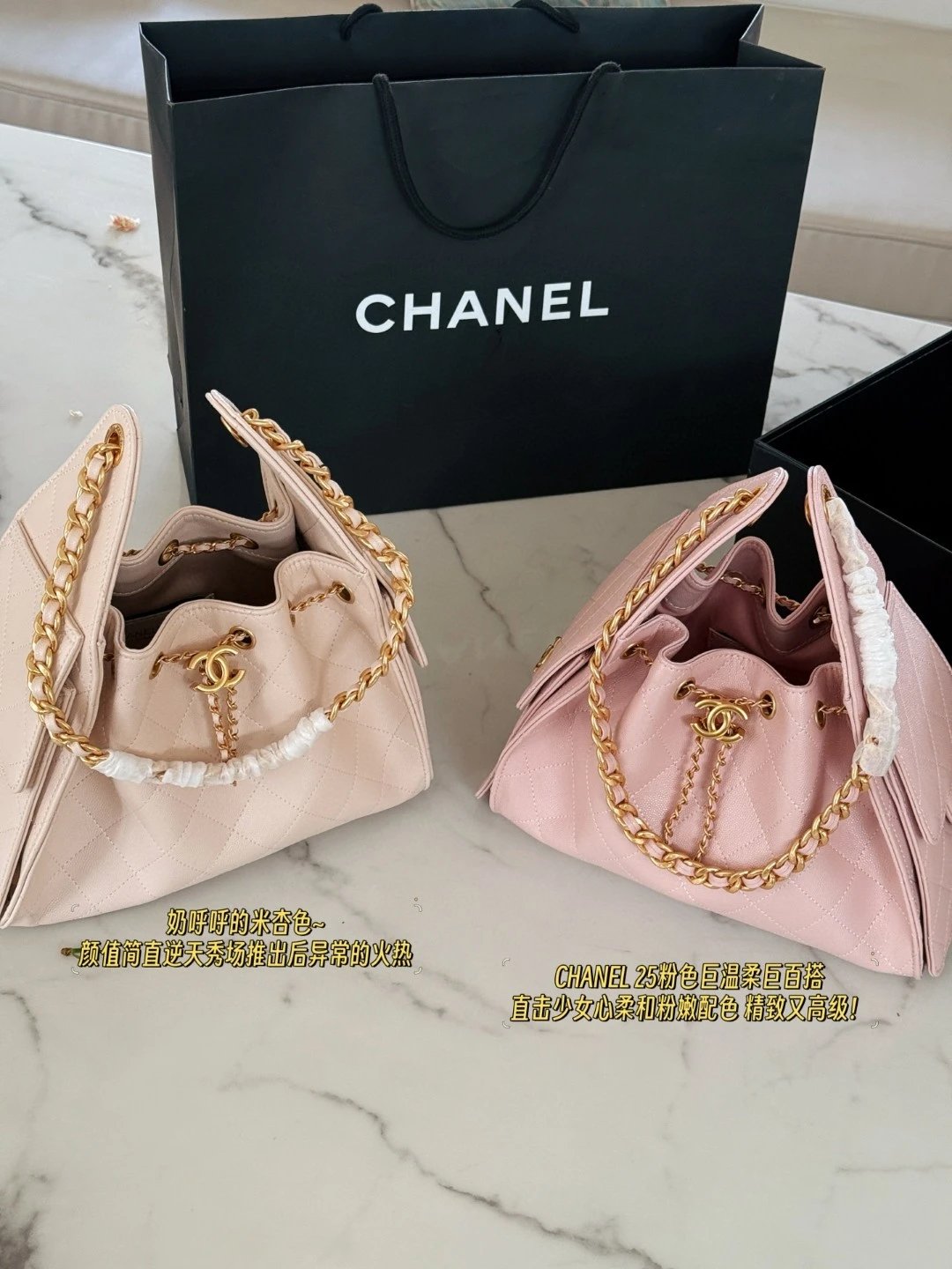 25C new hobo bag CHANE1 cowhide drawstring bucket bag classic chain bag 🤞 original C family caviar cowhide **hardware handbag satchel bag gift box packaging