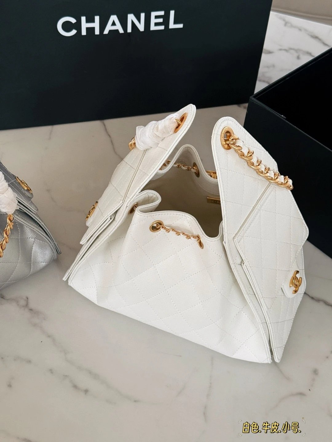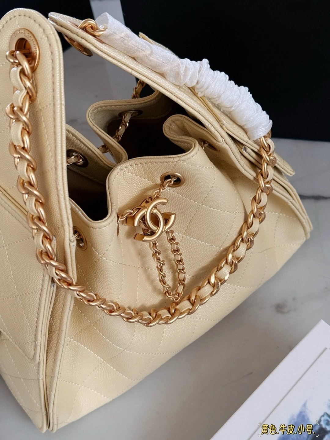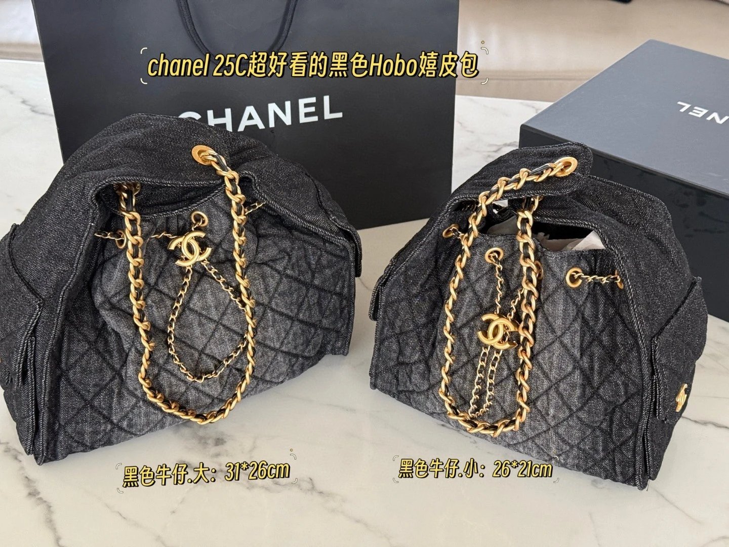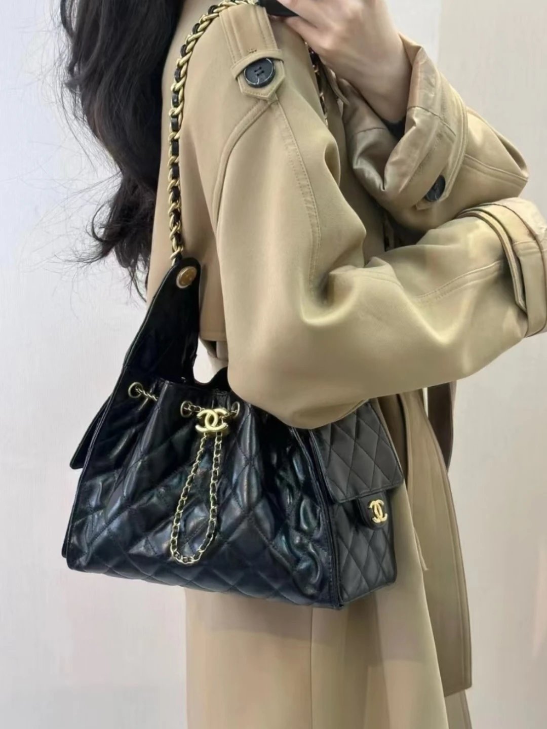 25C new hobo bag CHANE1 cowhide drawstring bucket bag classic chain bag 🤞 original C family caviar cowhide **hardware handbag satchel bag gift box packaging