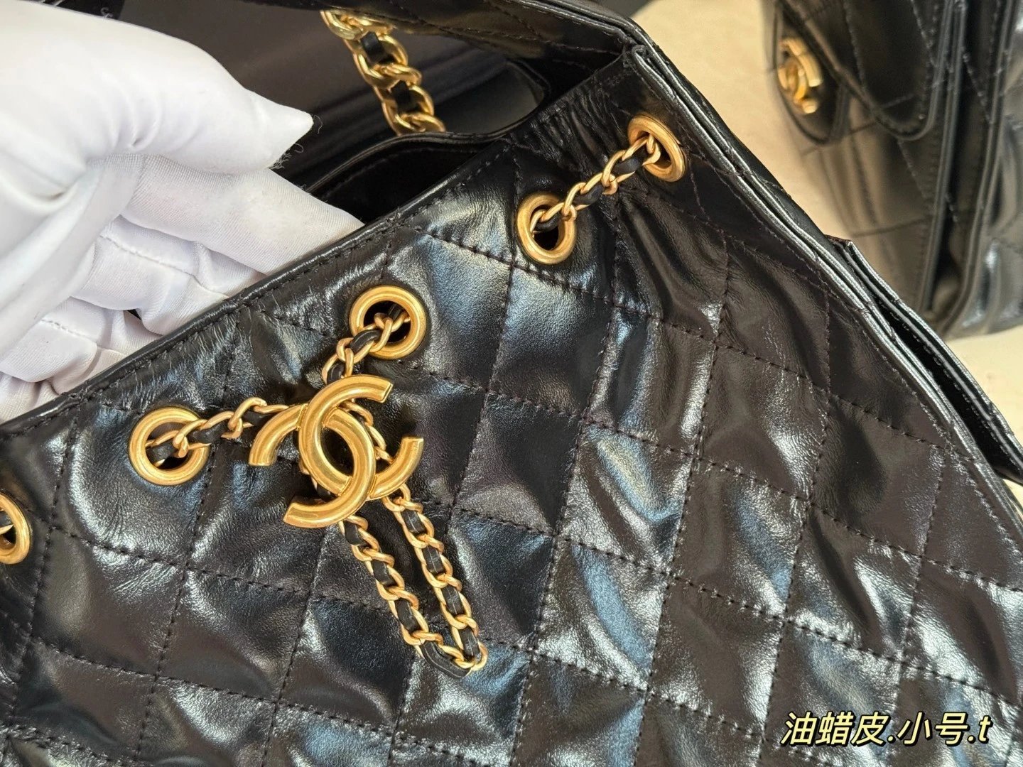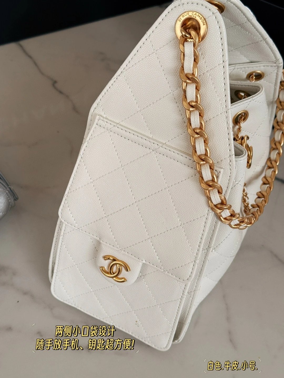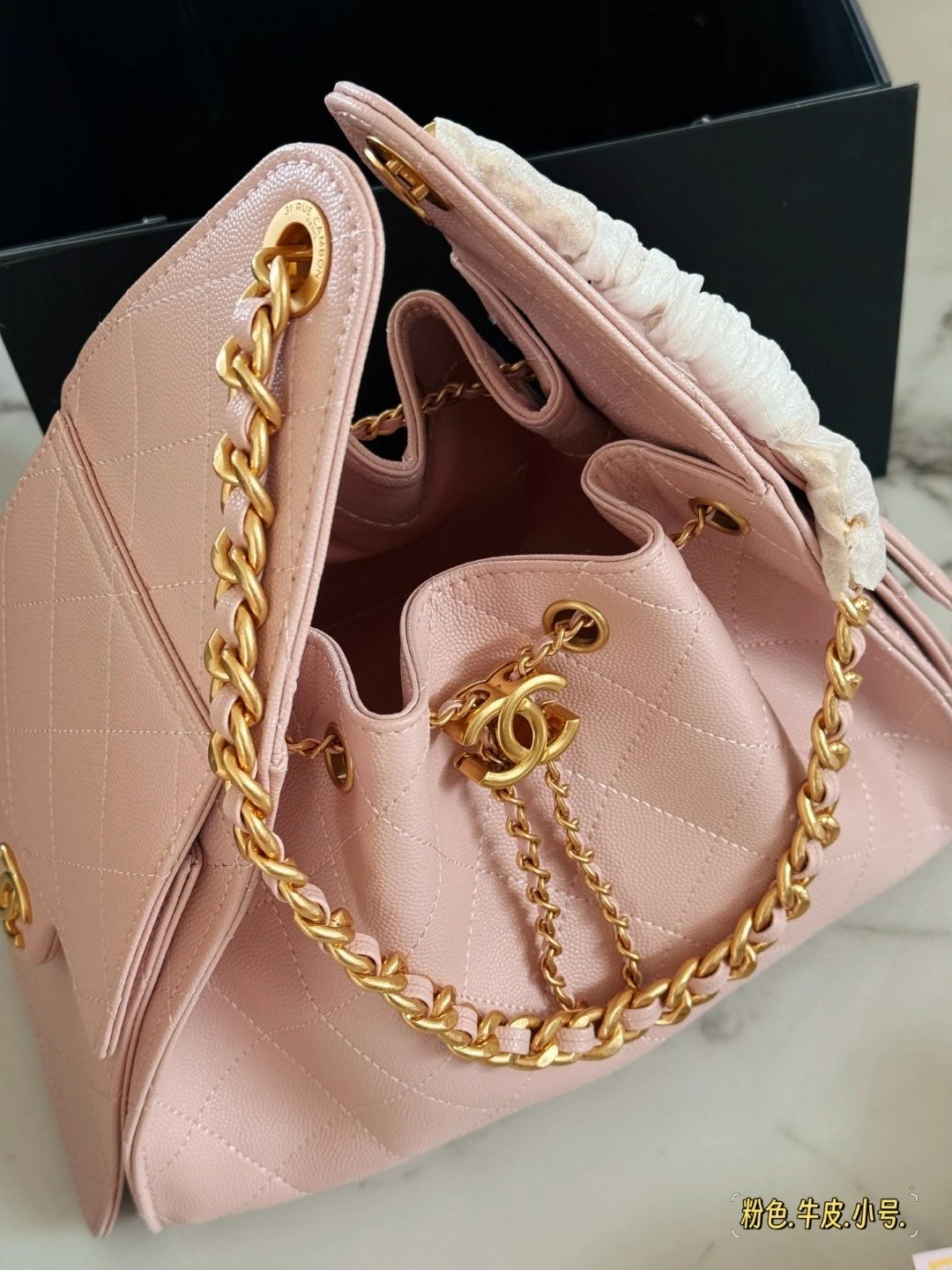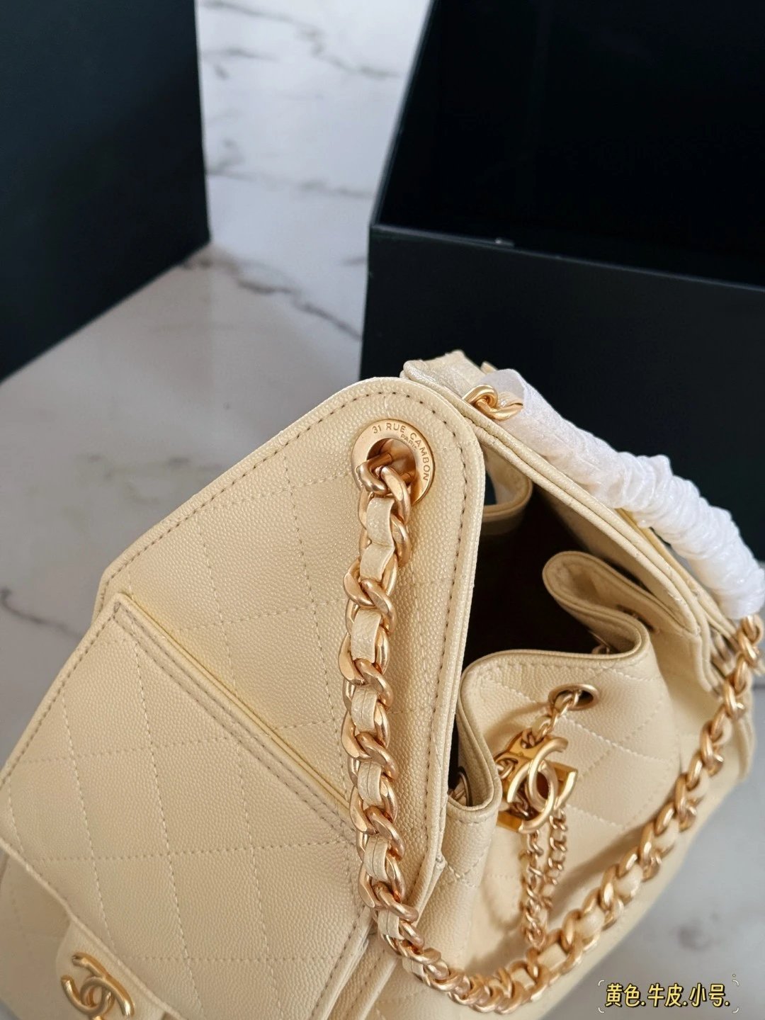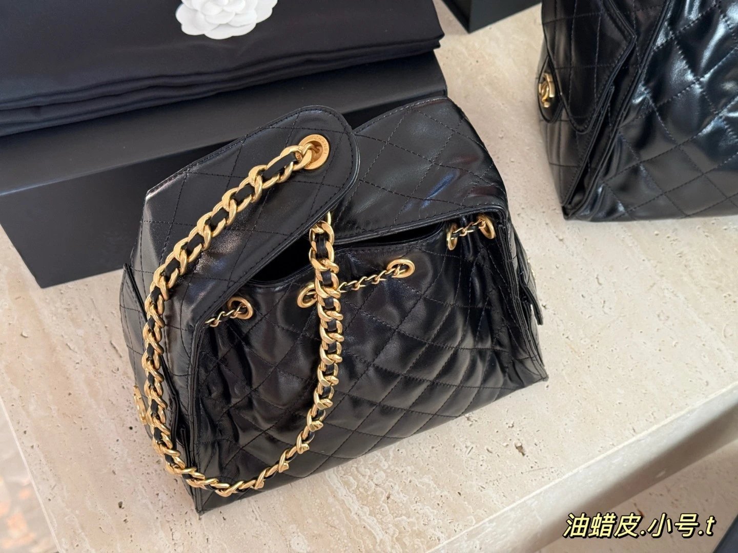 25C new hobo bag CHANE1 cowhide drawstring bucket bag classic chain bag 🤞 original C family caviar cowhide **hardware handbag satchel bag gift box packaging