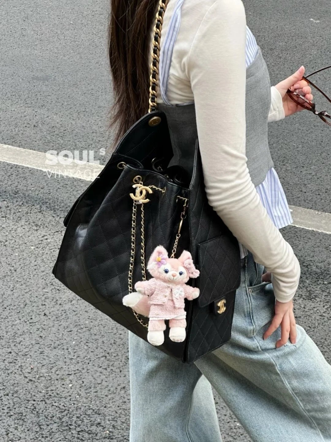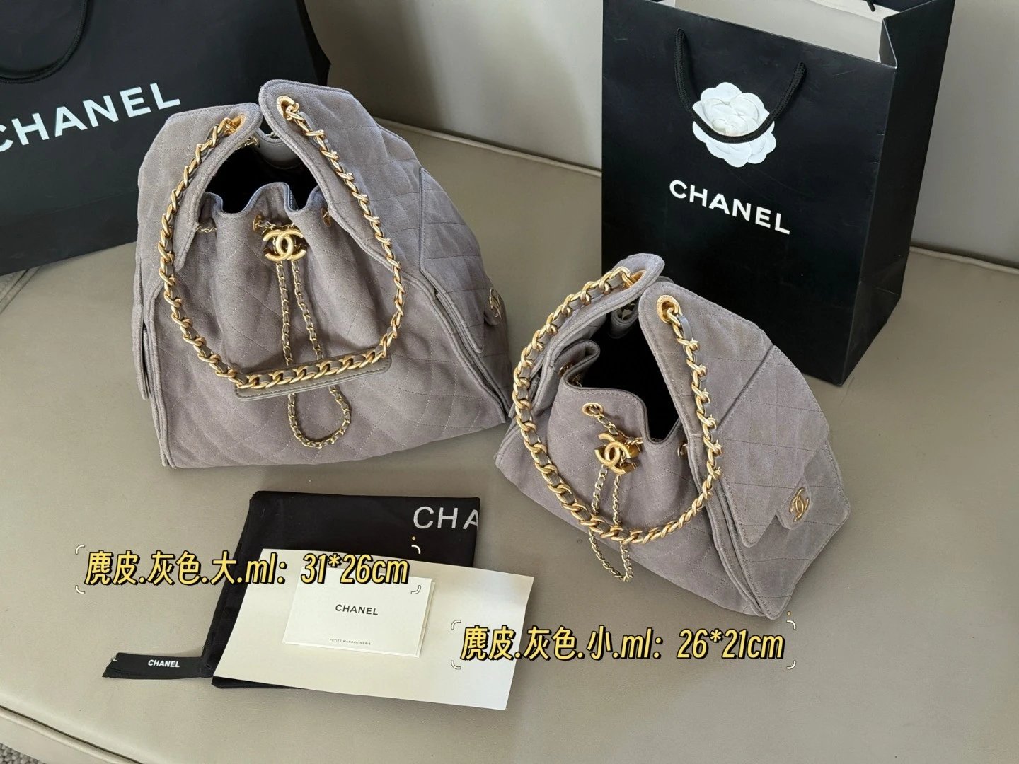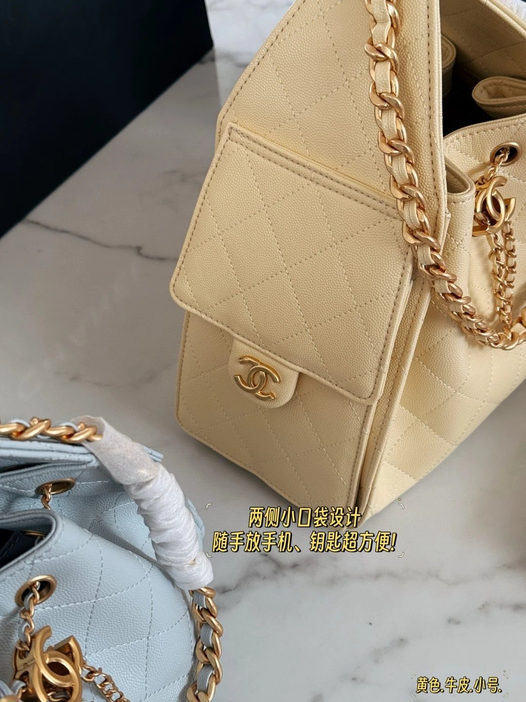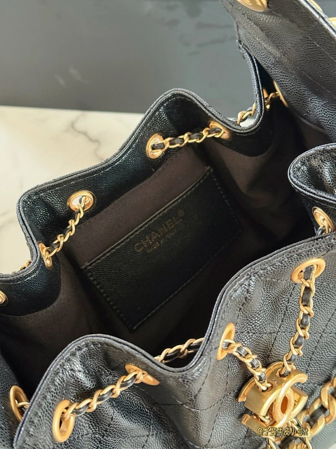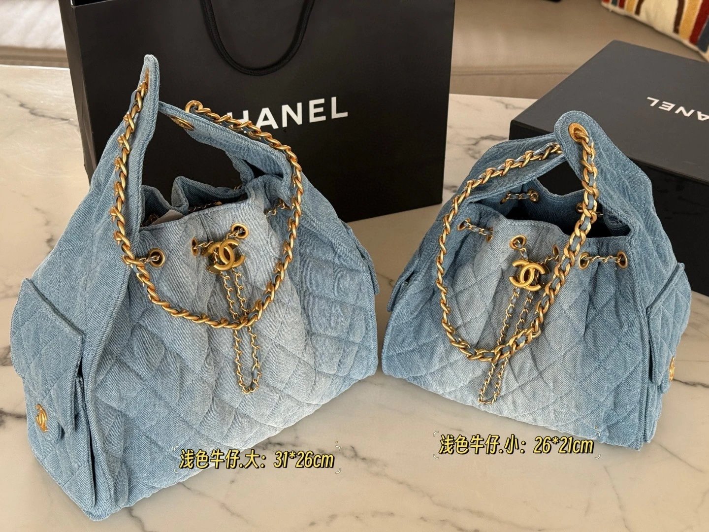 25C new hobo bag CHANE1 cowhide drawstring bucket bag classic chain bag 🤞 original C family caviar cowhide **hardware handbag satchel bag gift box packaging