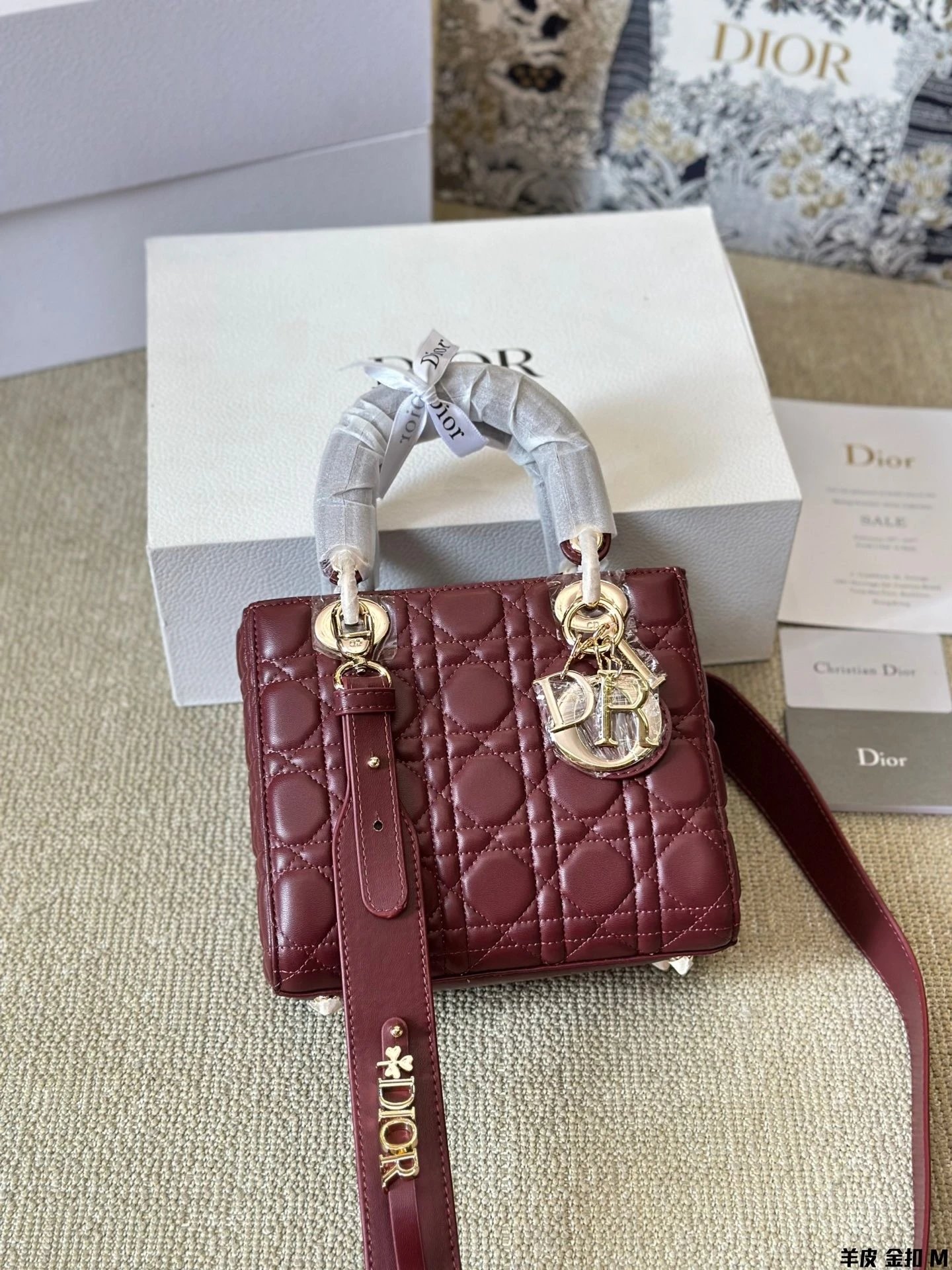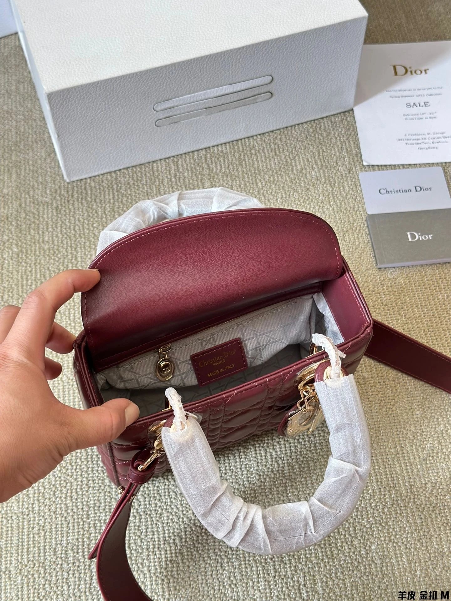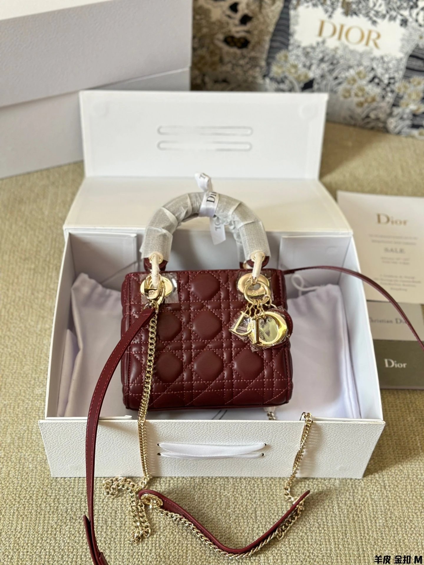Alpha Home [High Quality] D1or/D Home Dai Fei Bag Sheepskin Beautiful Handbag Light Gold Hardware Counter version Original lambskin with gift box
