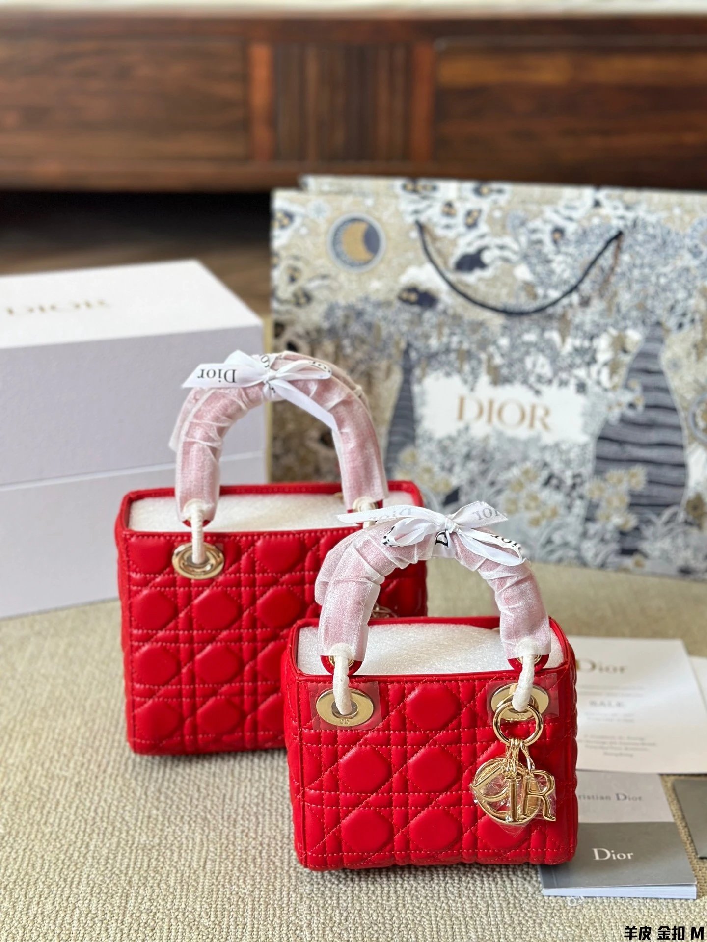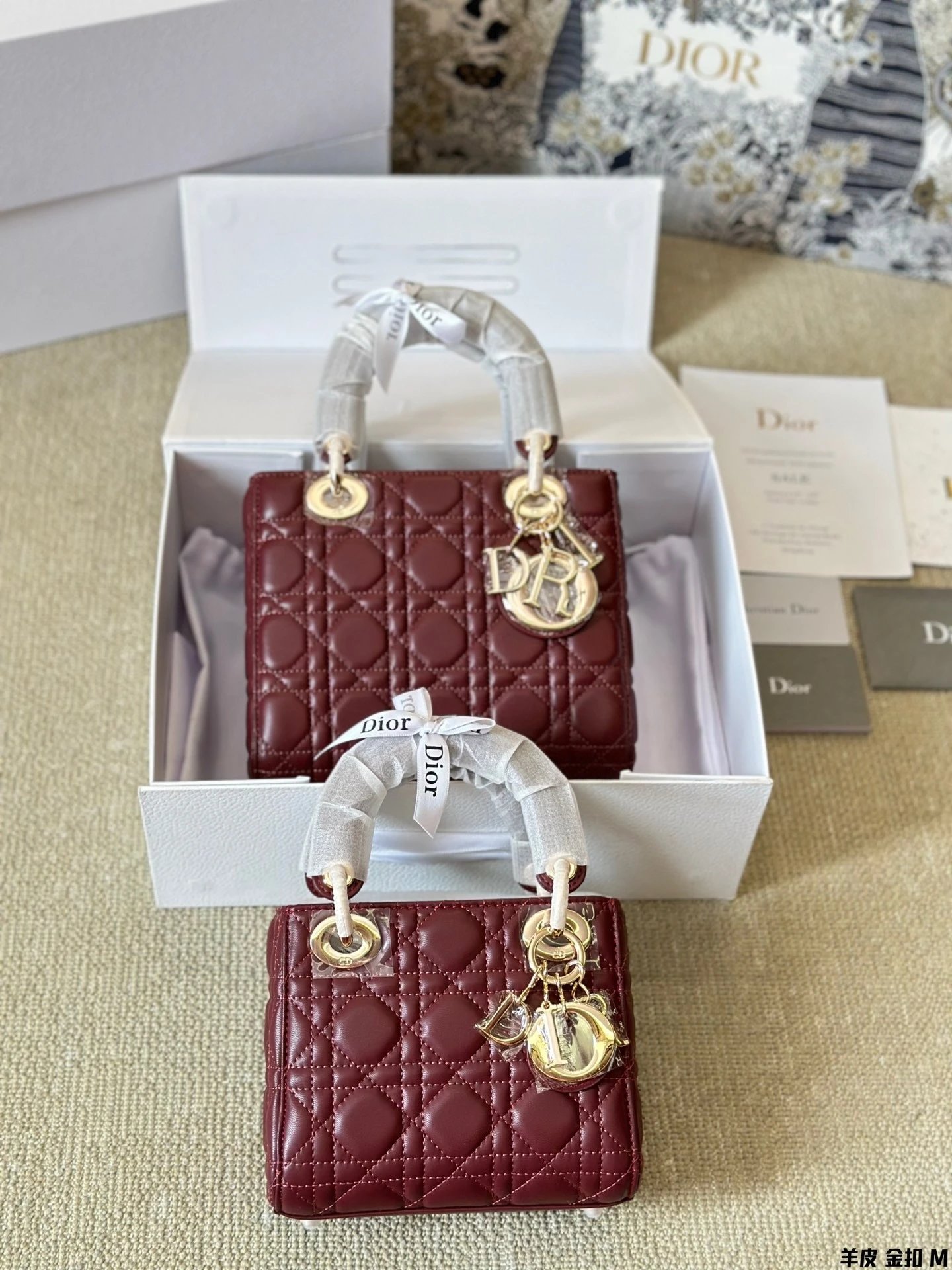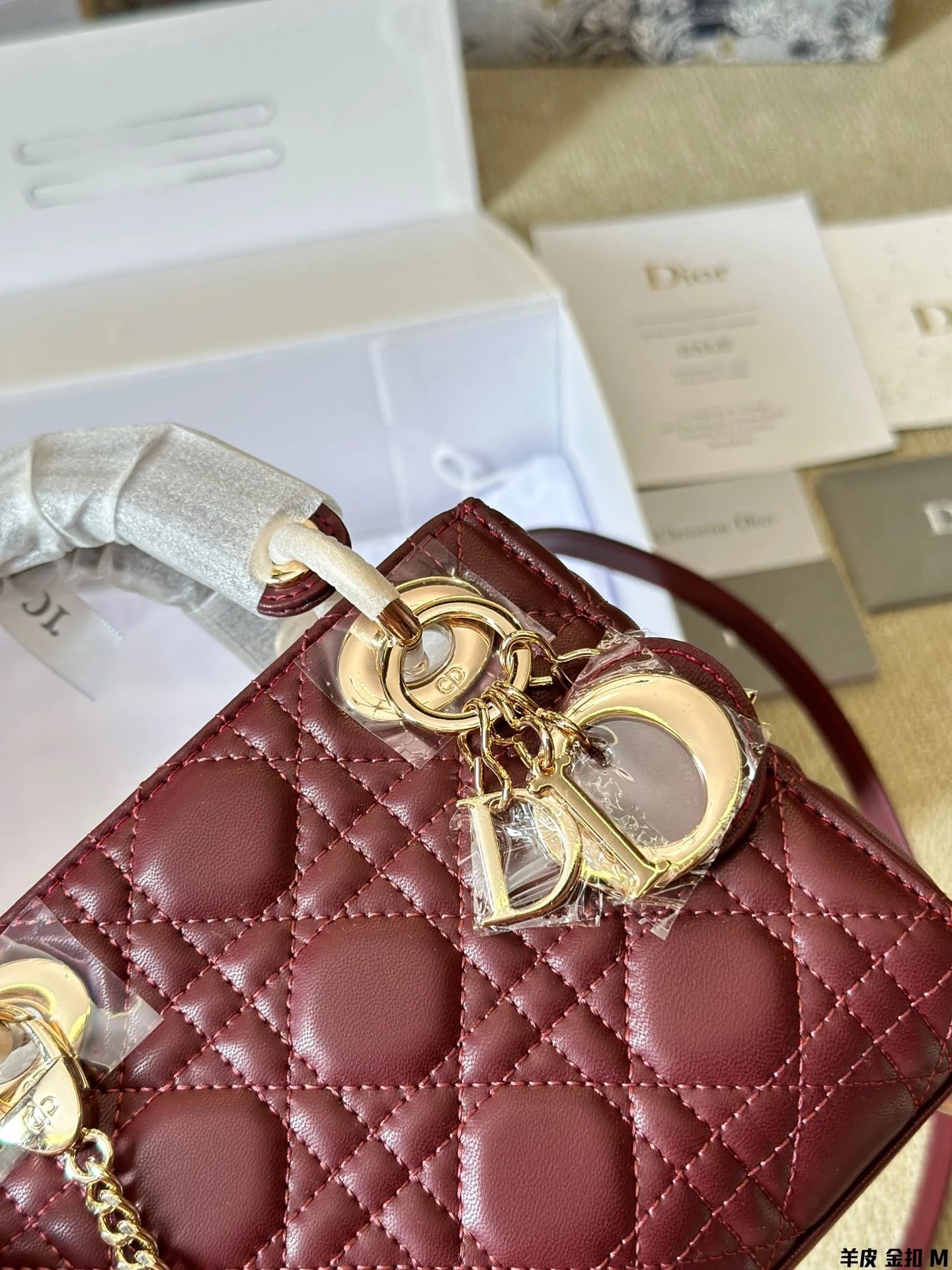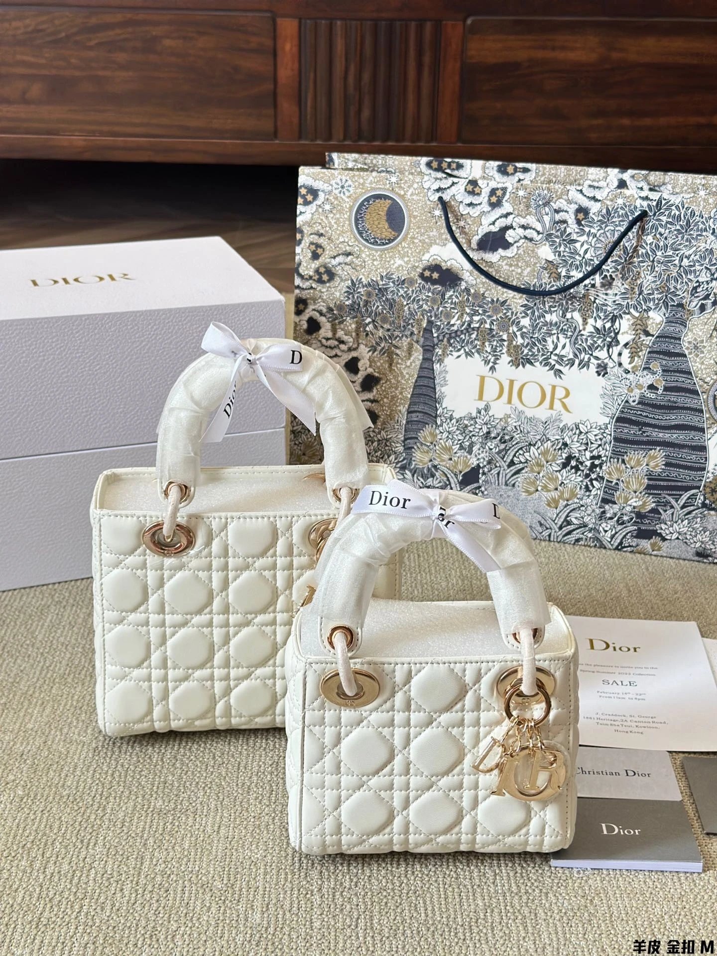 Alpha Home [High Quality] D1or/D Home Dai Fei Bag Sheepskin Beautiful Handbag Light Gold Hardware Counter version Original lambskin with gift box