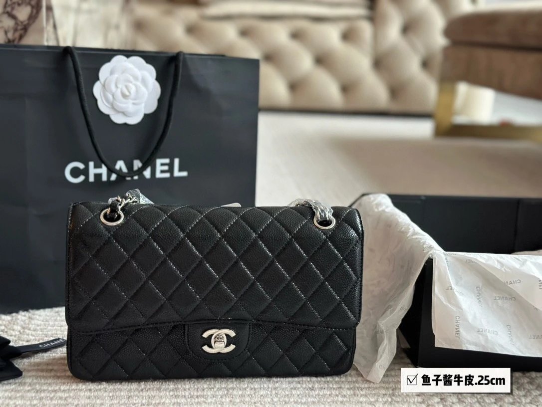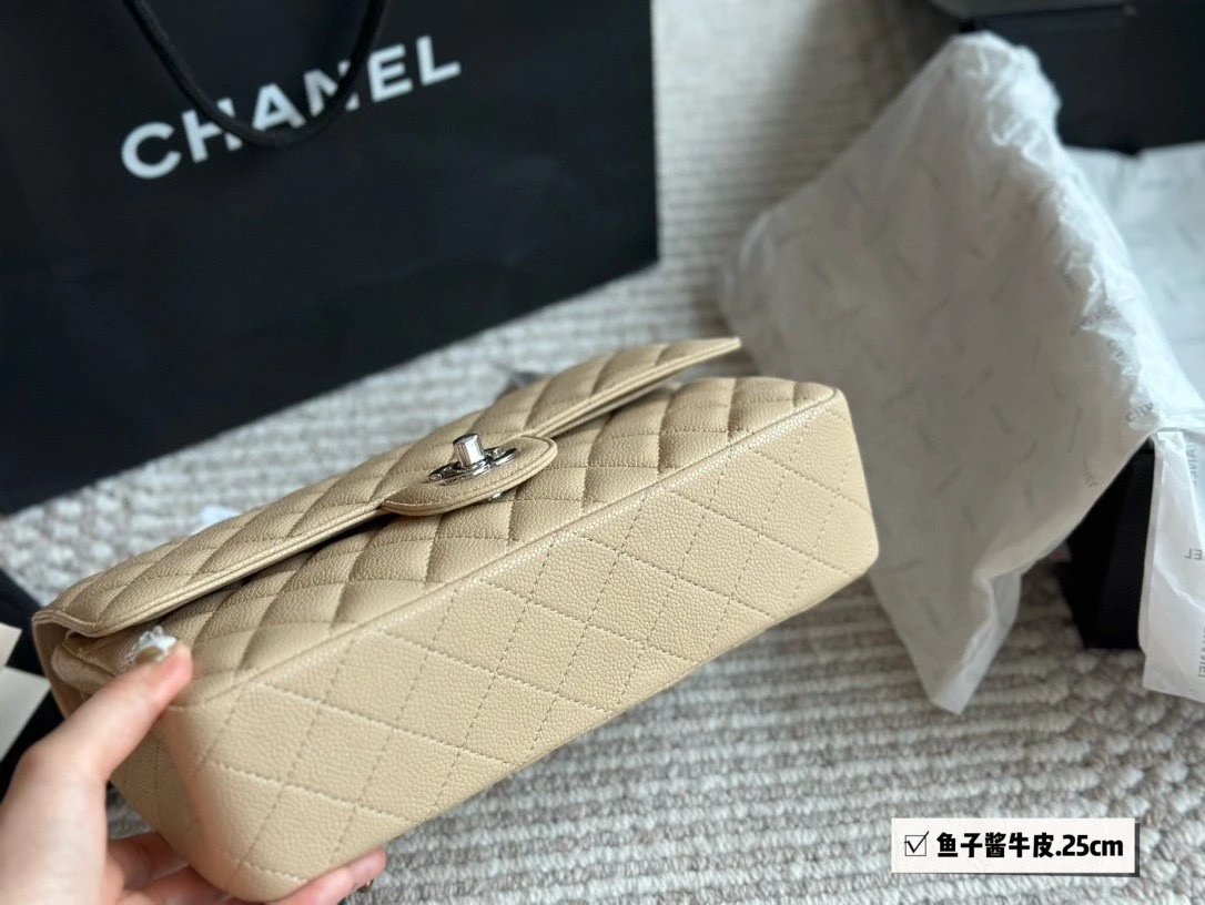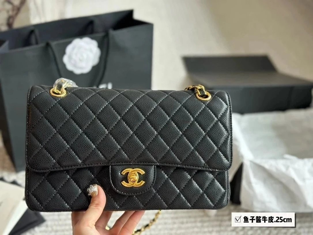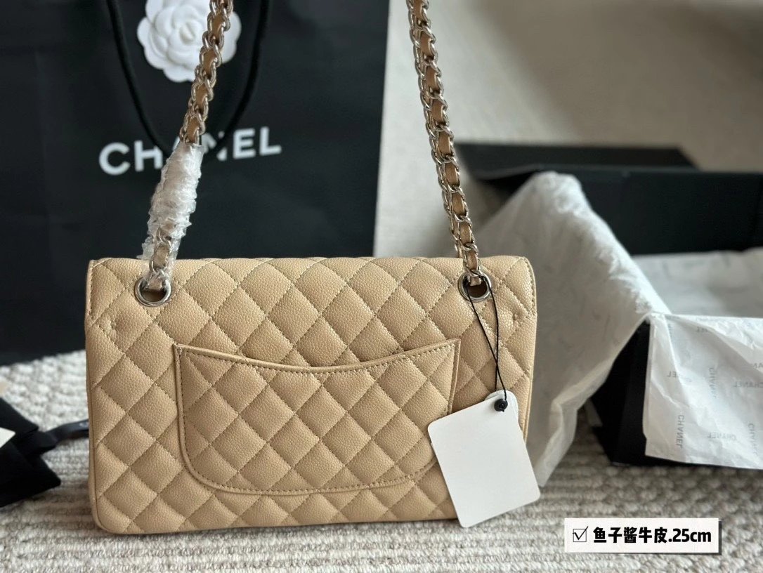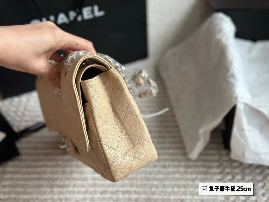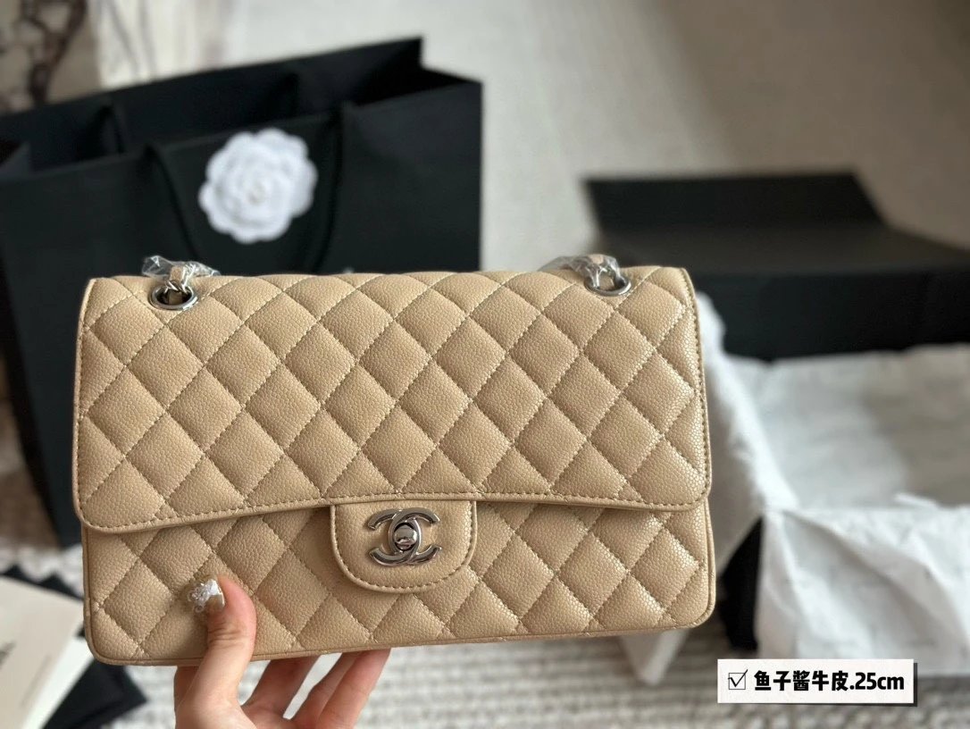 Alpha Home [High Quality] Chane1 cf 25 Caviar Calfskin Milk Tea Series Counter Hardware Blue Pink Bag Chanel Crossbody Bag Shoulder Bag Handbag Women's Bag Chain Bag Small Bag Clutch Wallet with gift box.