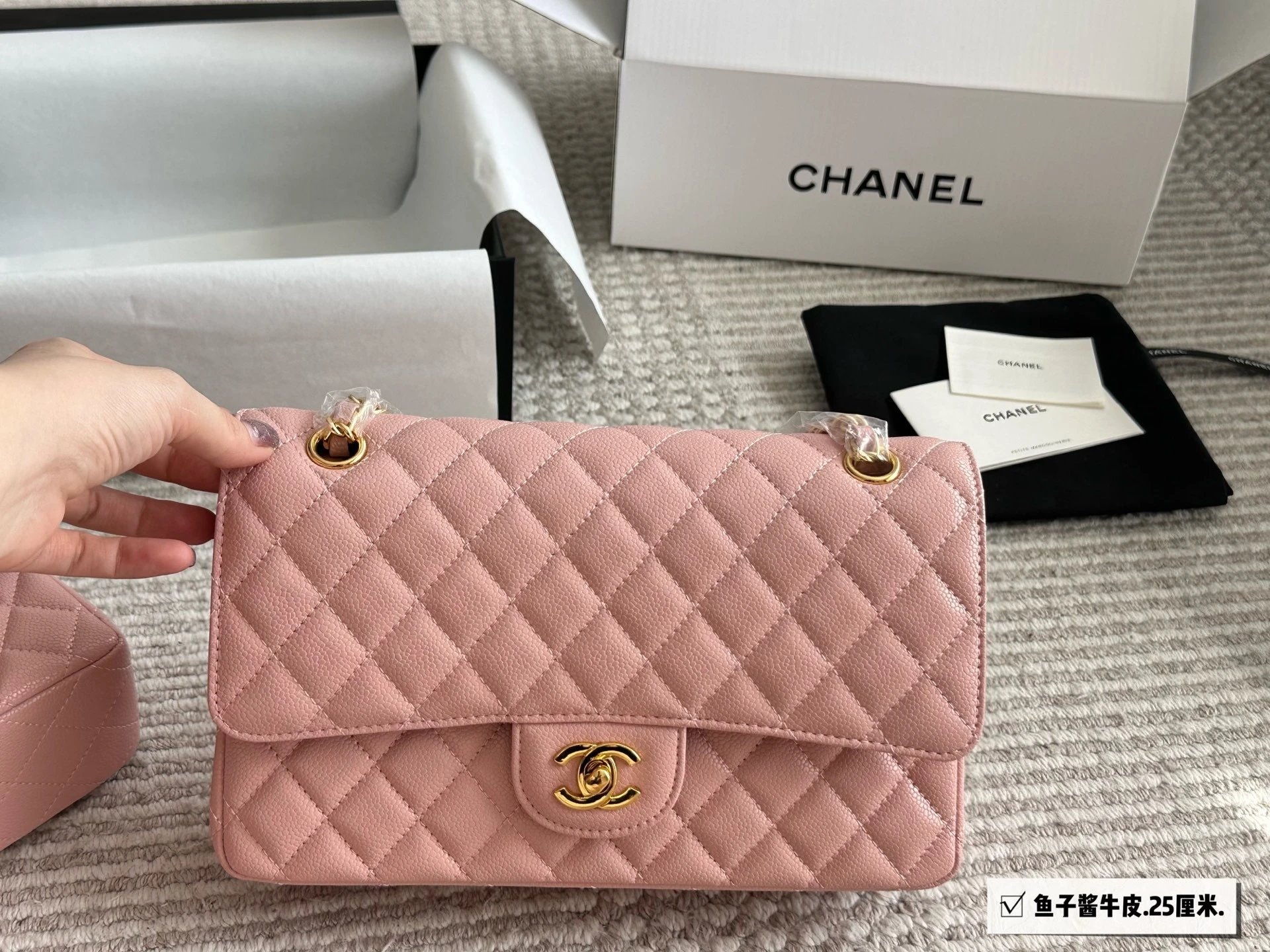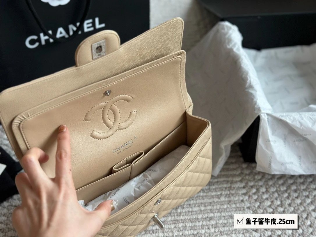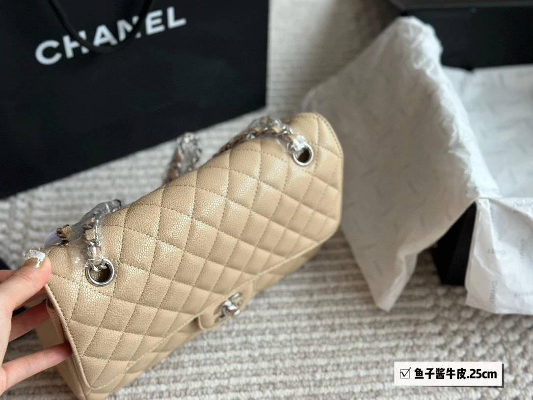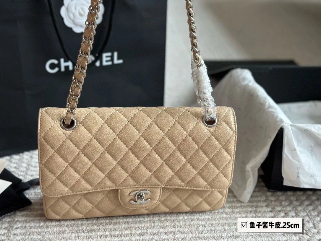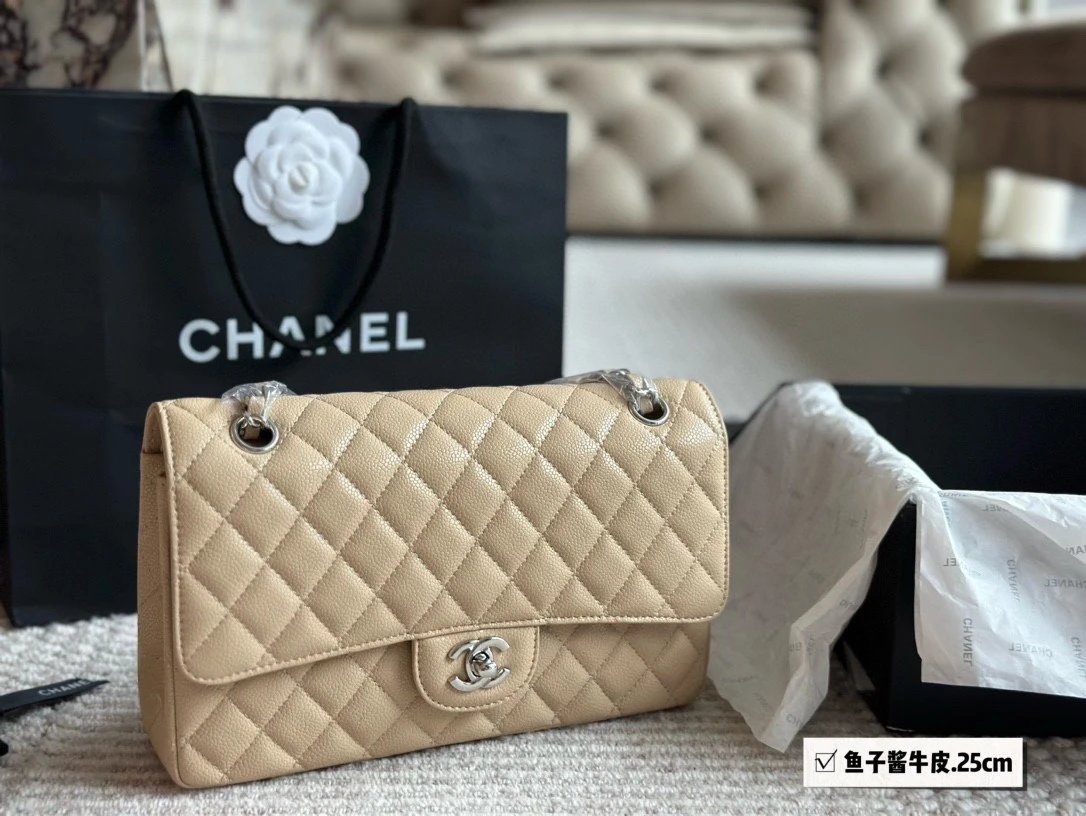 Alpha Home [High Quality] Chane1 cf 25 Caviar Calfskin Milk Tea Series Counter Hardware Blue Pink Bag Chanel Crossbody Bag Shoulder Bag Handbag Women's Bag Chain Bag Small Bag Clutch Wallet with gift box.
