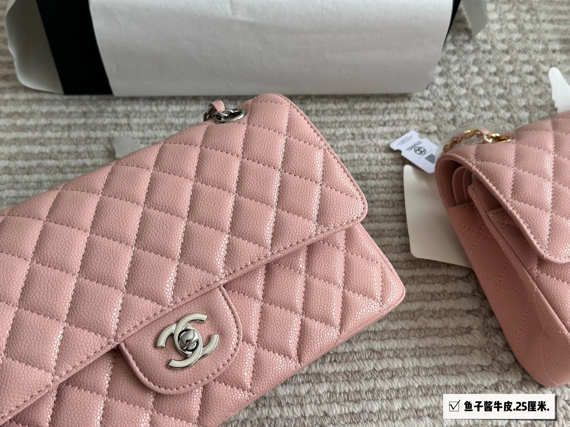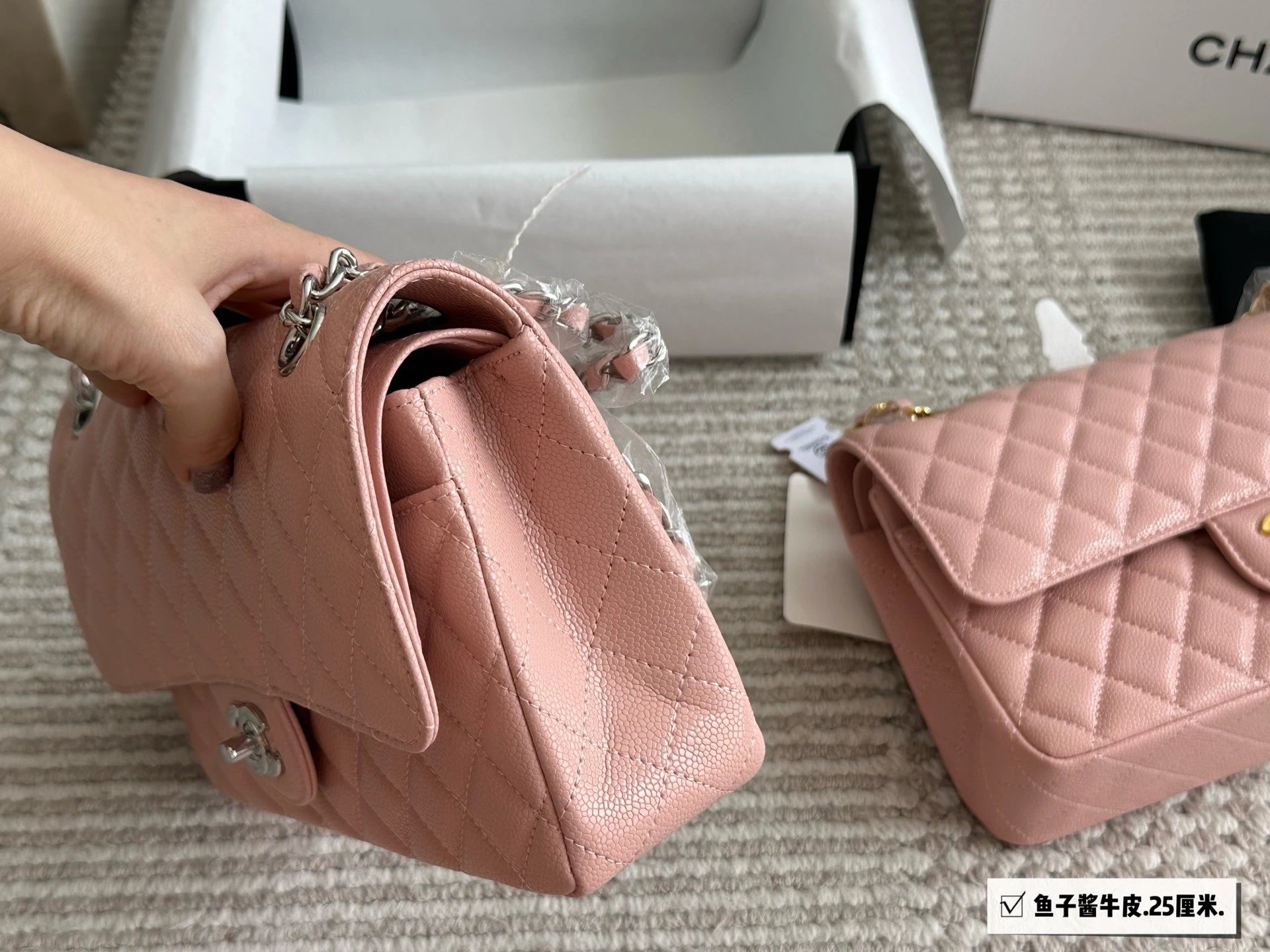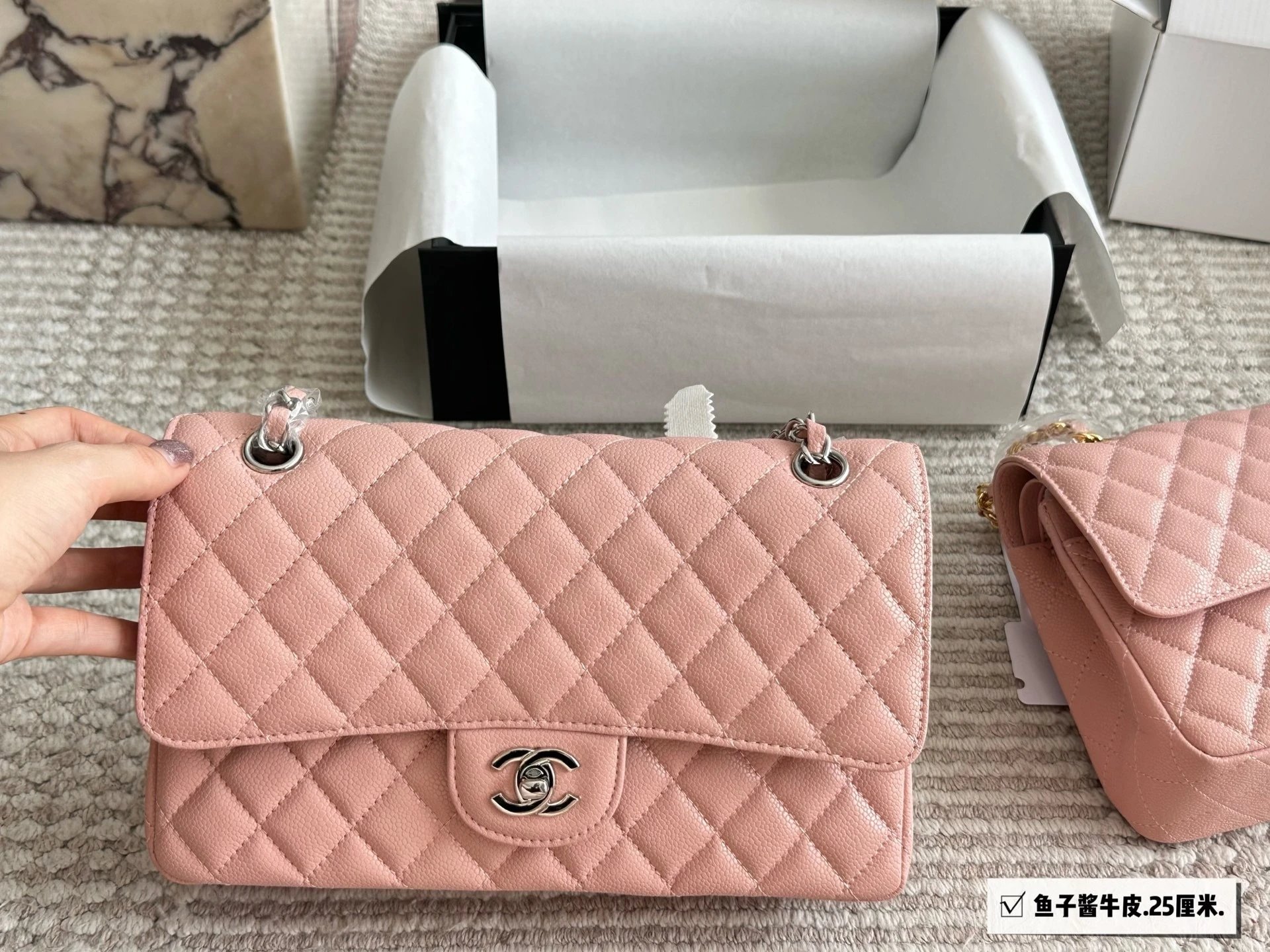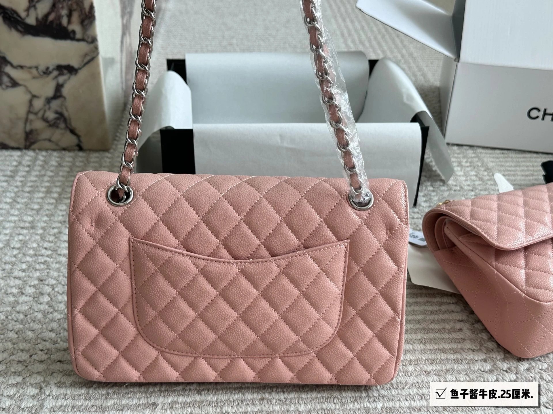 Alpha Home [High Quality] Chane1 cf 25 Caviar Calfskin Milk Tea Series Counter Hardware Blue Pink Bag Chanel Crossbody Bag Shoulder Bag Handbag Women's Bag Chain Bag Small Bag Clutch Wallet with gift box.