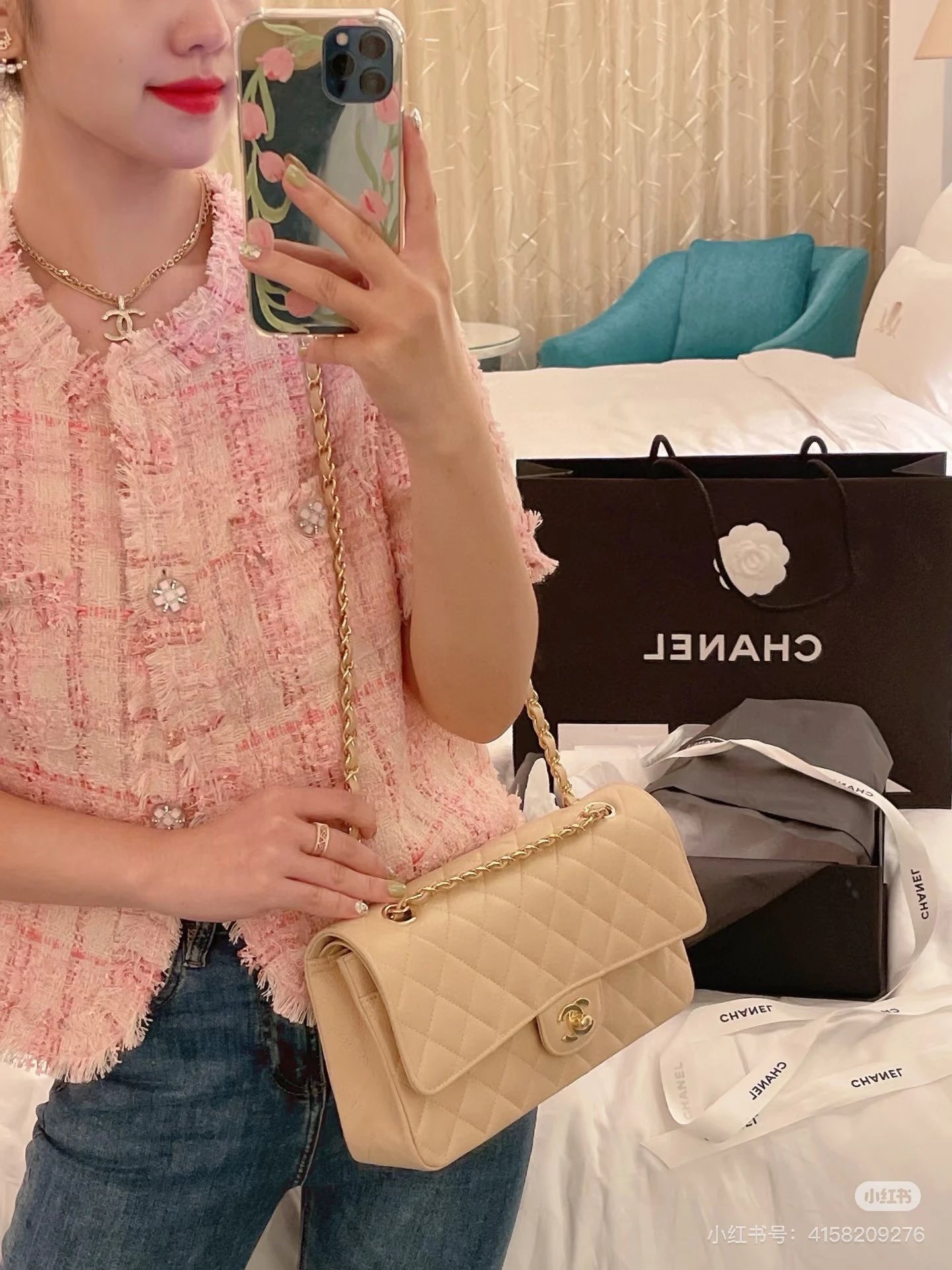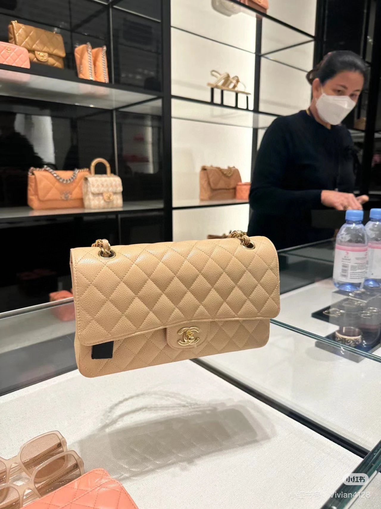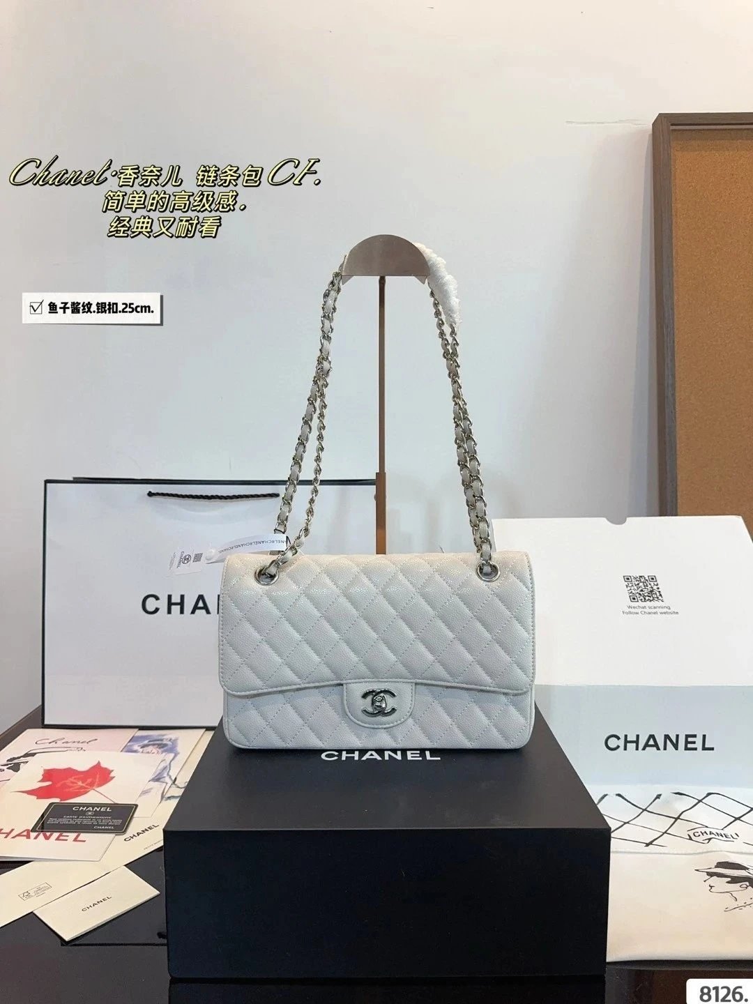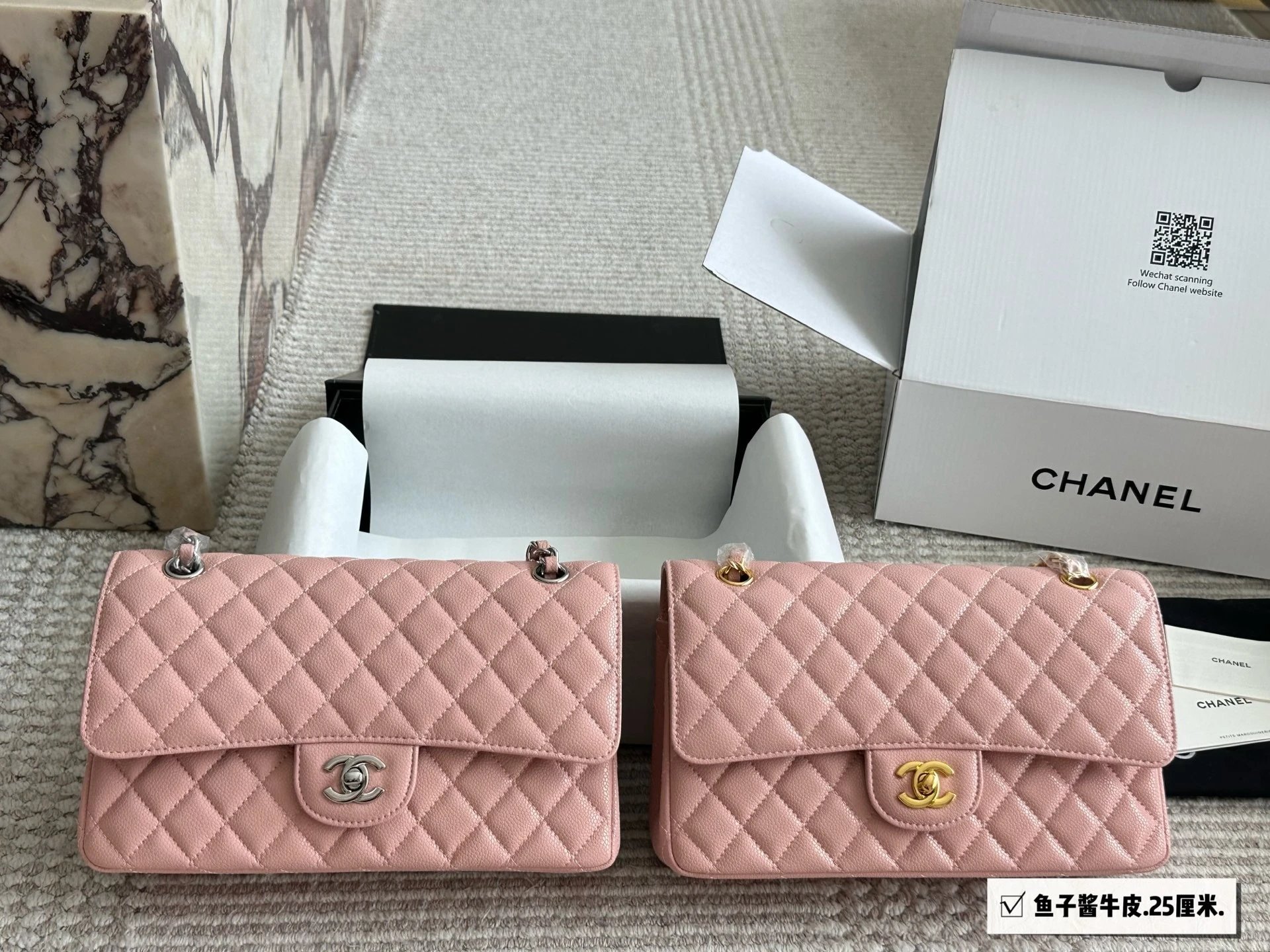 Alpha Home [High Quality] Chane1 cf 25 Caviar Calfskin Milk Tea Series Counter Hardware Blue Pink Bag Chanel Crossbody Bag Shoulder Bag Handbag Women's Bag Chain Bag Small Bag Clutch Wallet with gift box.