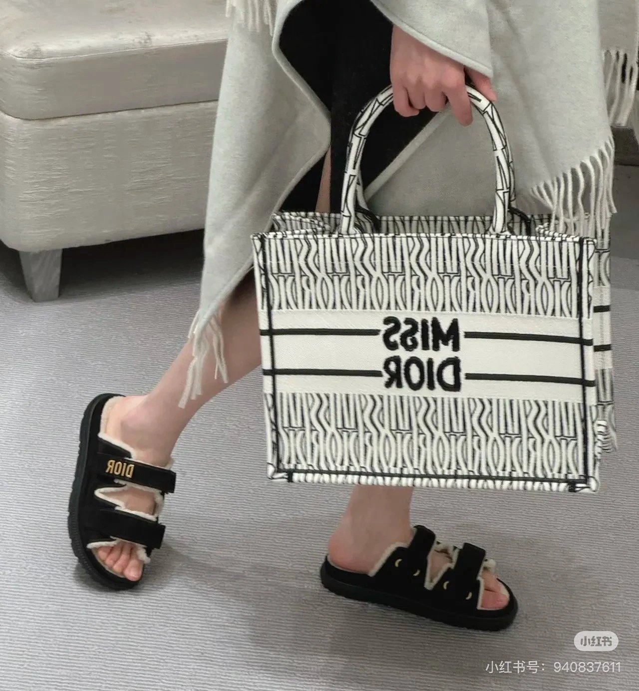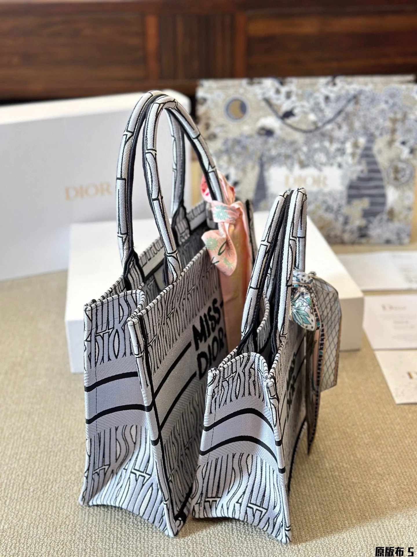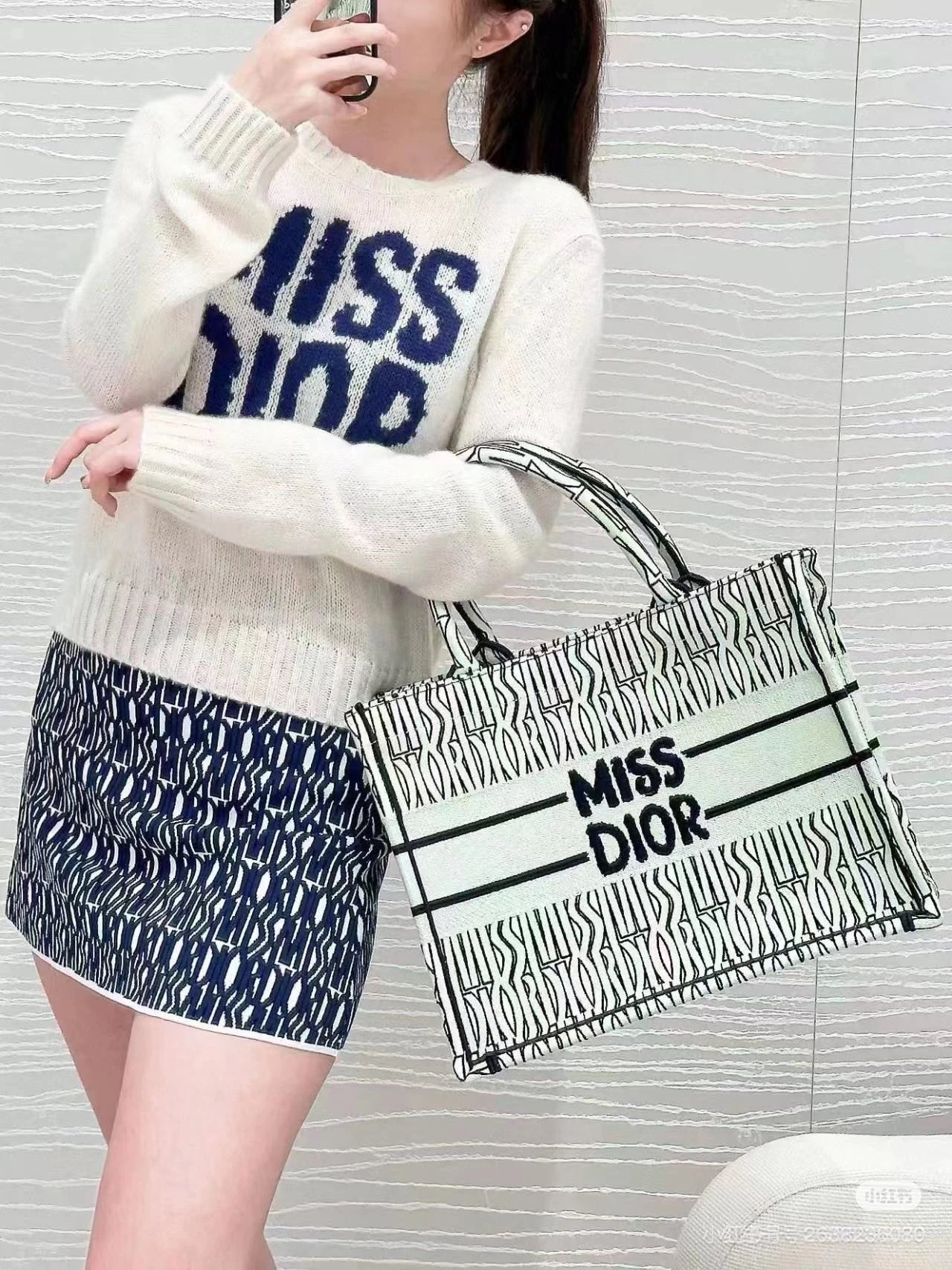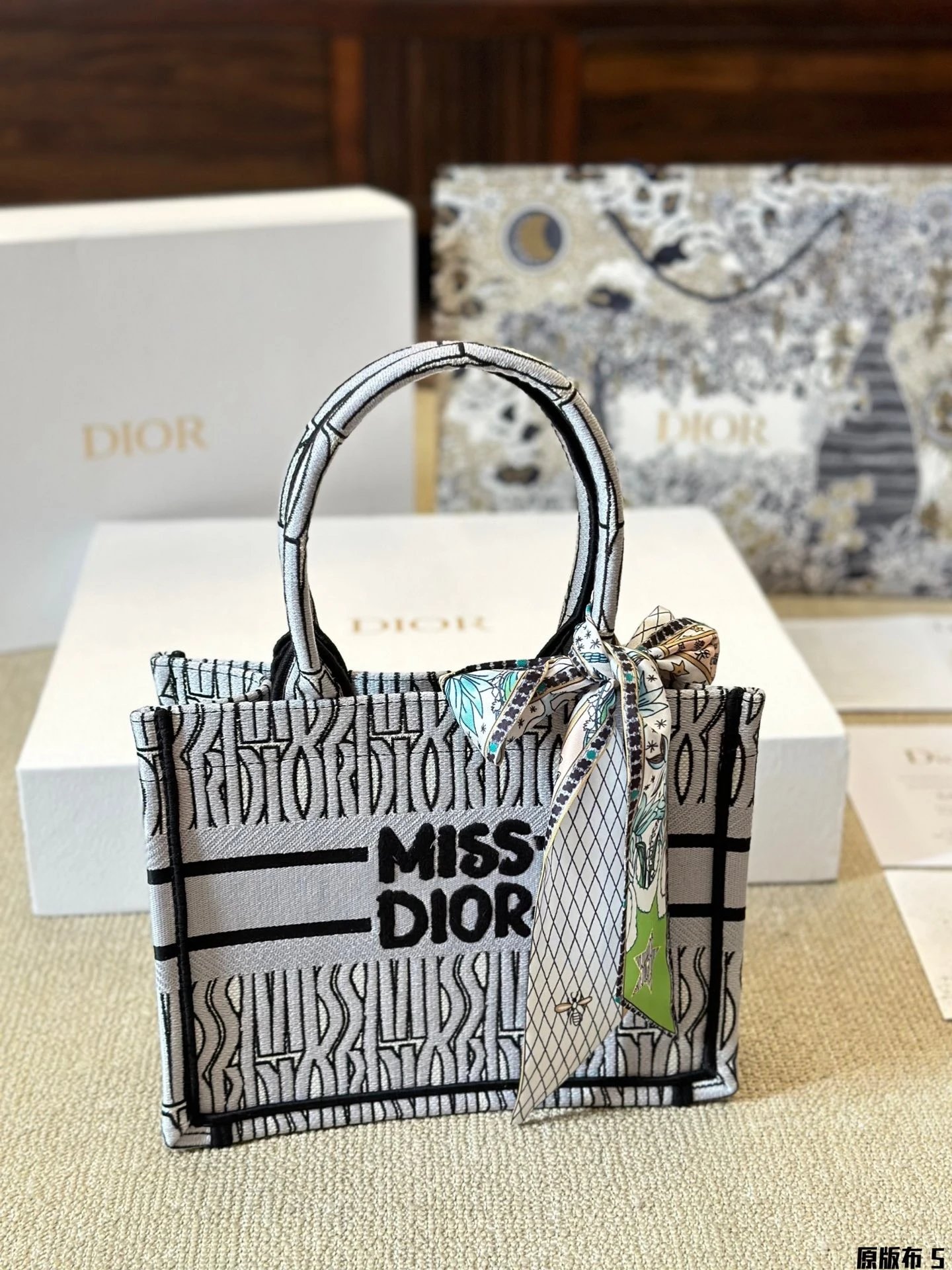 Alpha Home [**Original Order] D Home New Booktote 24 Winter Miss Allover Printed Tote Bag Full Jacquard Original Cloth Shopping Bag Large Capacity Handbag New Color (Box)