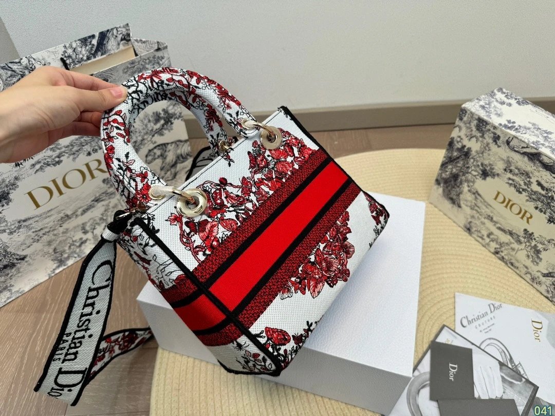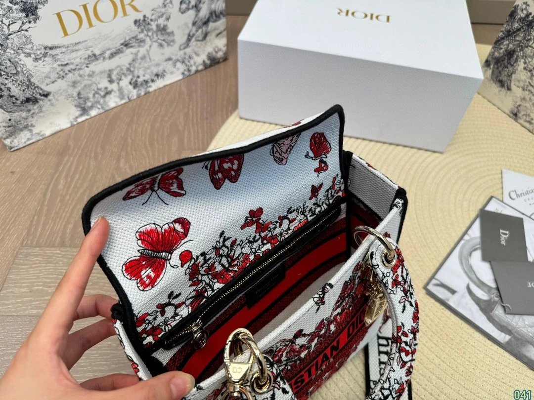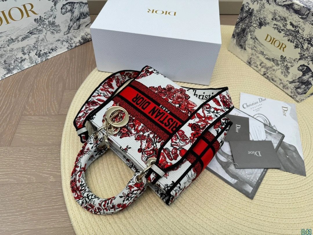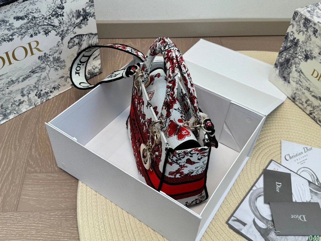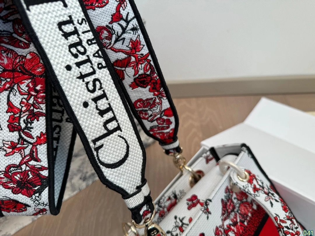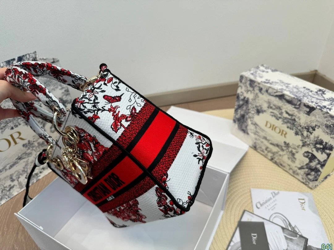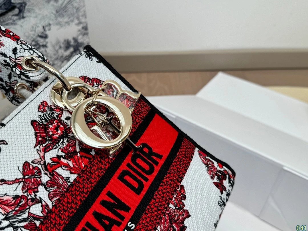 Alpha Home [**Original Order] D*ior Lady D Embroidery Shoulder Bag Aged Hardware Three-dimensional Embroidery Original Imported Canvas Fabric Flap Bag with Box