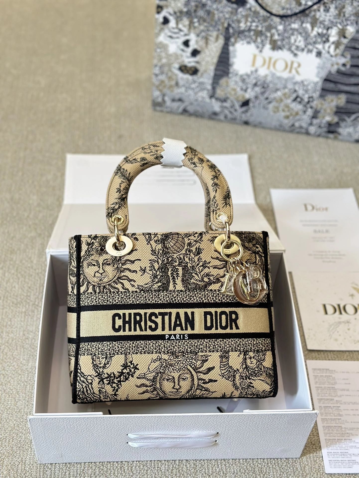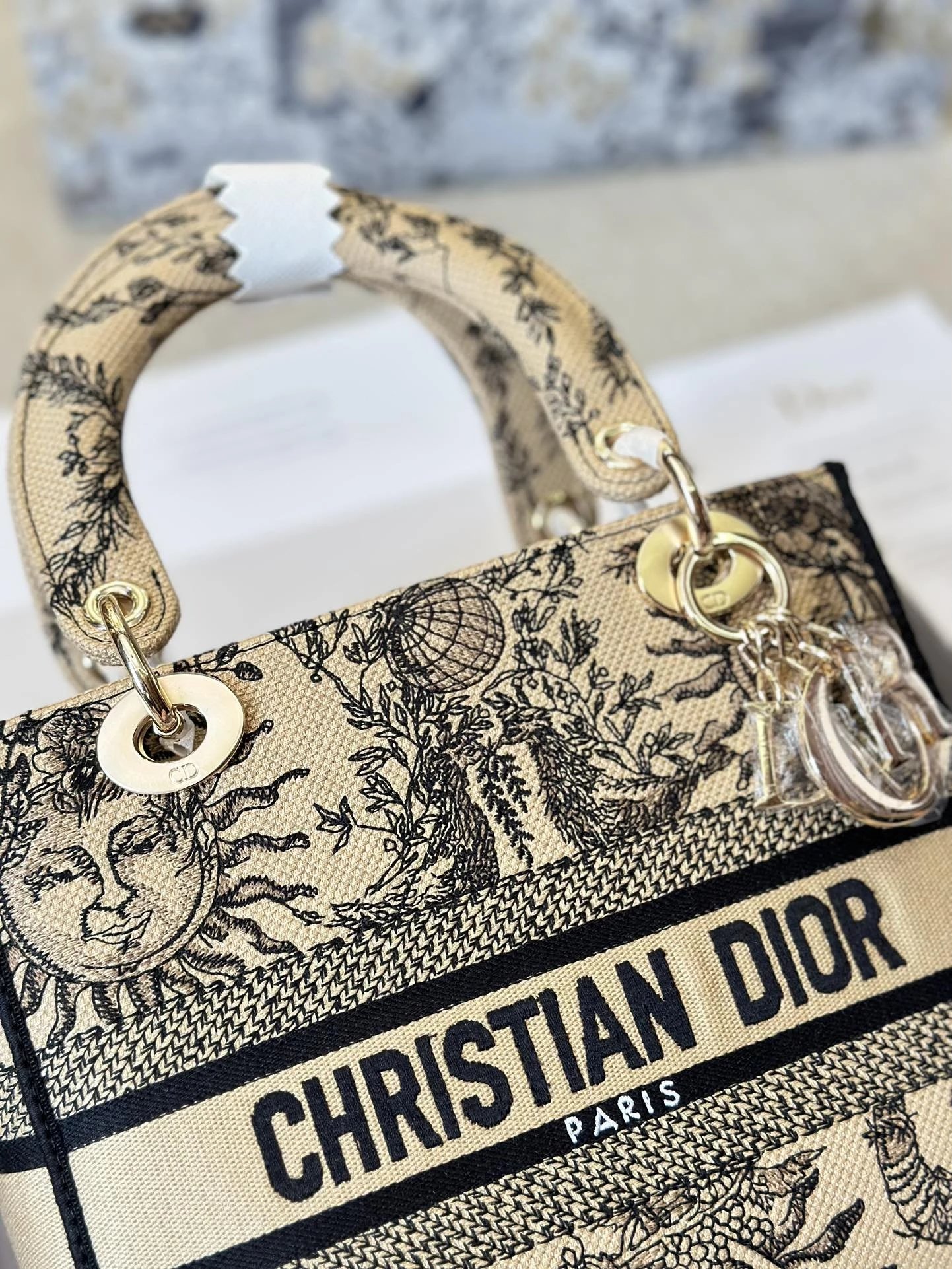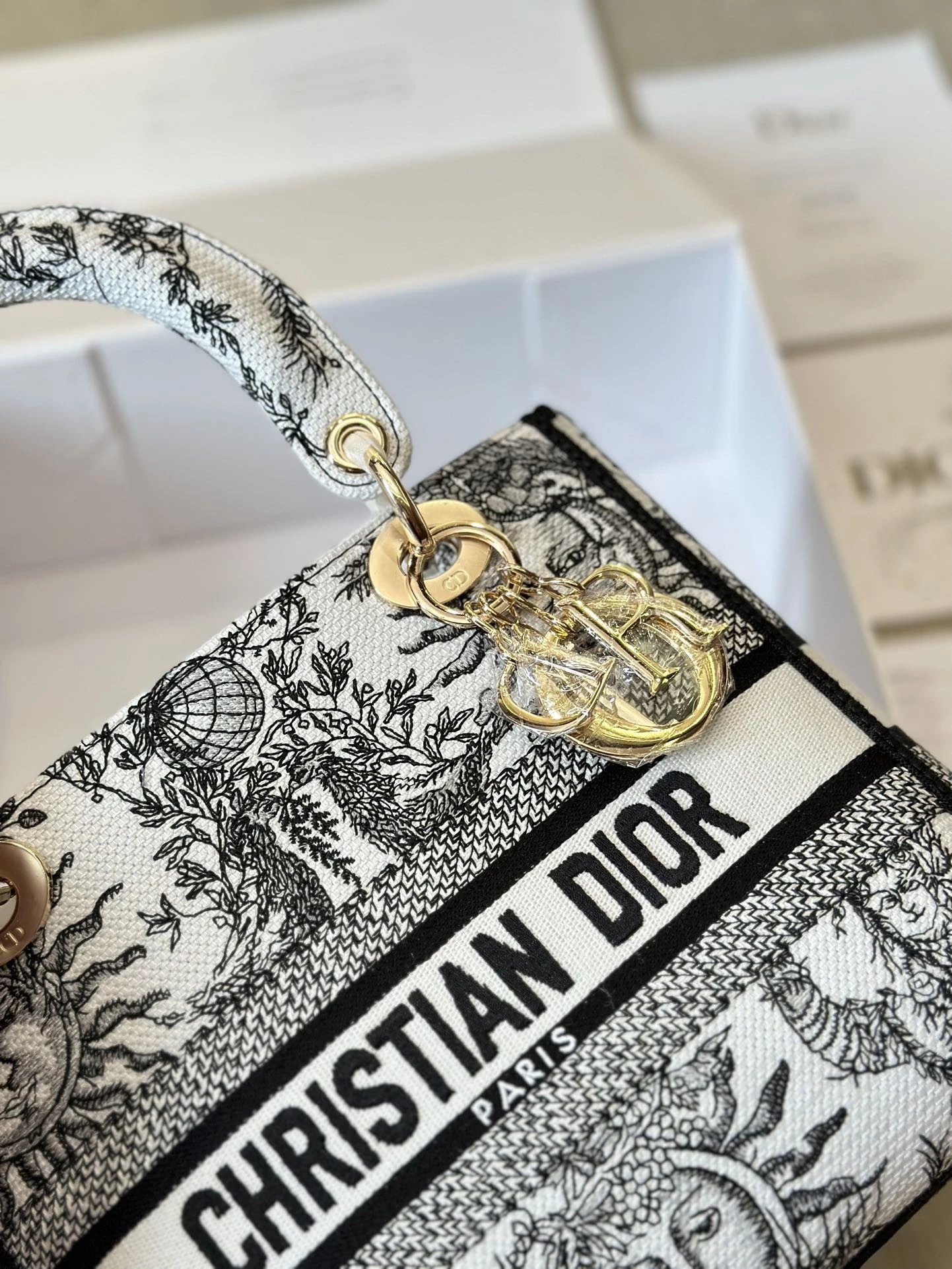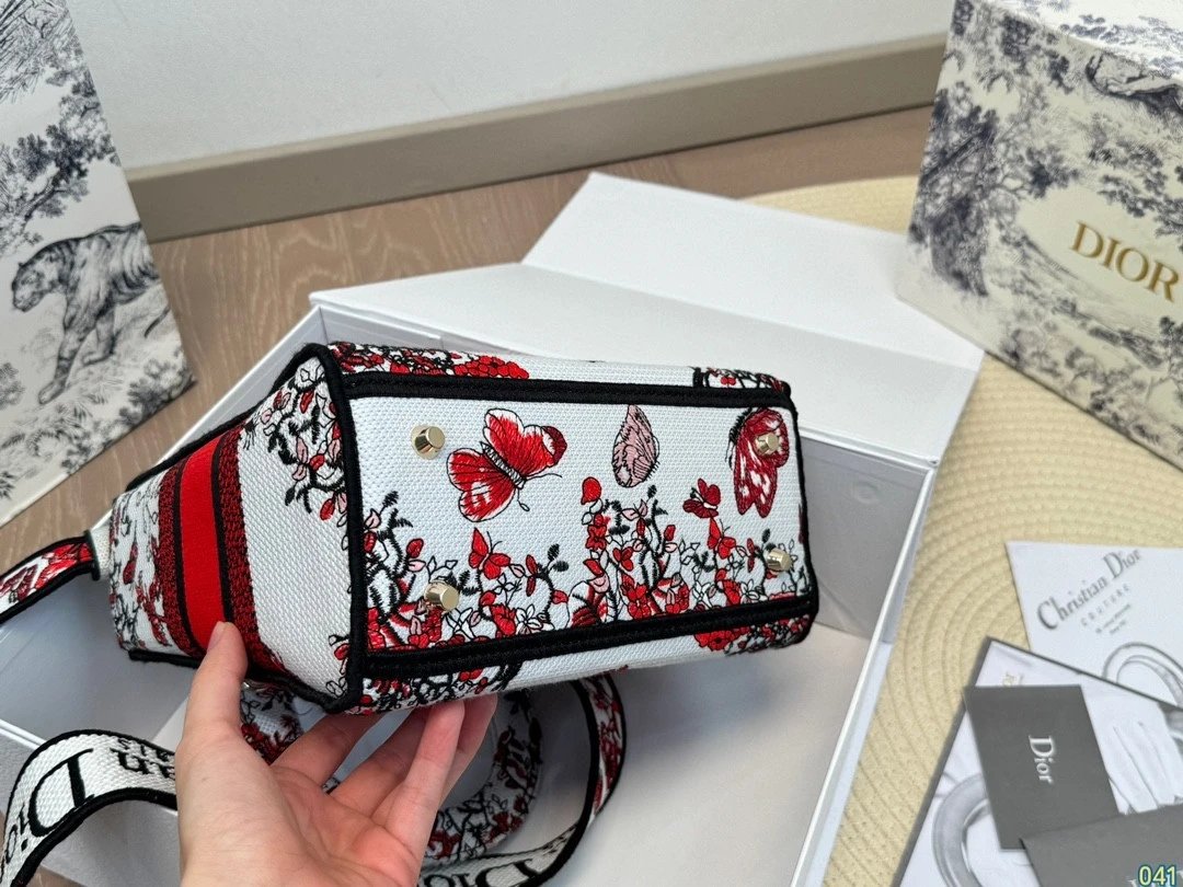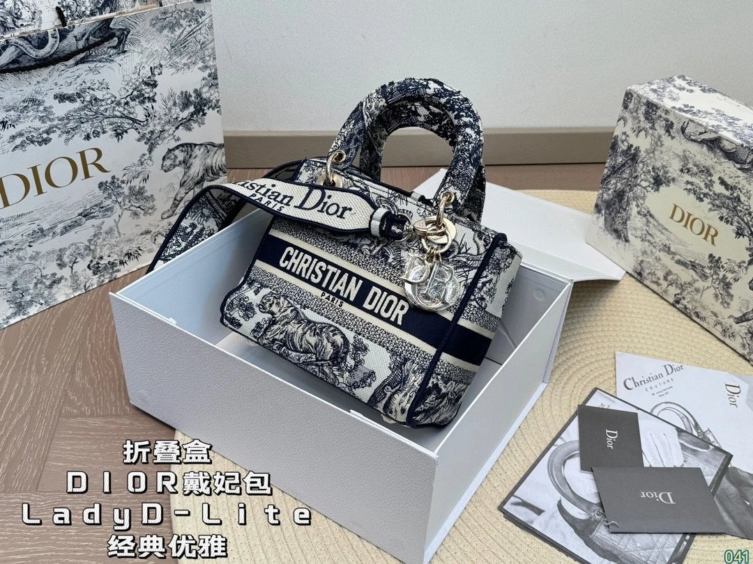 Alpha Home [**Original Order] D*ior Lady D Embroidery Shoulder Bag Aged Hardware Three-dimensional Embroidery Original Imported Canvas Fabric Flap Bag with Box