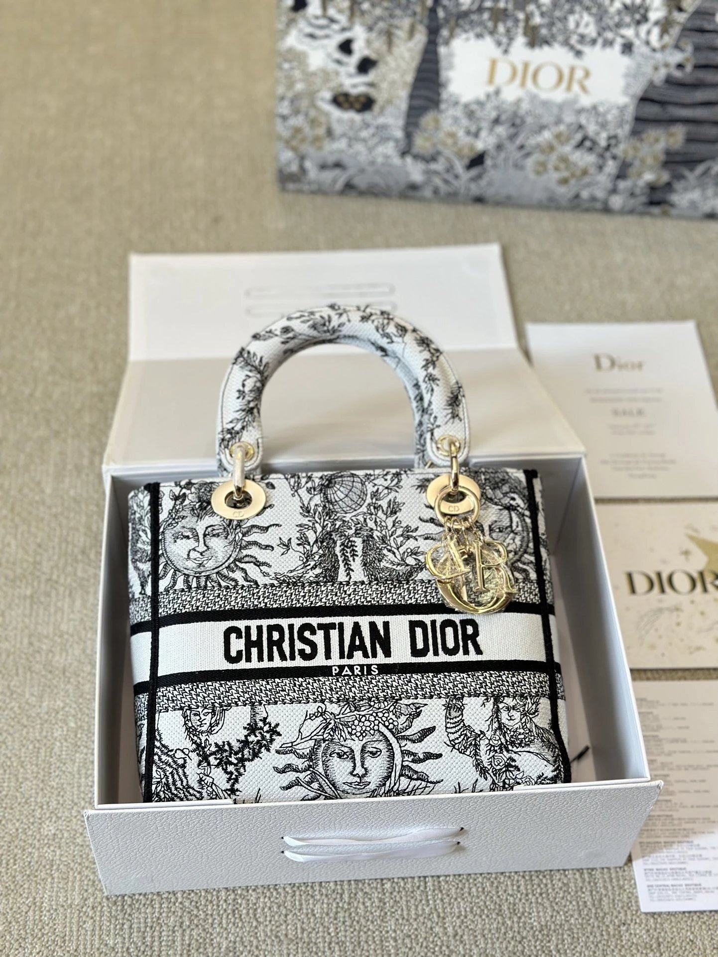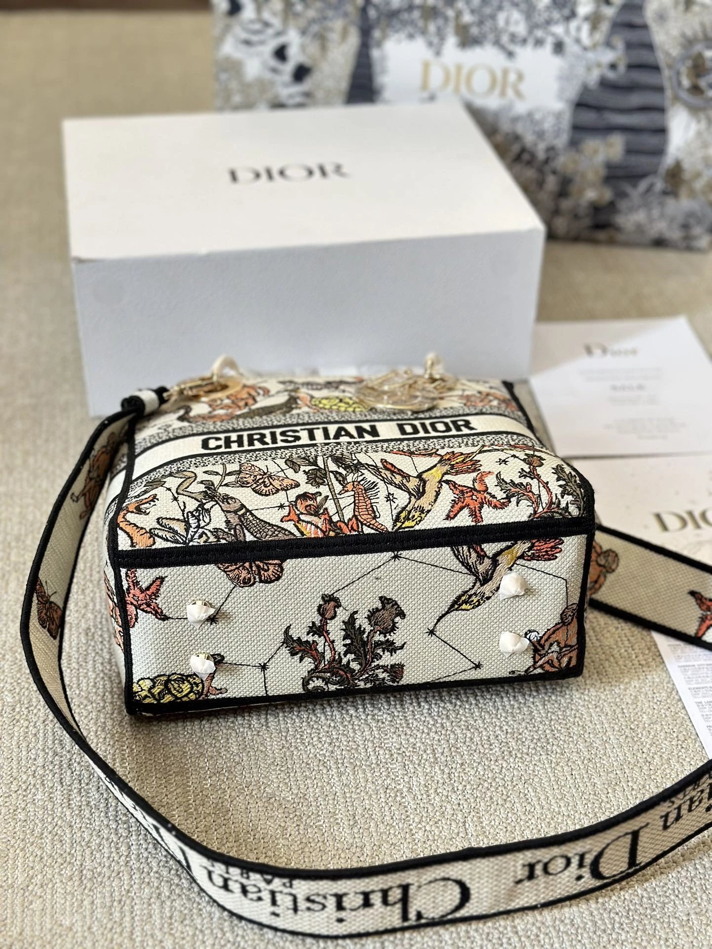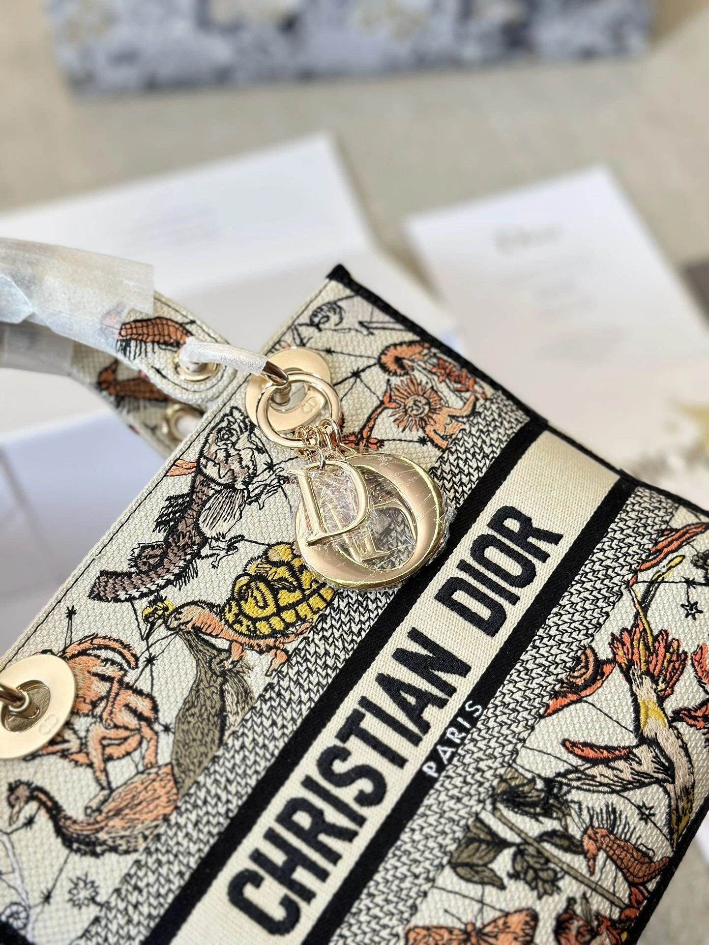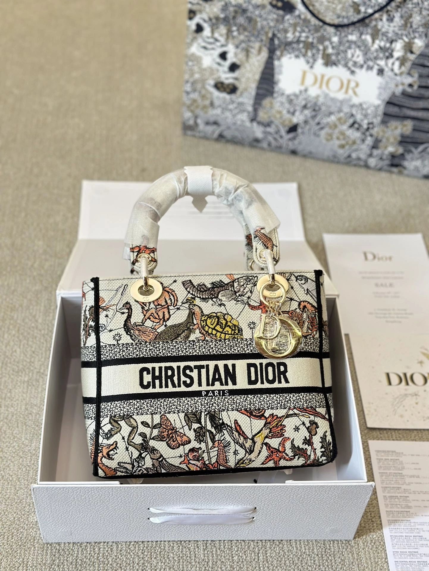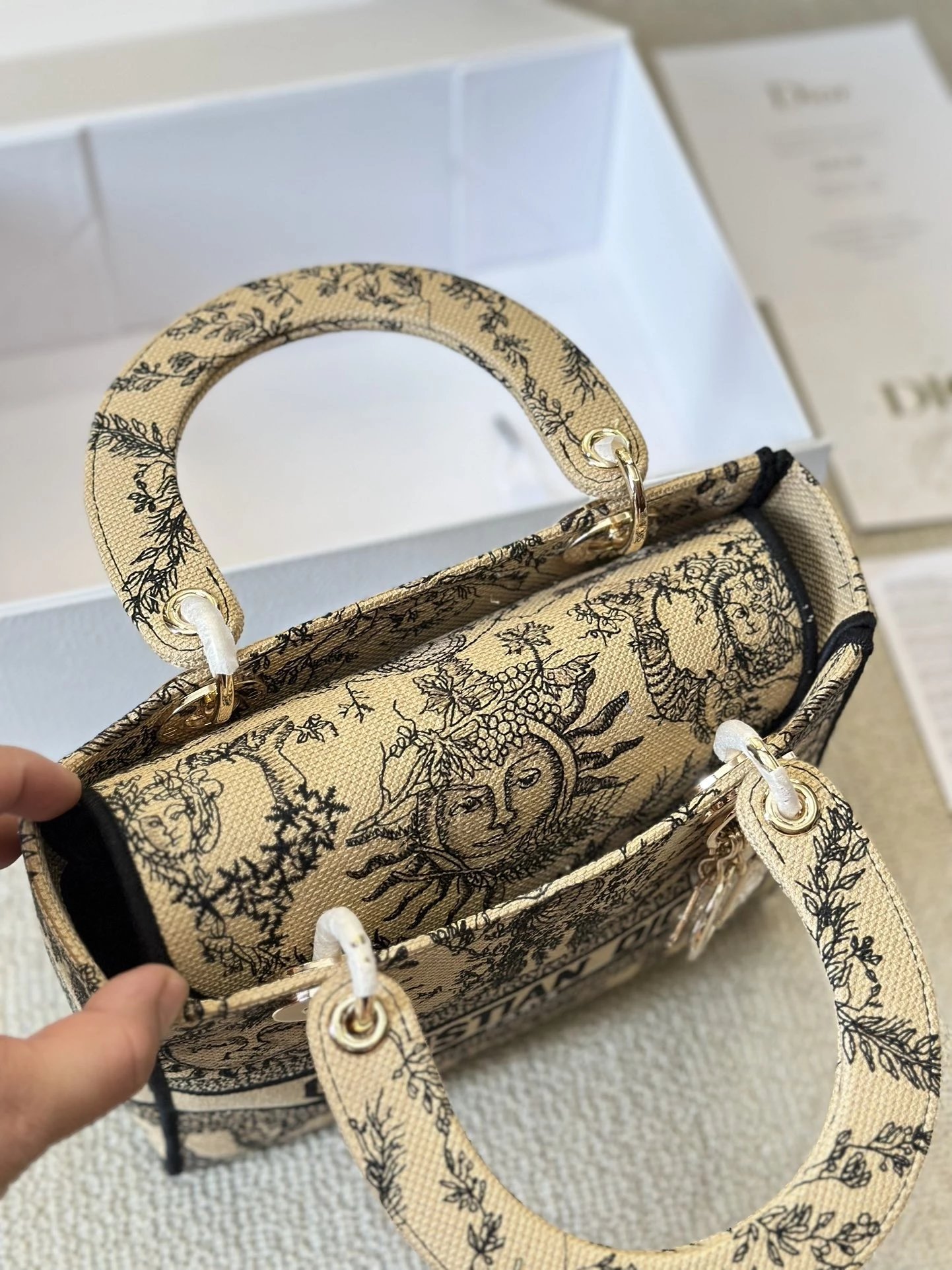 Alpha Home [**Original Order] D*ior Lady D Embroidery Shoulder Bag Aged Hardware Three-dimensional Embroidery Original Imported Canvas Fabric Flap Bag with Box