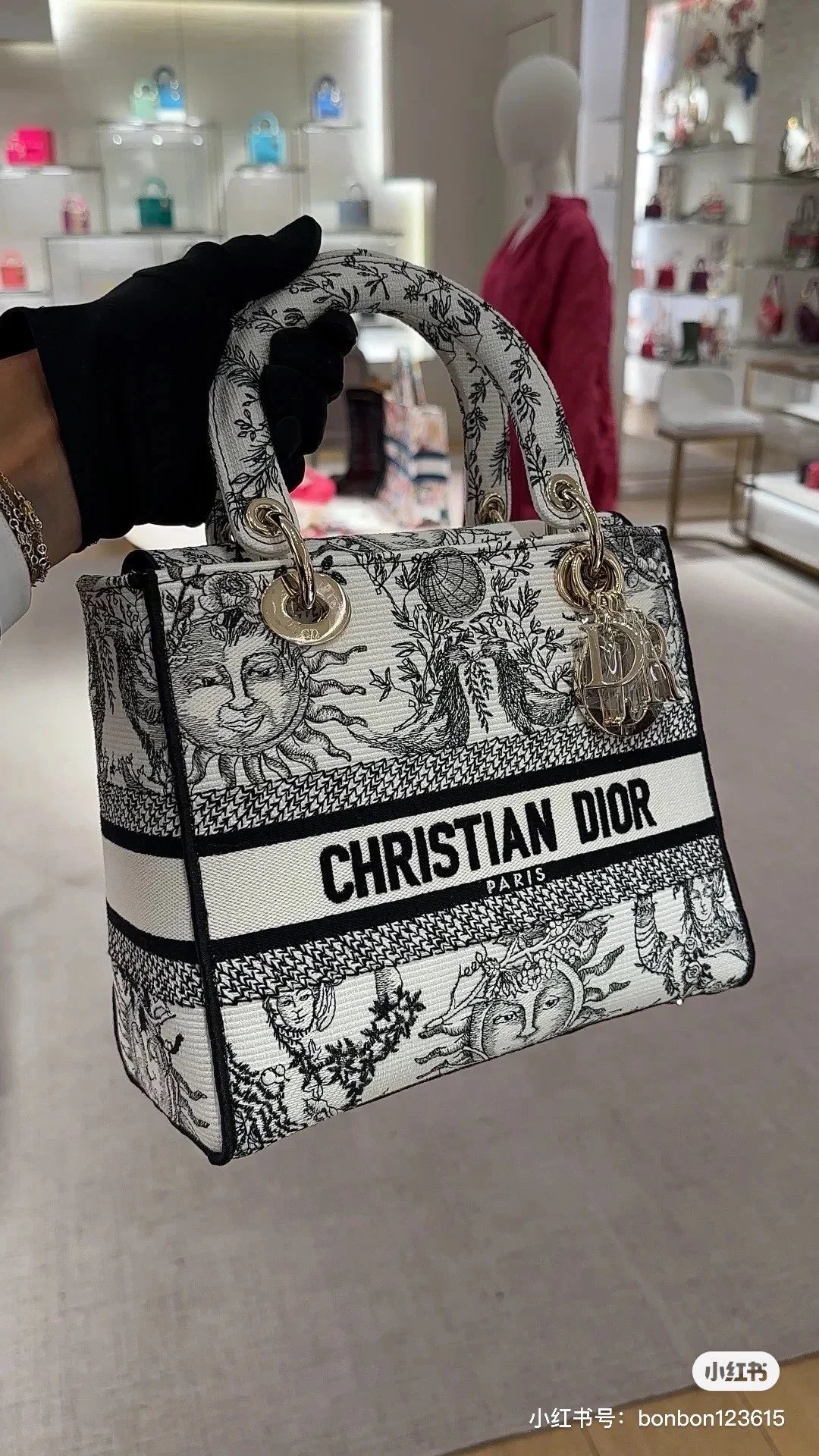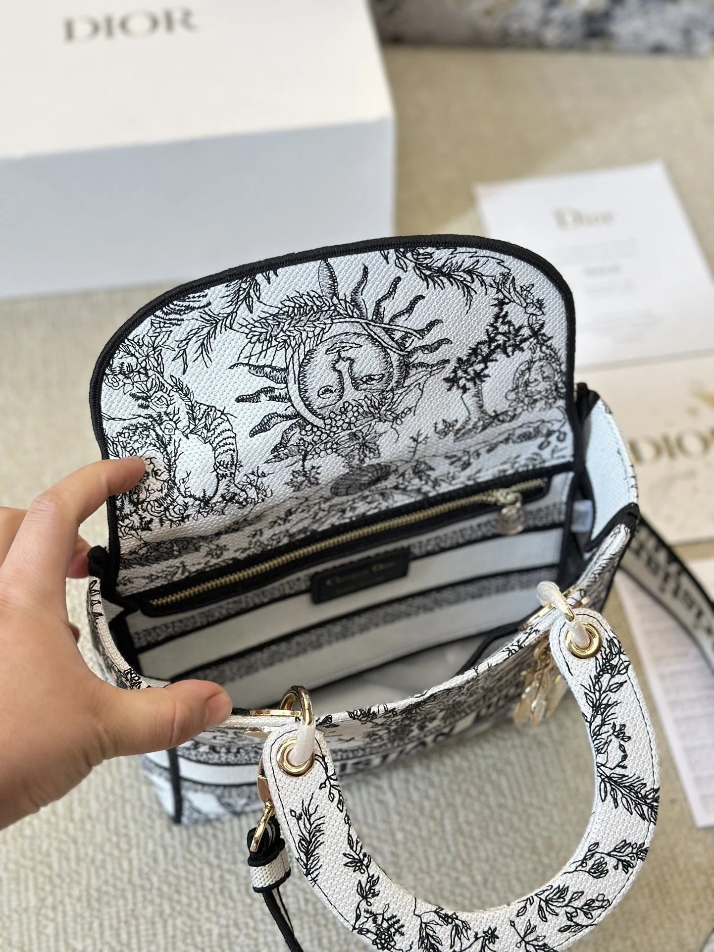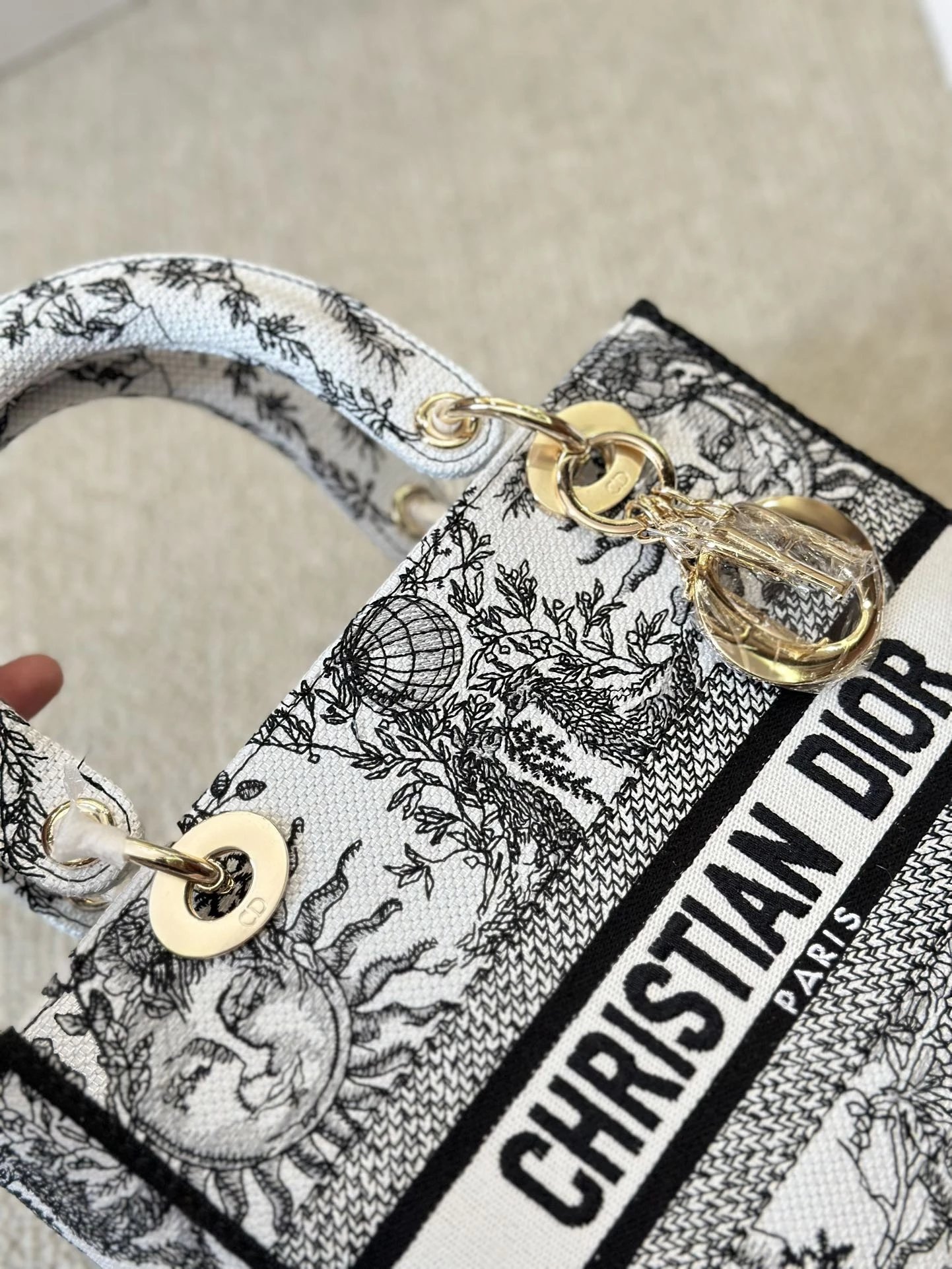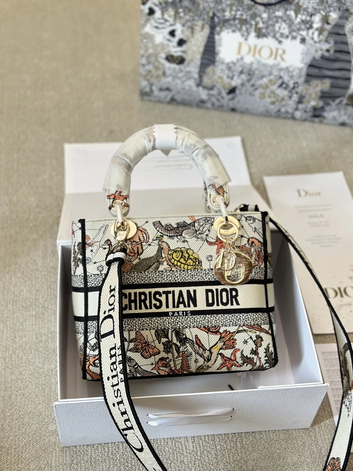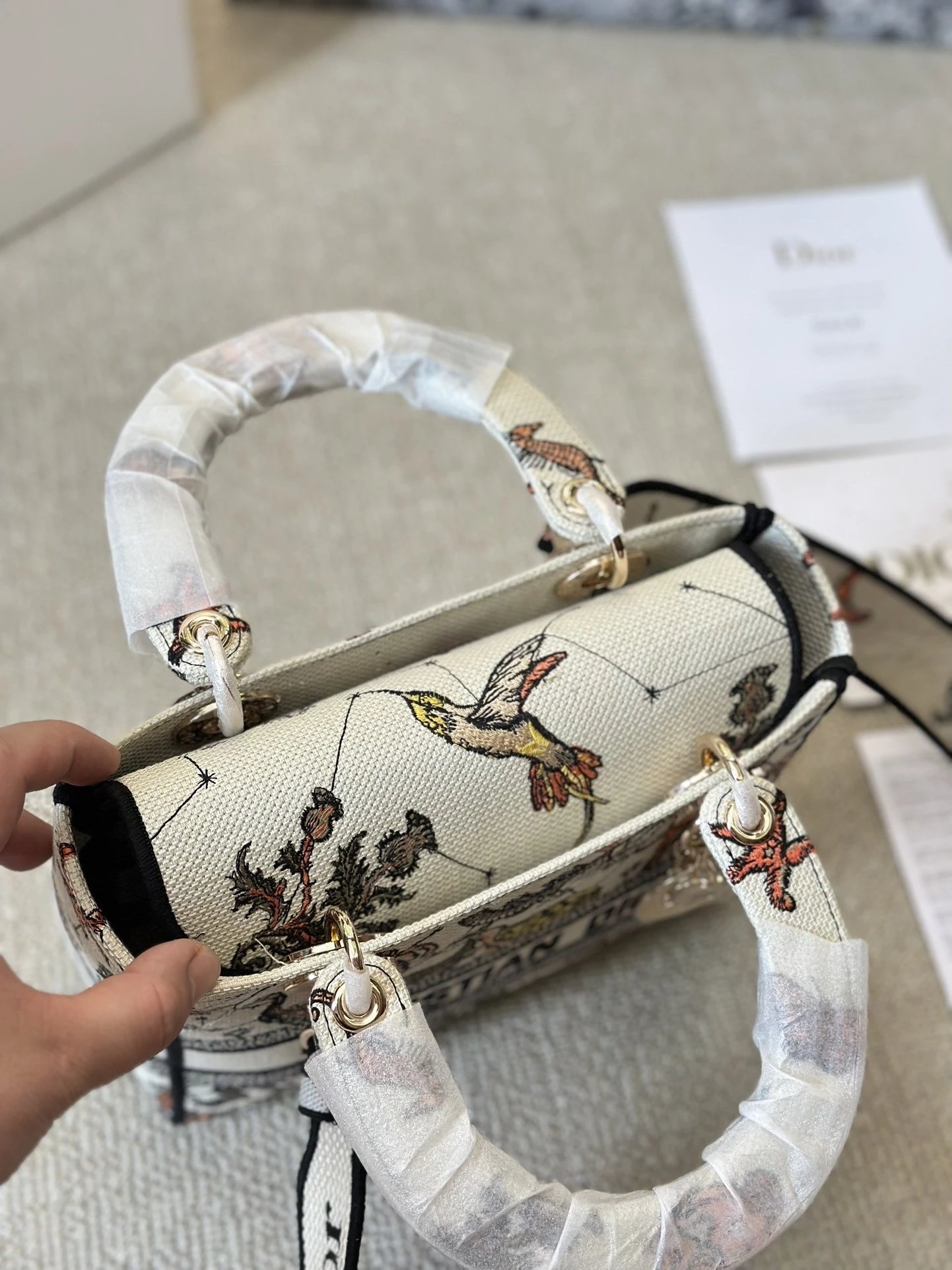 Alpha Home [**Original Order] D*ior Lady D Embroidery Shoulder Bag Aged Hardware Three-dimensional Embroidery Original Imported Canvas Fabric Flap Bag with Box