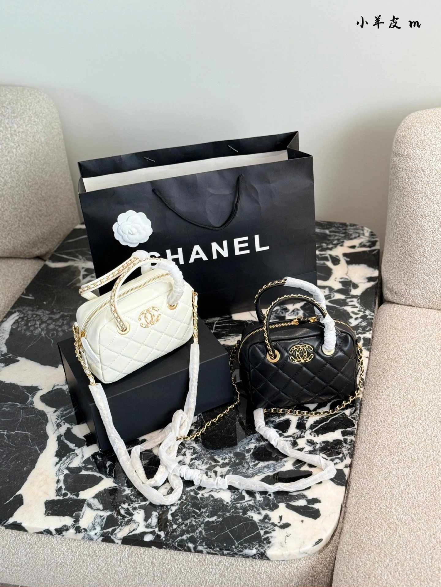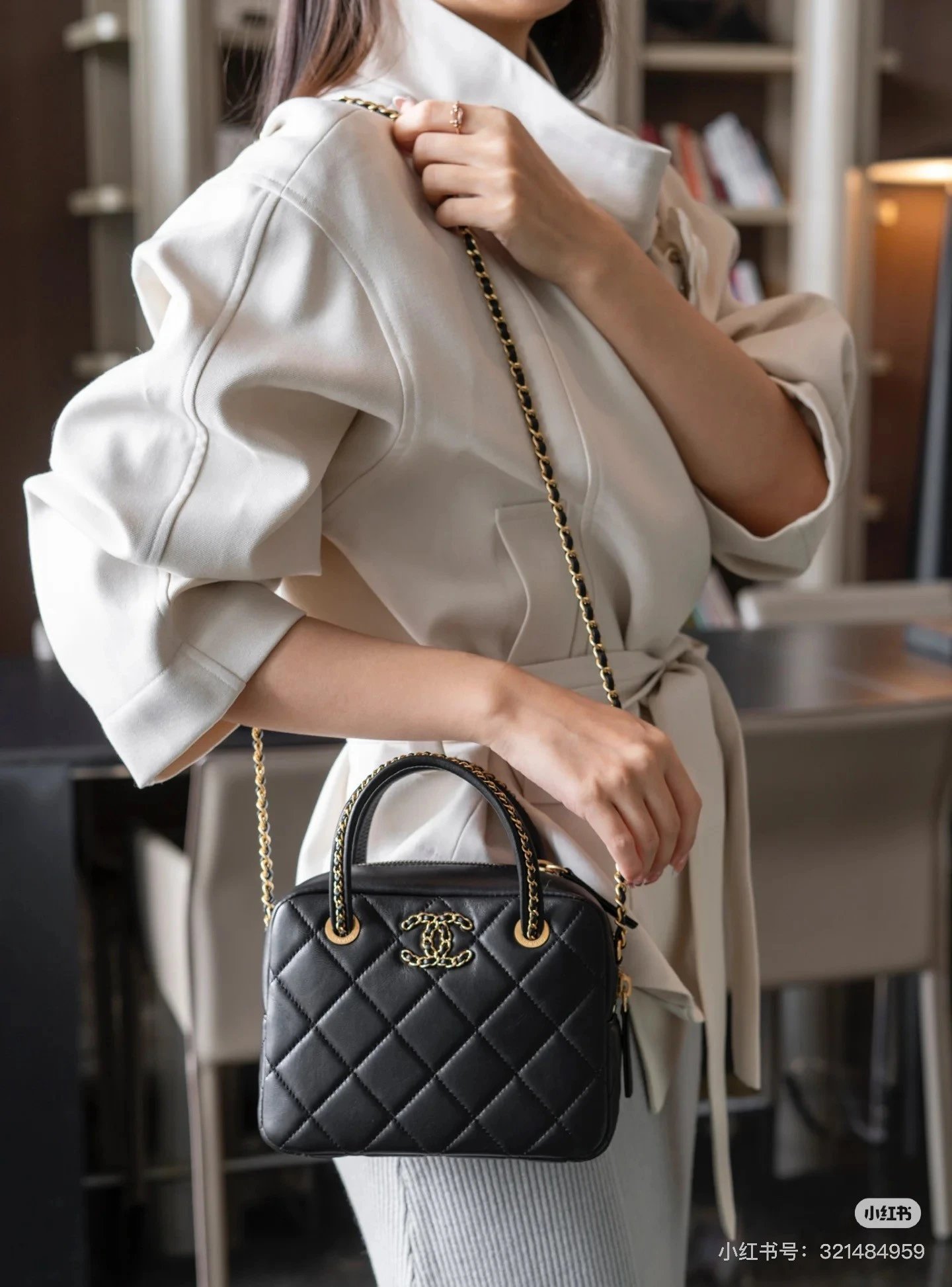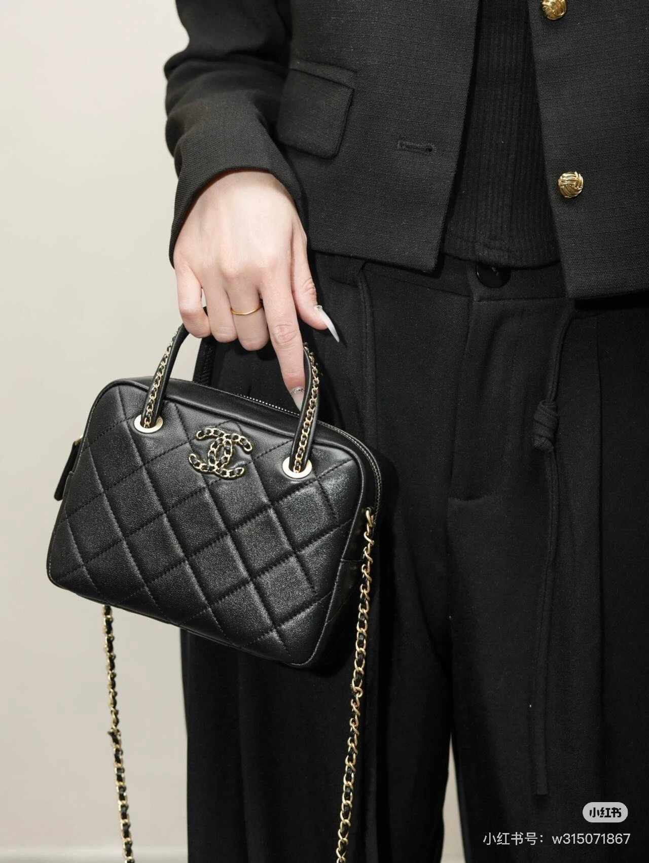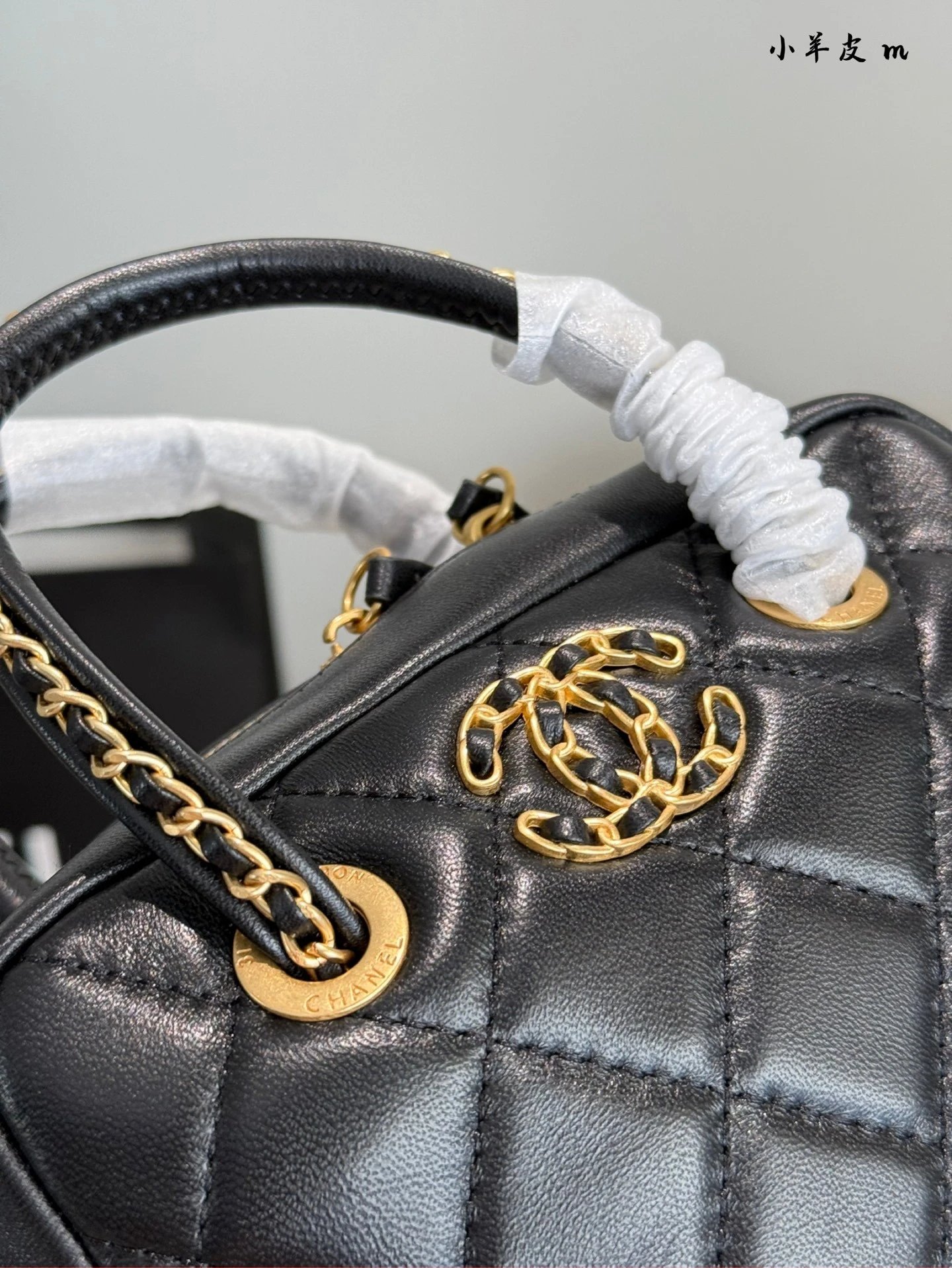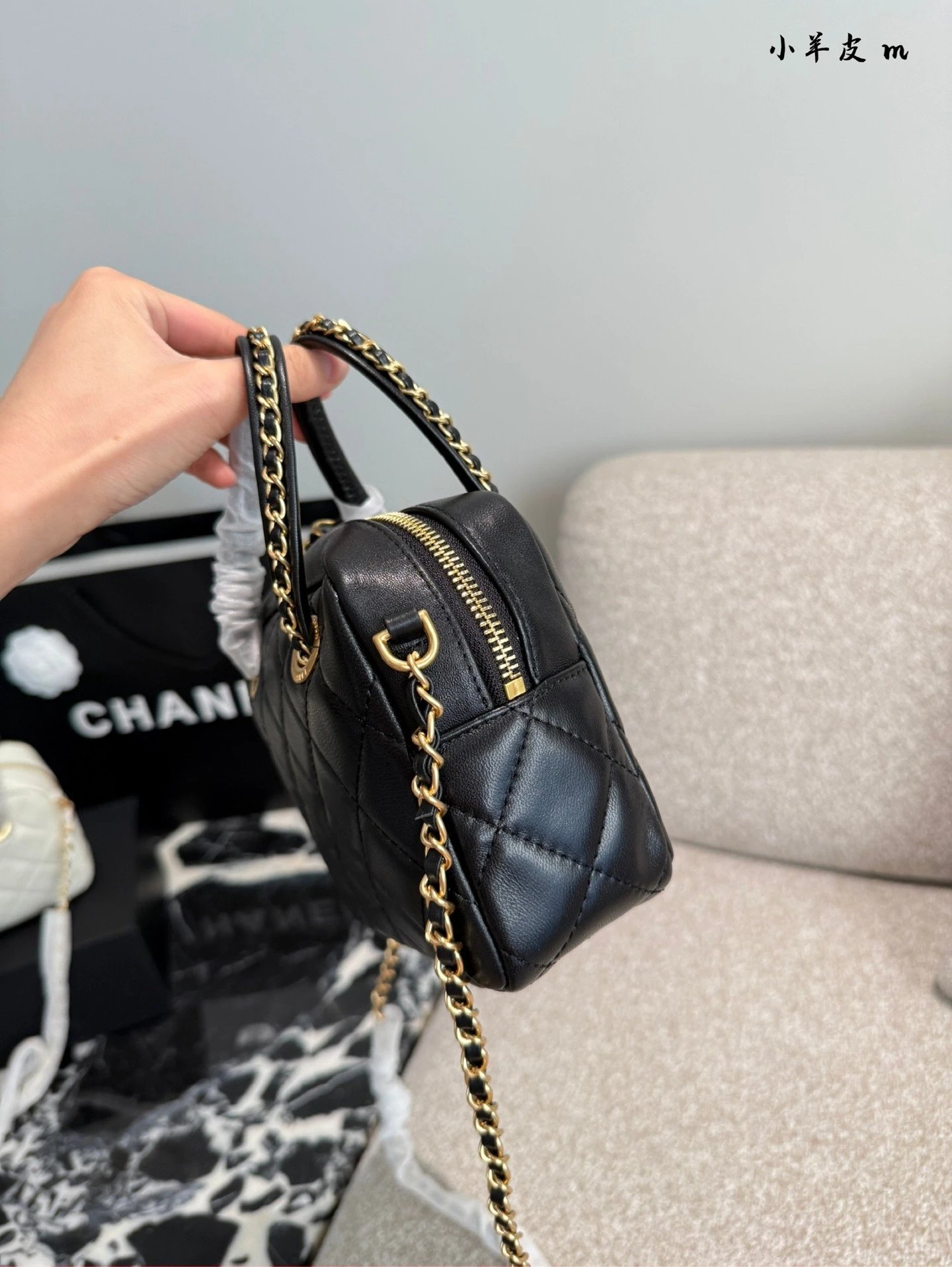 Alpha Home [Original Quality] 2025 New 25c Bowling Bag Classic Diamond Check Design Black Gold Woven Handle Leather Bag Light and cute