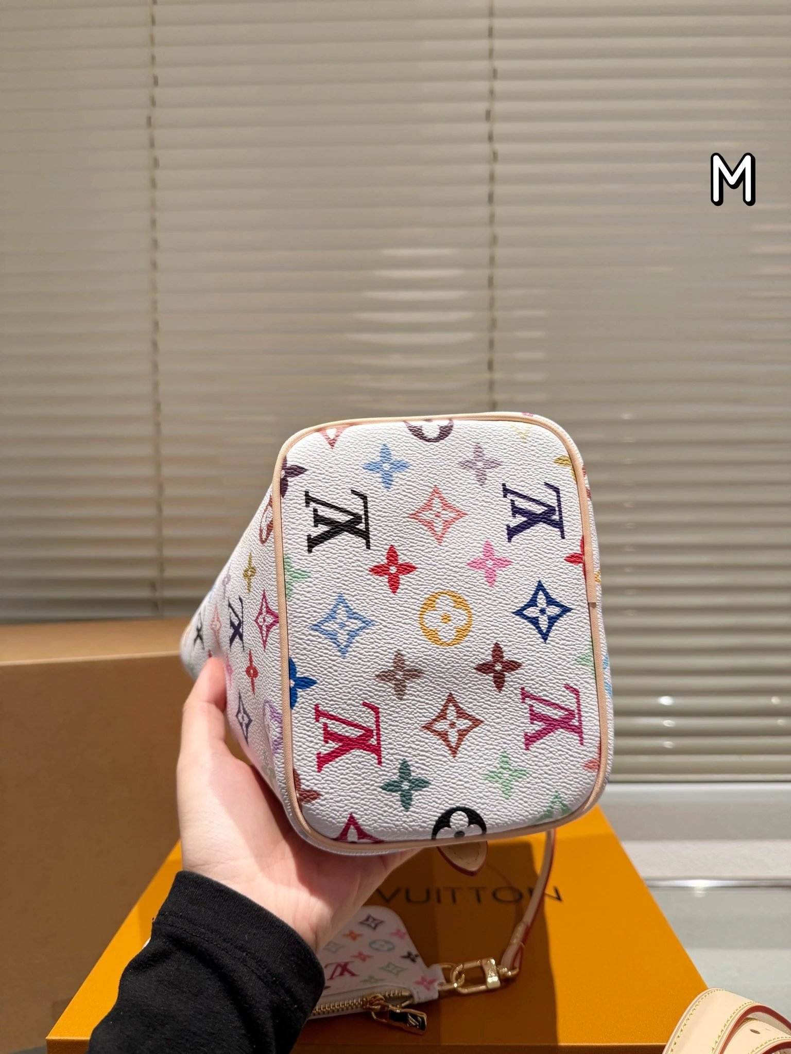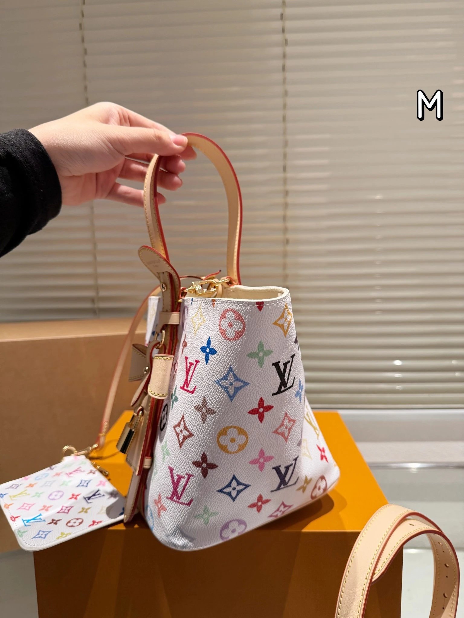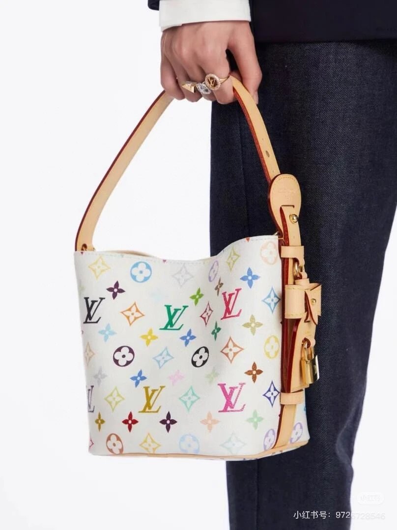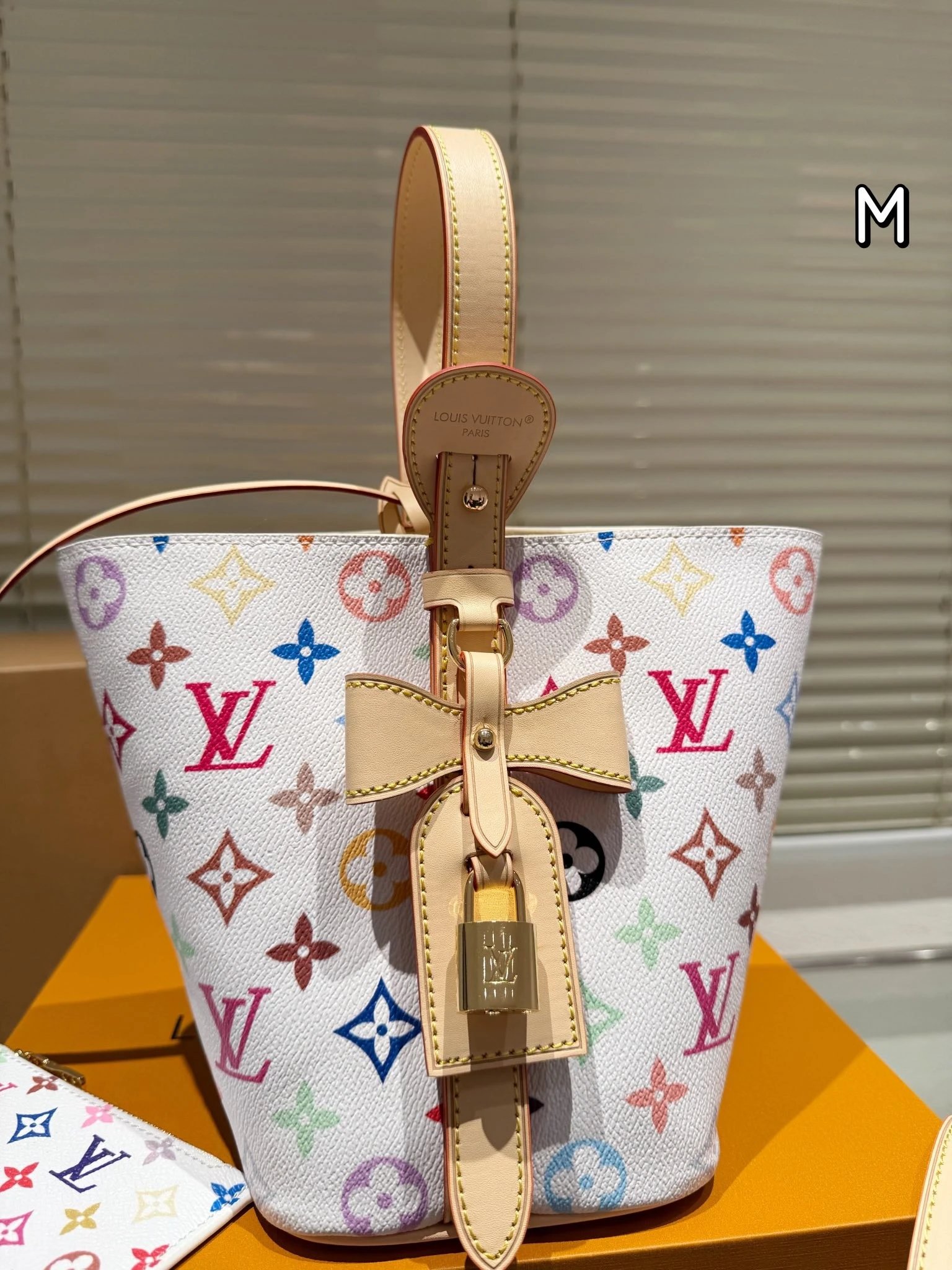 Alpha Home [Original Single Quality] 2025 New BB Bucket Bag Sought-after White Sancai Classic Old Flower Leather Crossbody Bag T*k*shi Mur*k*mi Collaboration Small Cute Practical Adjustable Shoulder Strap Purse With Box