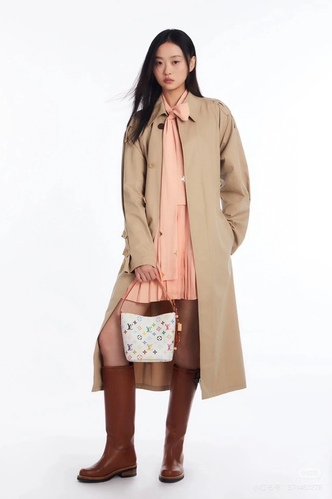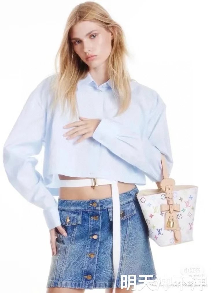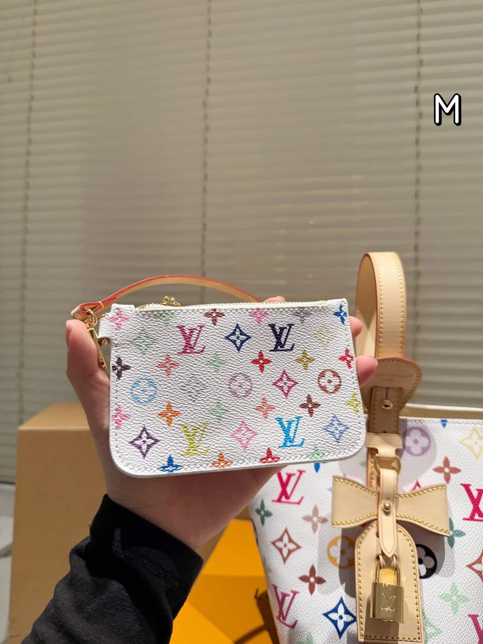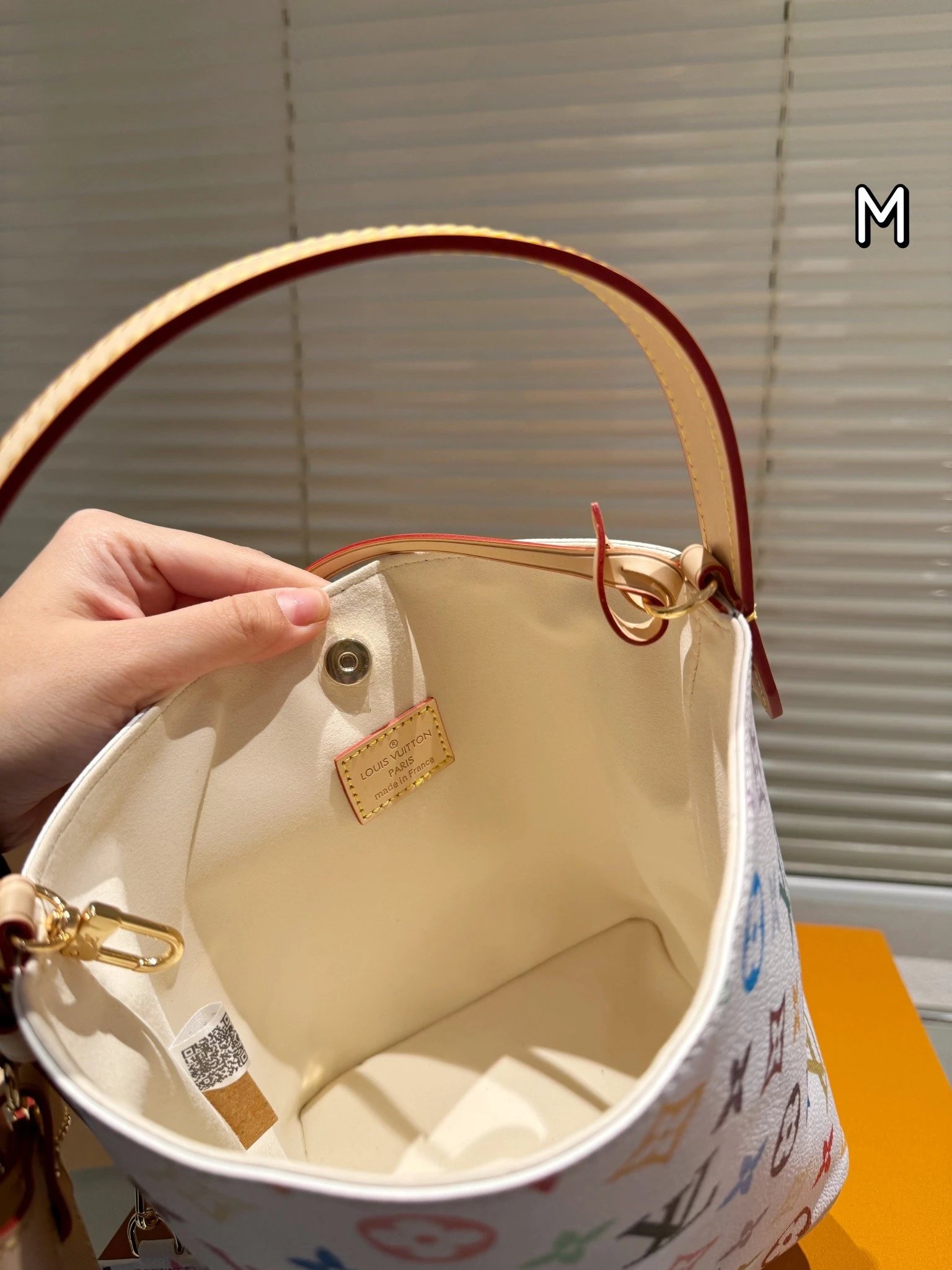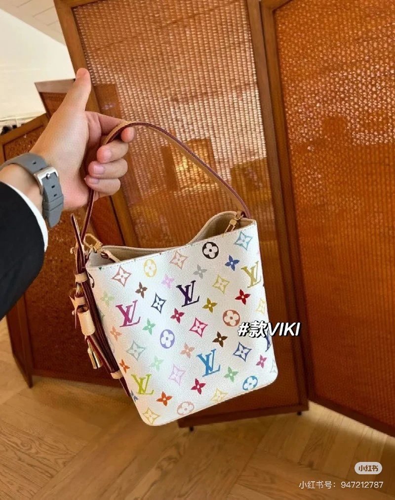 Alpha Home [Original Single Quality] 2025 New BB Bucket Bag Sought-after White Sancai Classic Old Flower Leather Crossbody Bag T*k*shi Mur*k*mi Collaboration Small Cute Practical Adjustable Shoulder Strap Purse With Box