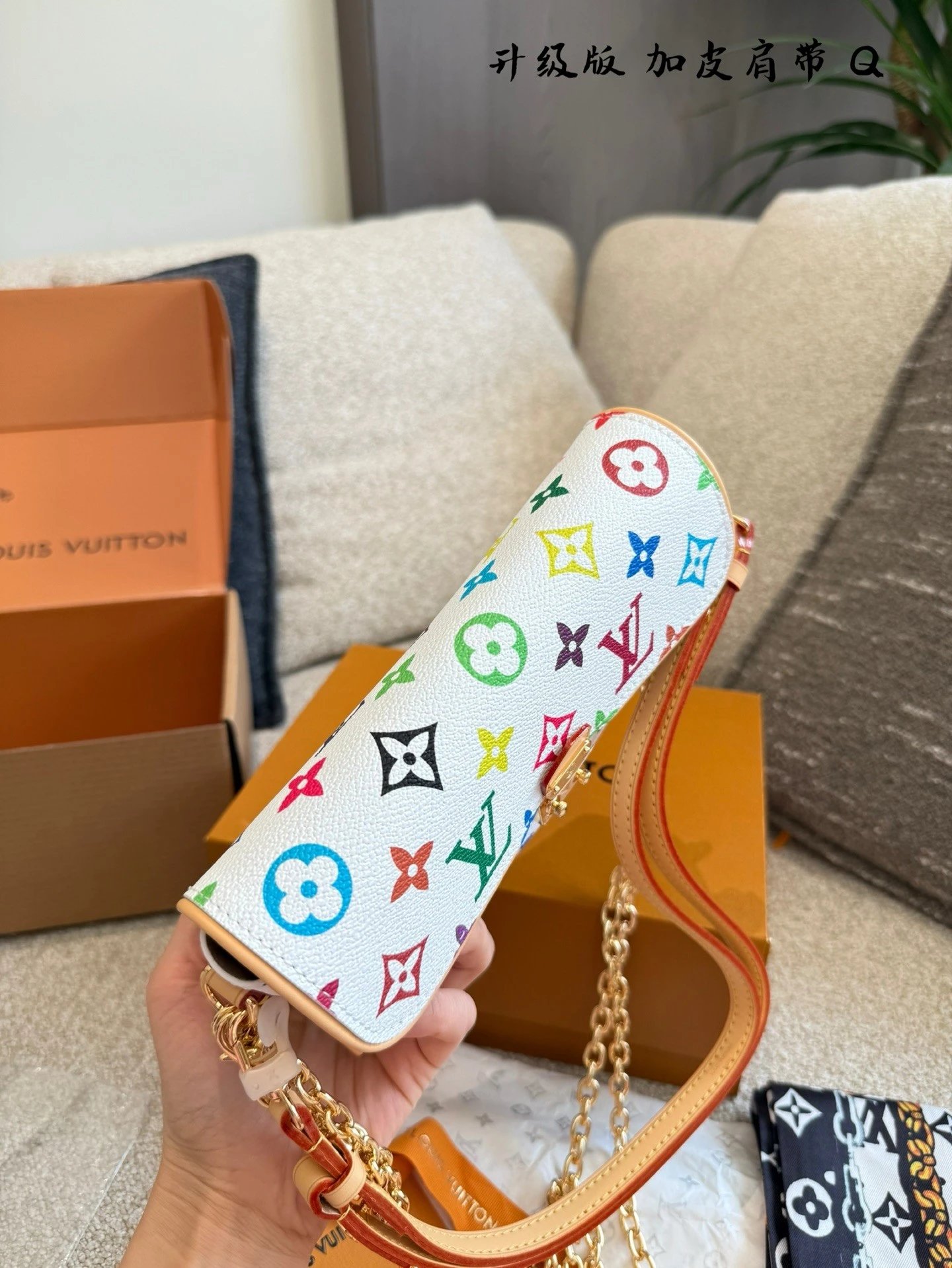 Alpha Home [Original Single Quality] 2025 New Pochette Camille Baguette Flap Bag White Three Color Original Leather Chain Bag Small and Cute Classic Matching Key Coin Purse with Box