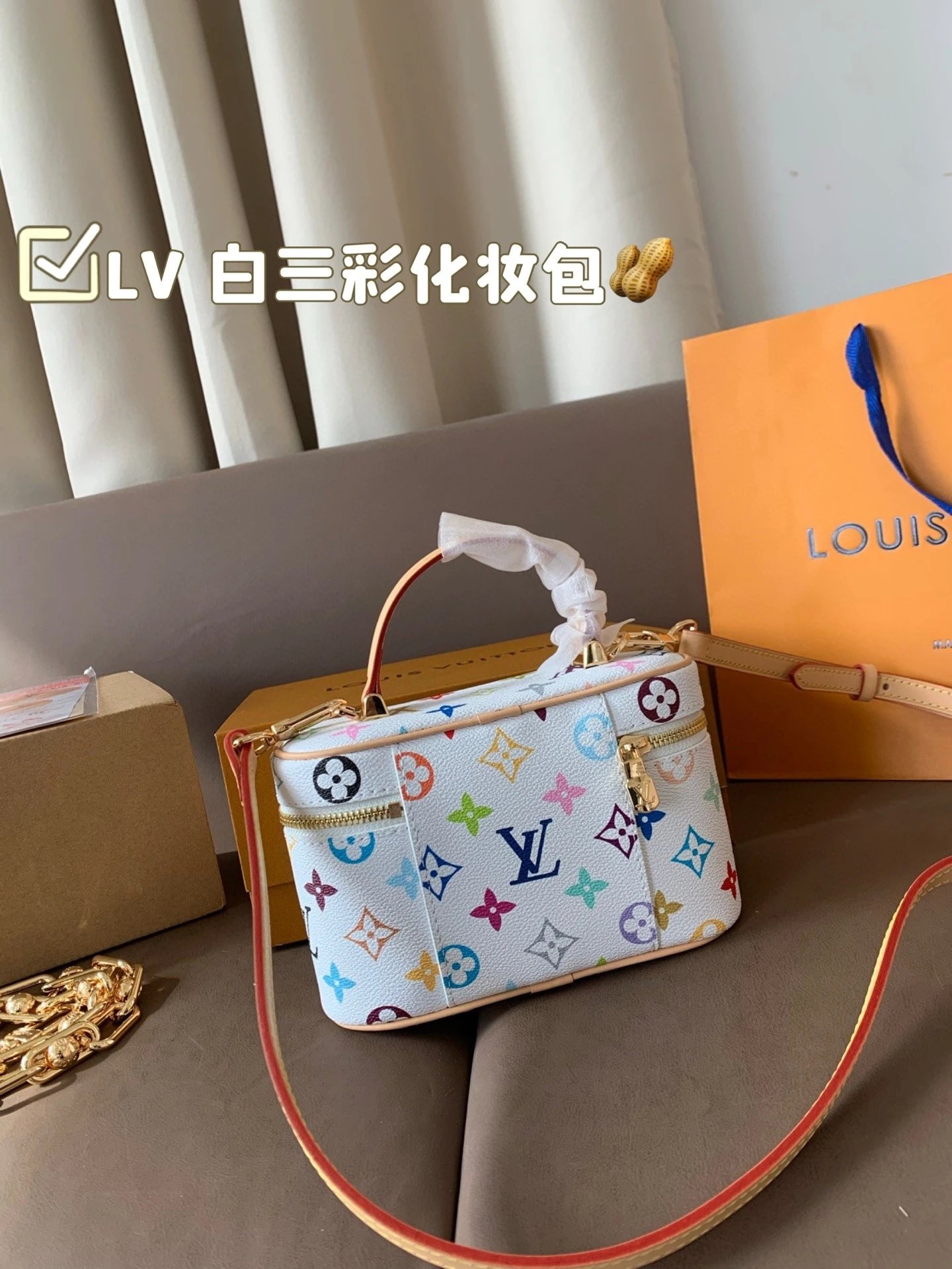 Alpha Home [Original Single Quality] Mur*k*mi T*k*shi Co-branded White Sancai New Box Bag Popular Reincarnation Cosmetic Box Original Leather Hardware Matching Box