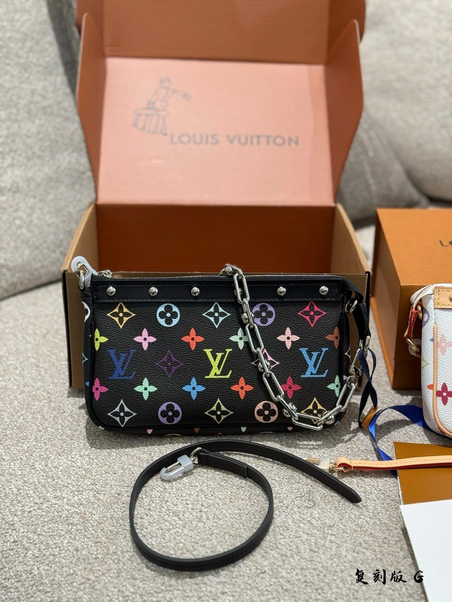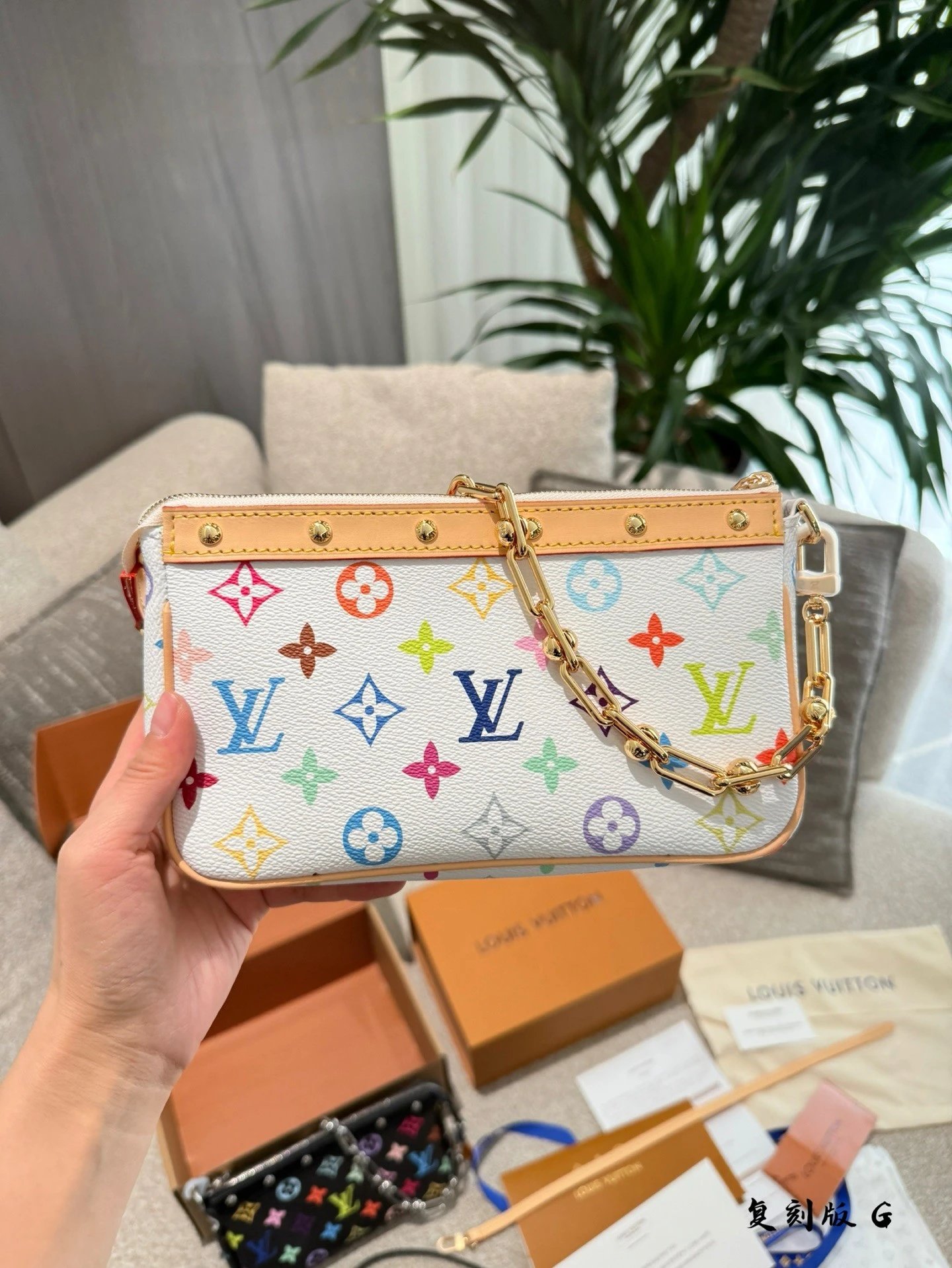 Alpha Home [Original Single Quality] T*k*shi Mur*k*mi Co-branded White Sancai Black Sancai Mahjong Bag Limited Edition Chain Bag Coin Purse Old Flower Leather Single Zipper Closure Bag Original Leather (with Box)