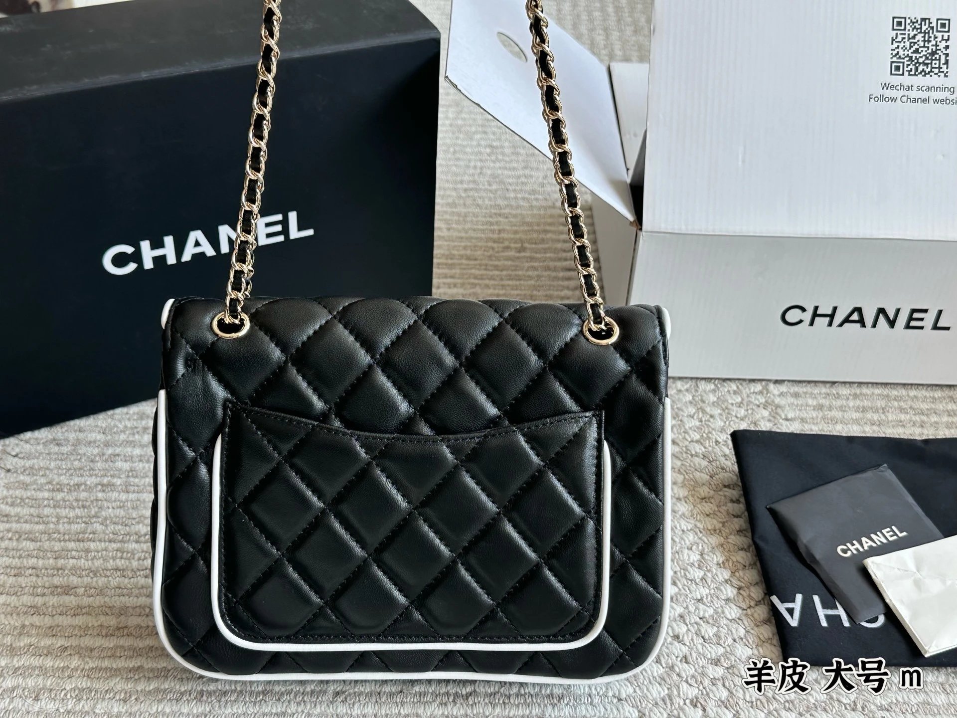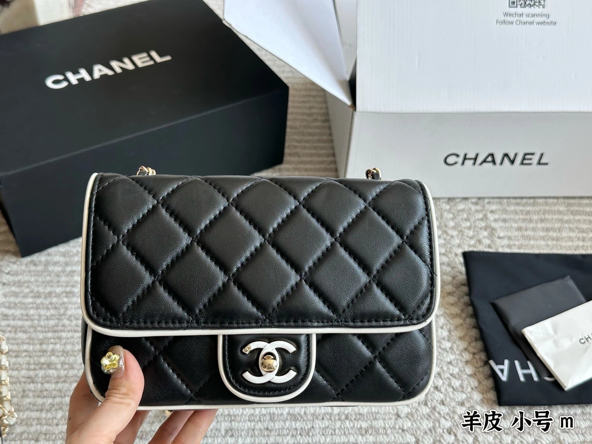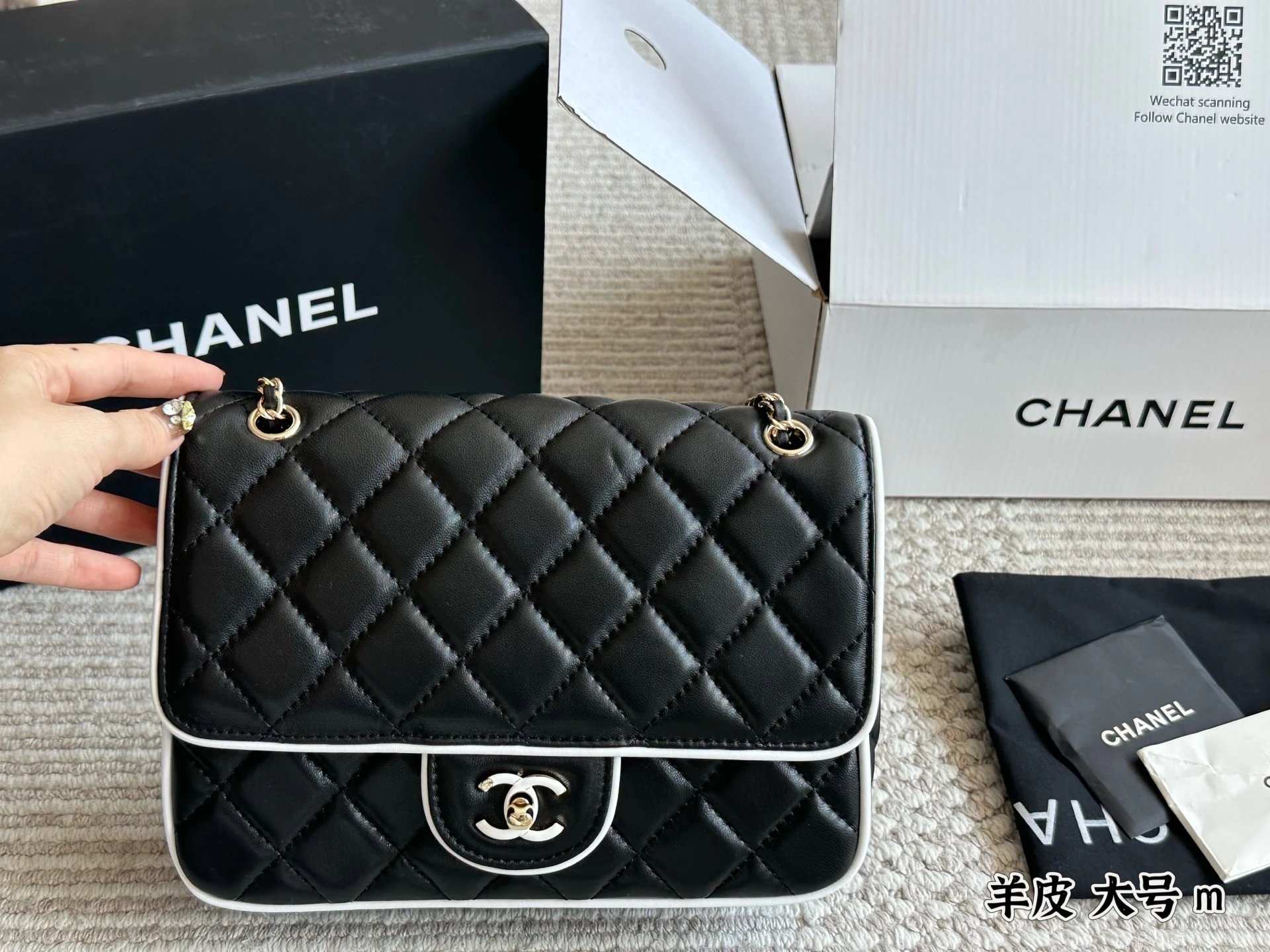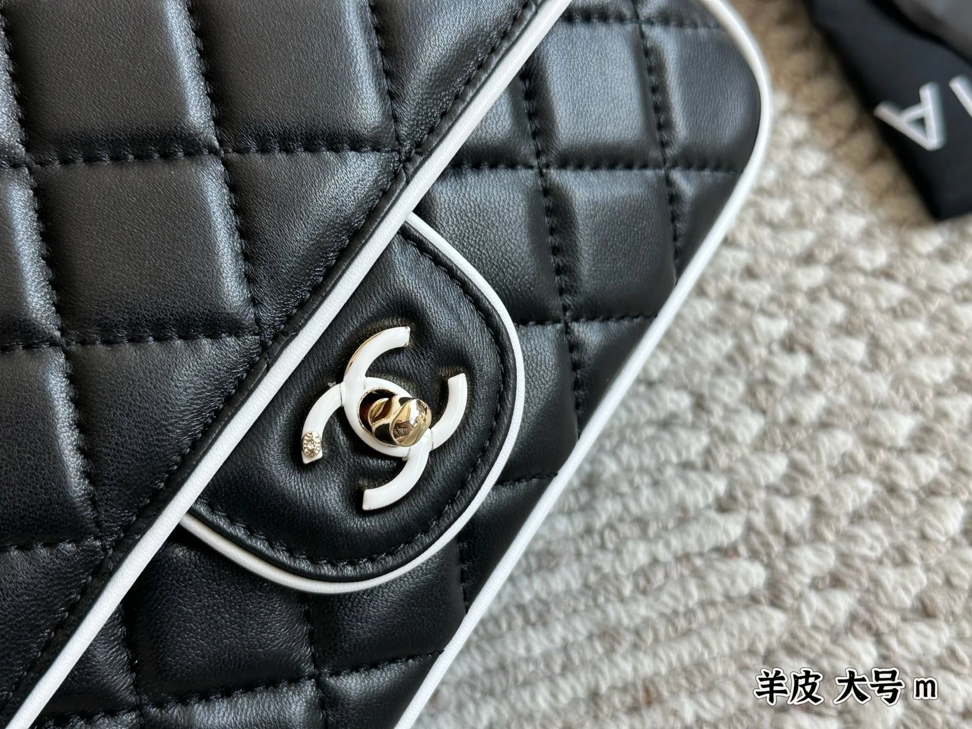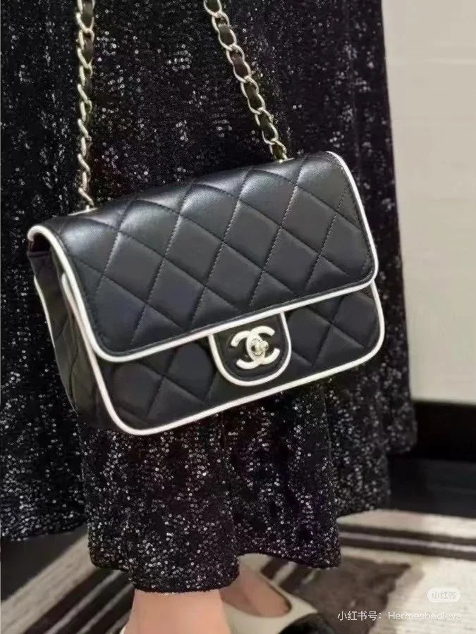 Alpha Home [Original Single Quality] Panda Color Matching Black White Edge Leather Bag Paired Leather Chain Bag Flap Bag Women's Bag Women's Leather Bag Original Hardware