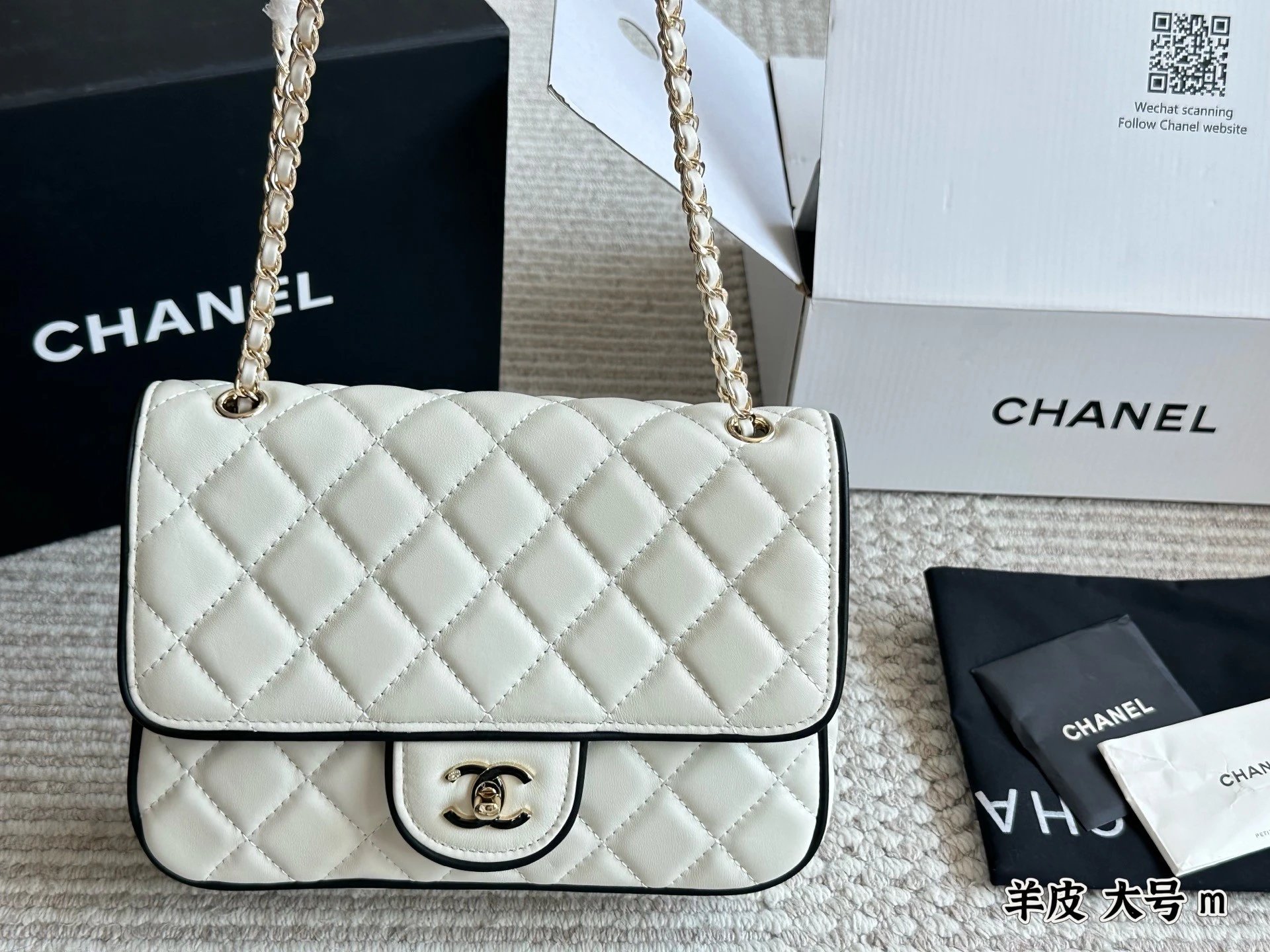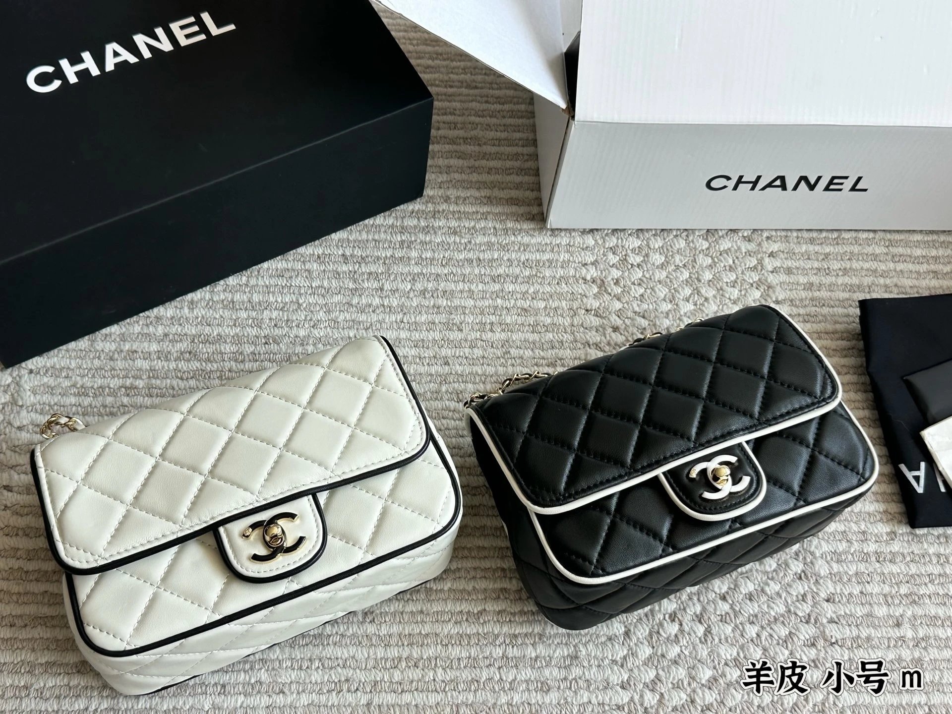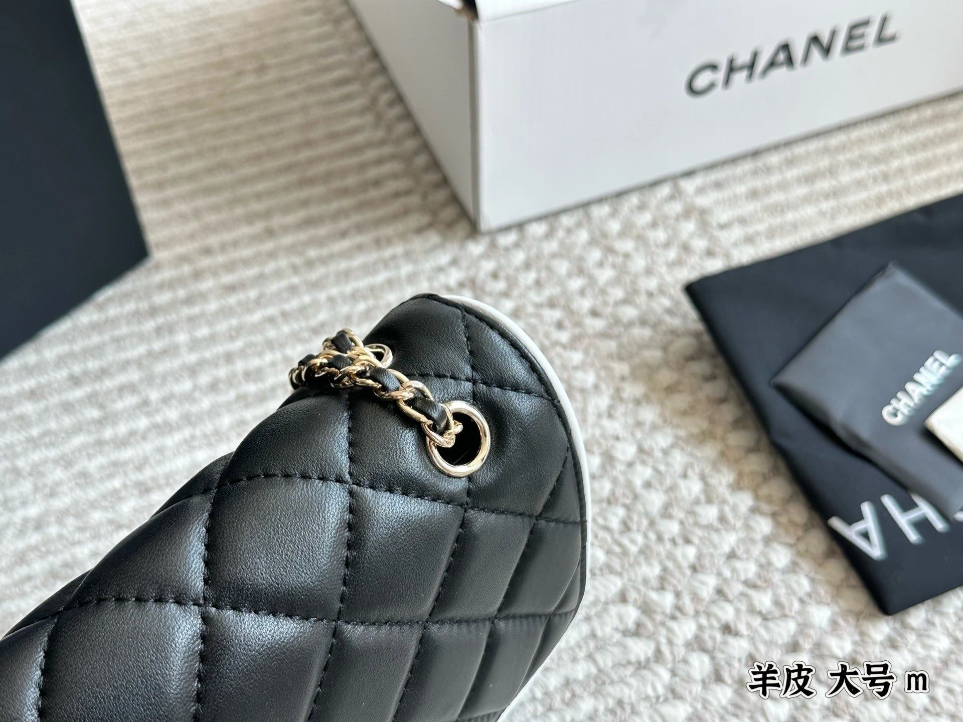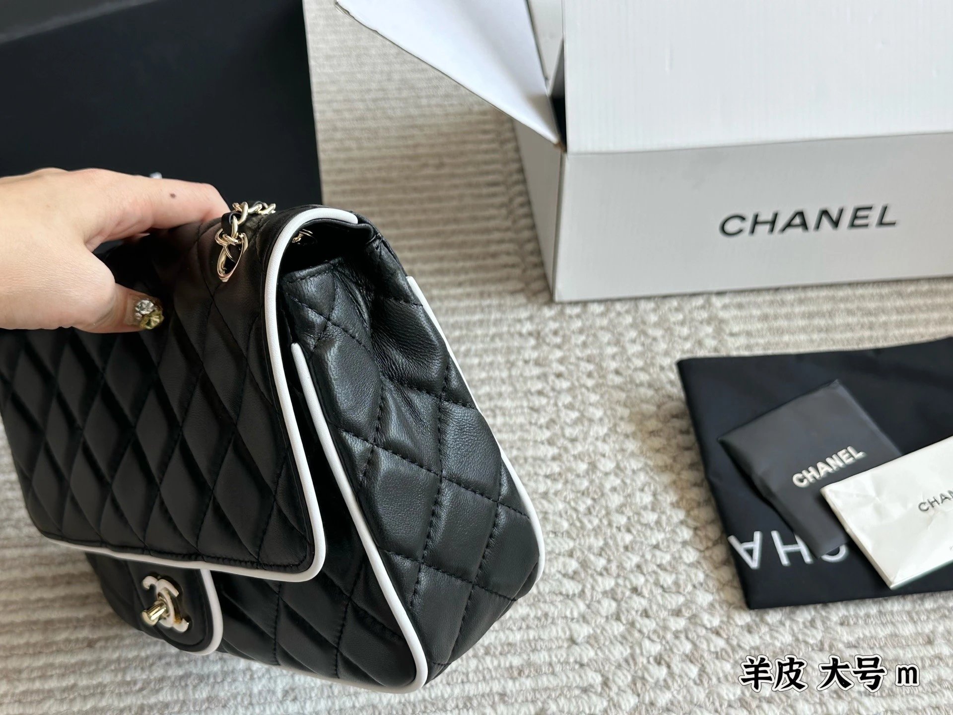 Alpha Home [Original Single Quality] Panda Color Matching Black White Edge Leather Bag Paired Leather Chain Bag Flap Bag Women's Bag Women's Leather Bag Original Hardware