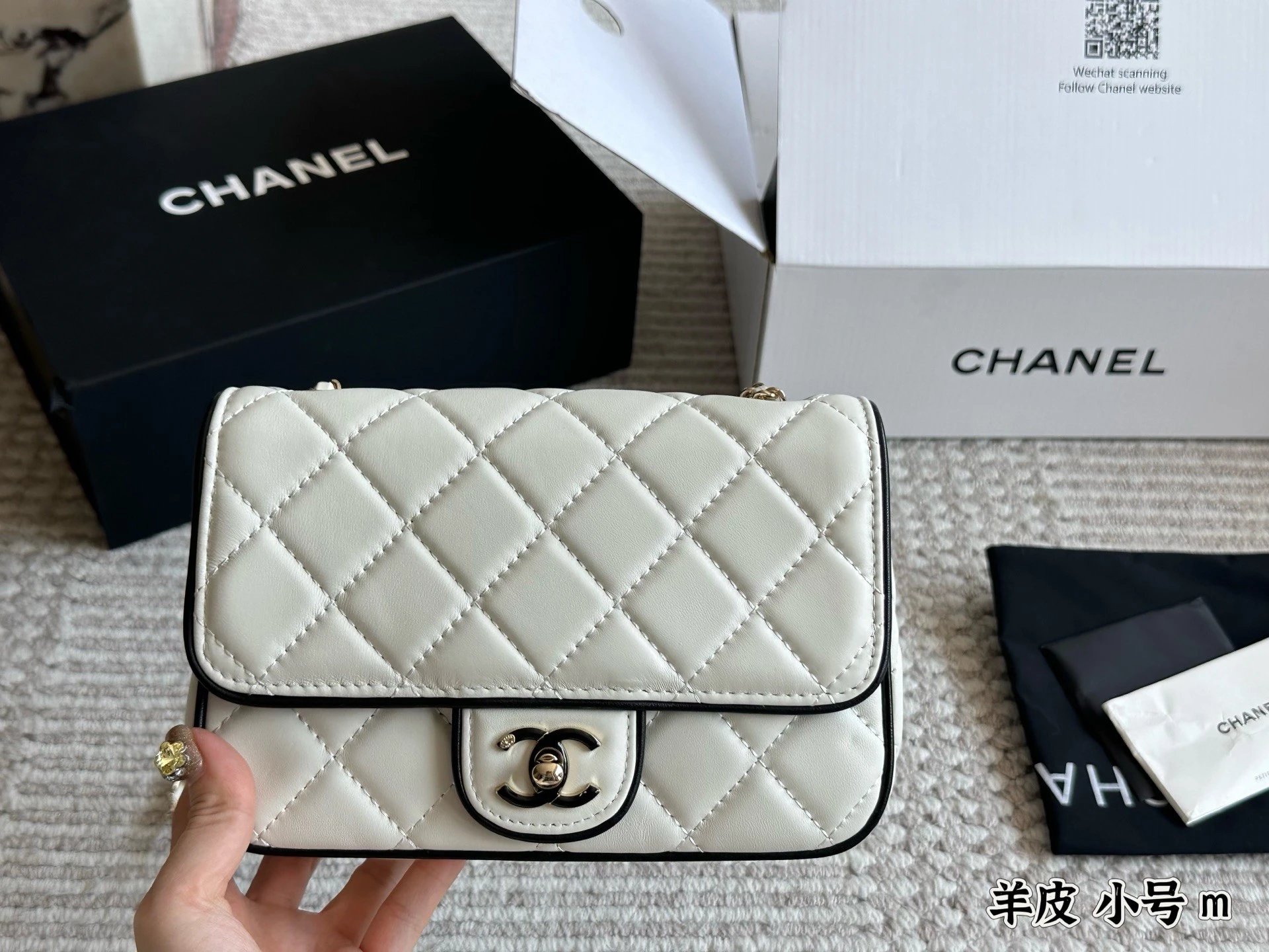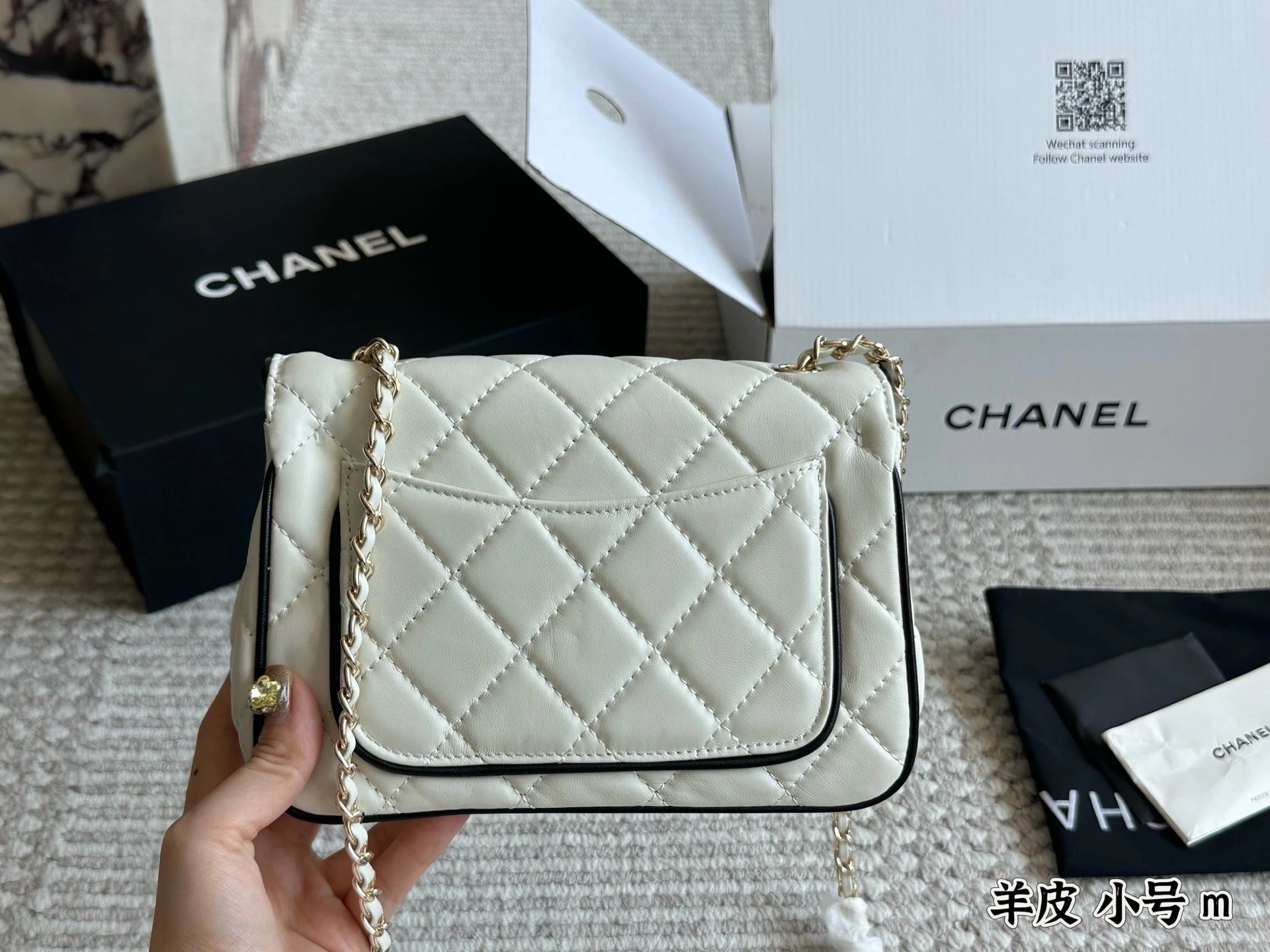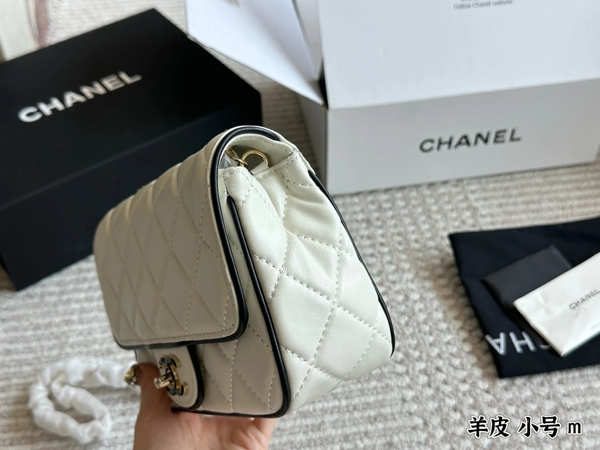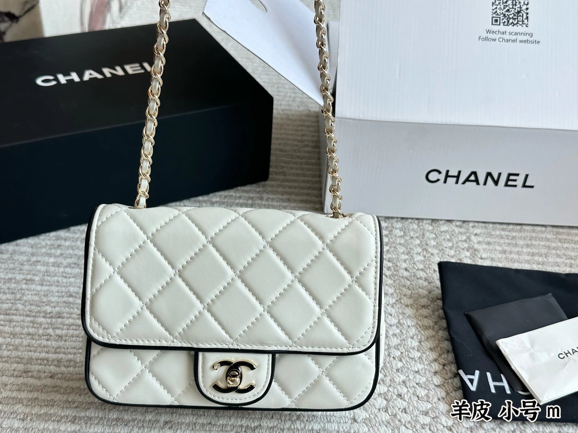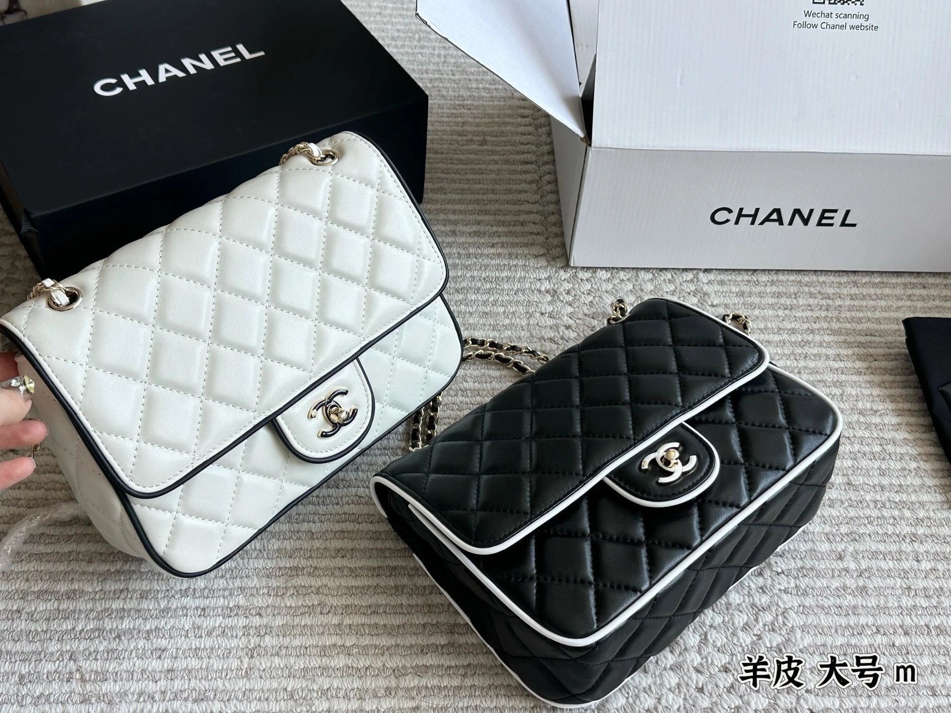 Alpha Home [Original Single Quality] Panda Color Matching Black White Edge Leather Bag Paired Leather Chain Bag Flap Bag Women's Bag Women's Leather Bag Original Hardware