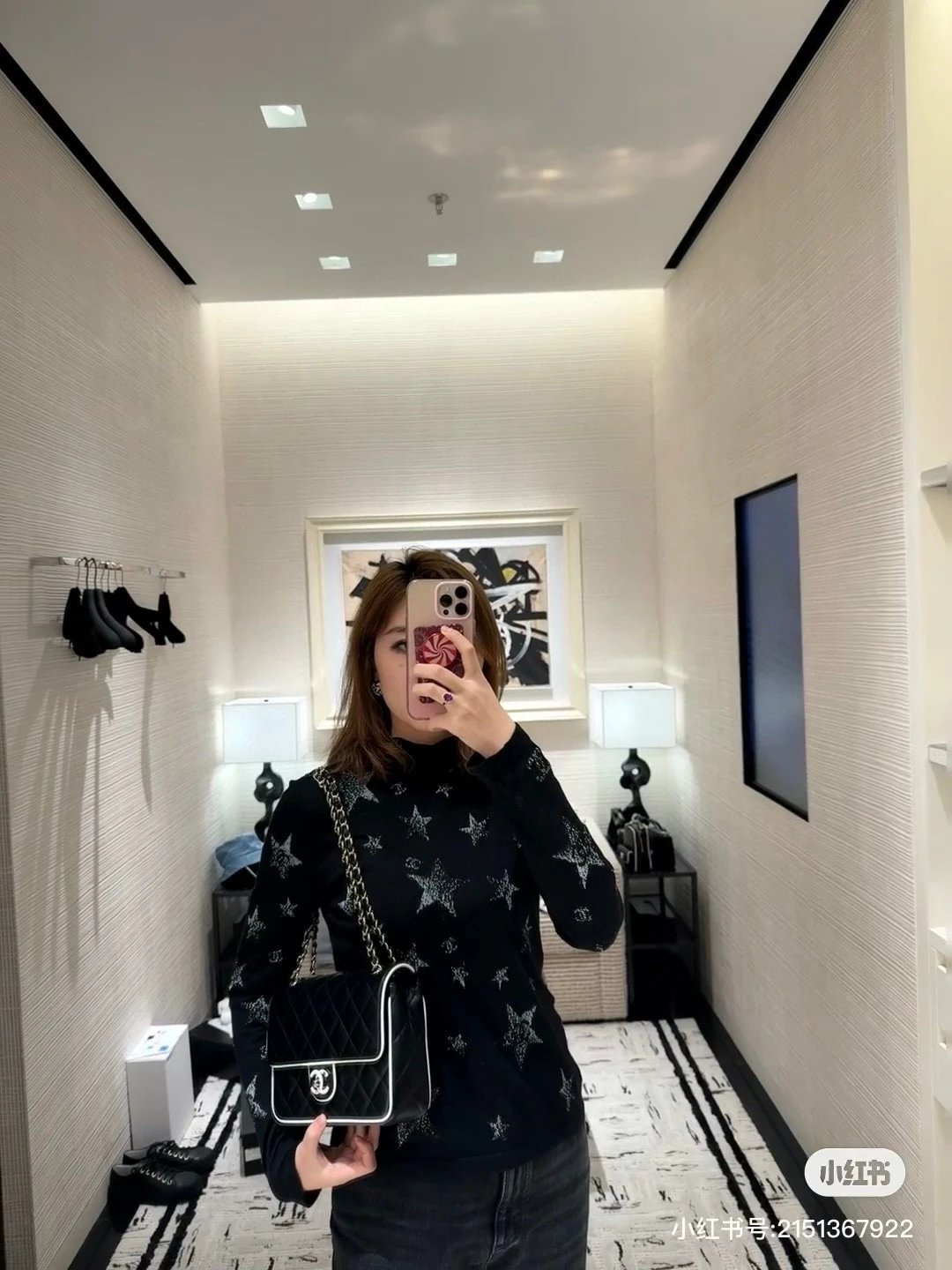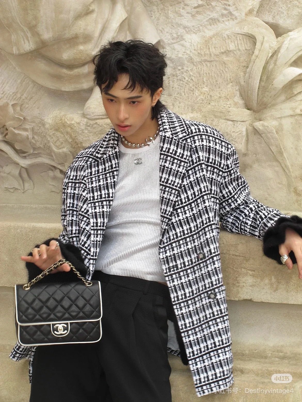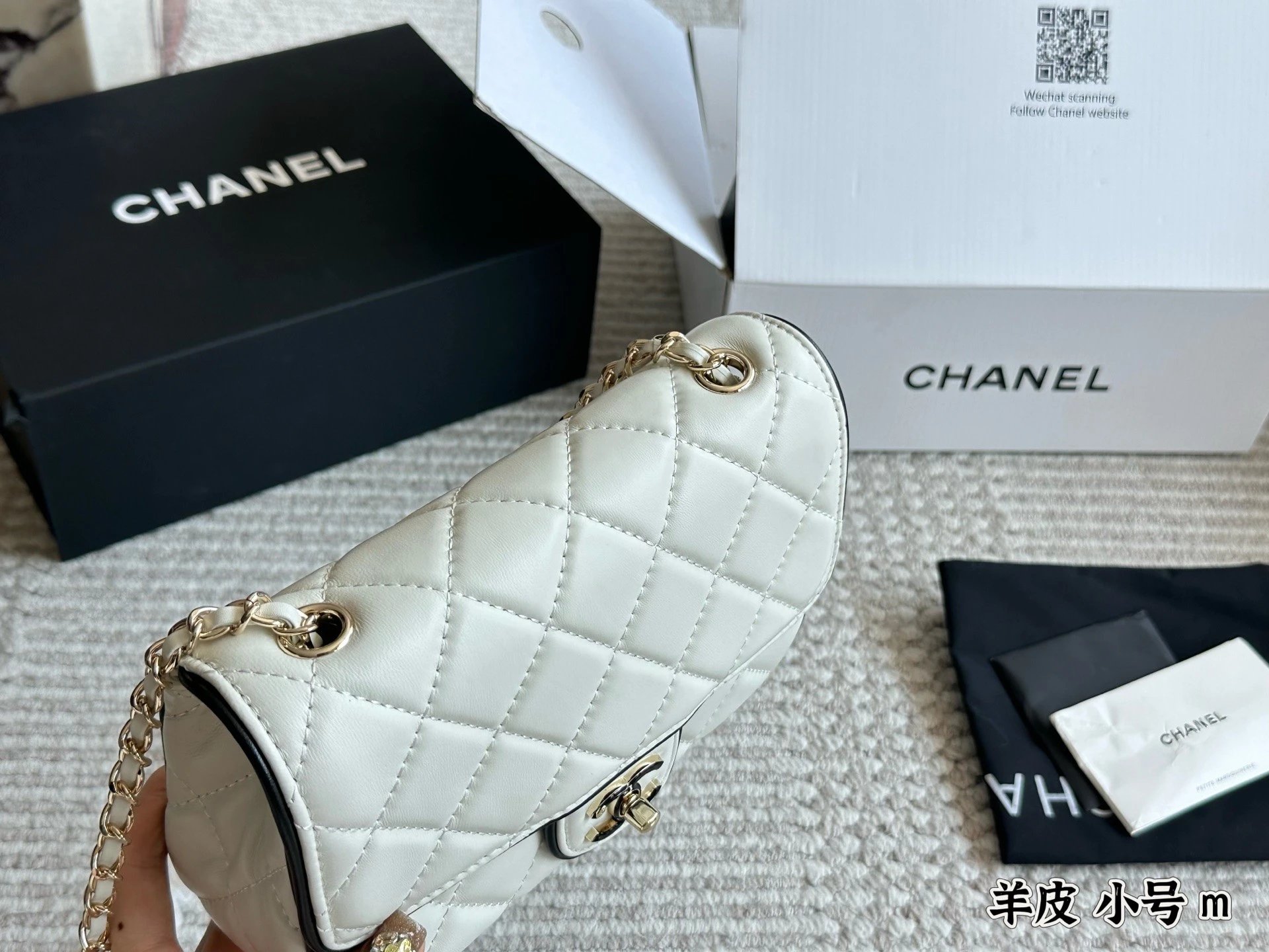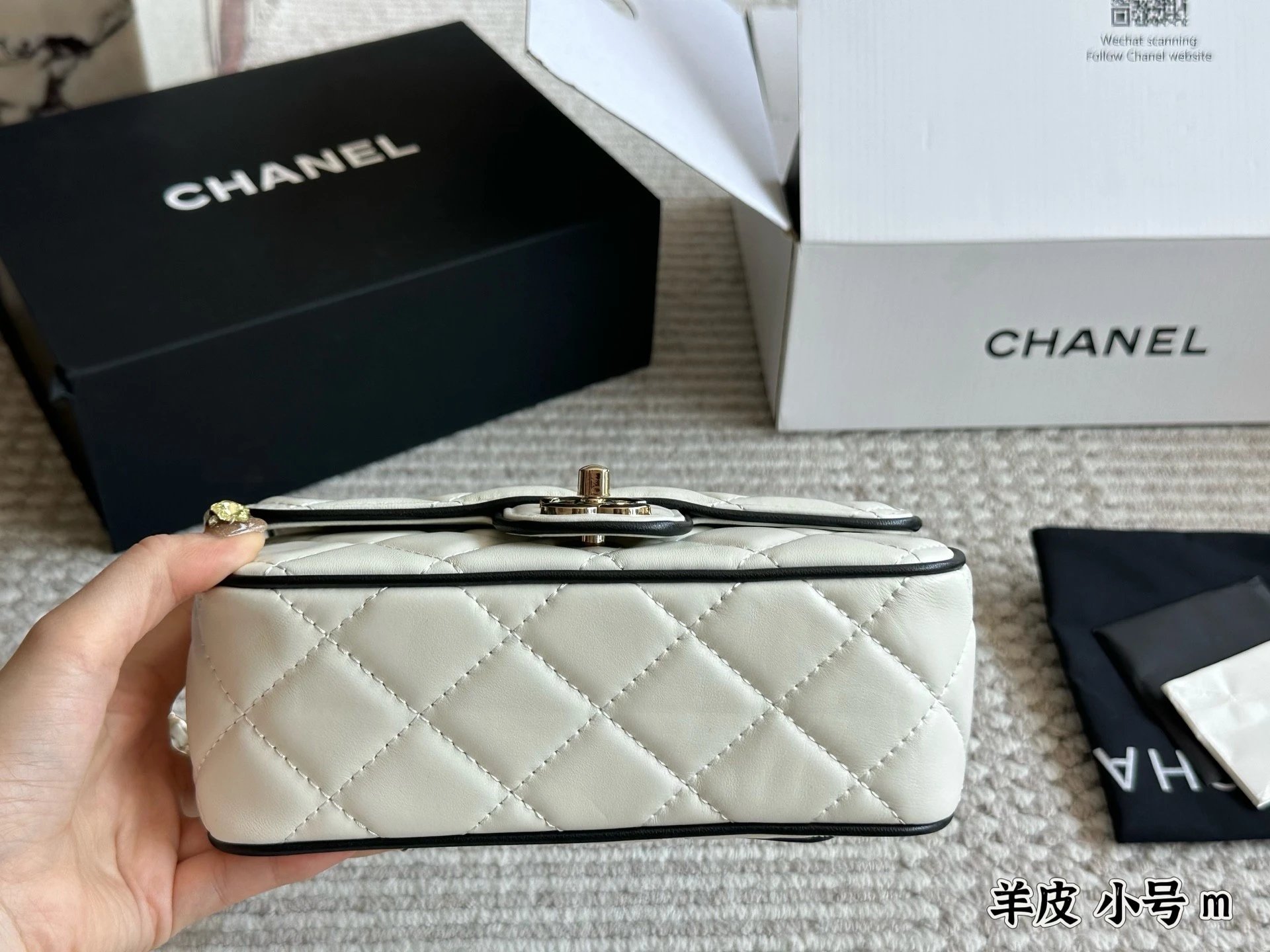 Alpha Home [Original Single Quality] Panda Color Matching Black White Edge Leather Bag Paired Leather Chain Bag Flap Bag Women's Bag Women's Leather Bag Original Hardware
