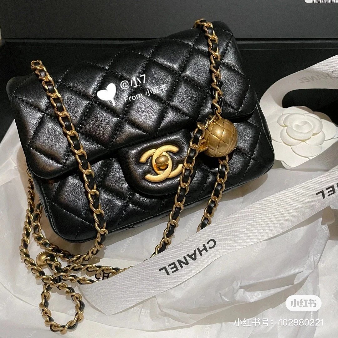 Alpha Home [Original Single Quality] Lambskin Big Golden Ball Bag Original Single Sheepskin Handbag Crossbody Bag The Most Beautiful Golden Ball Square Shoulder Bag Crossbody Bag