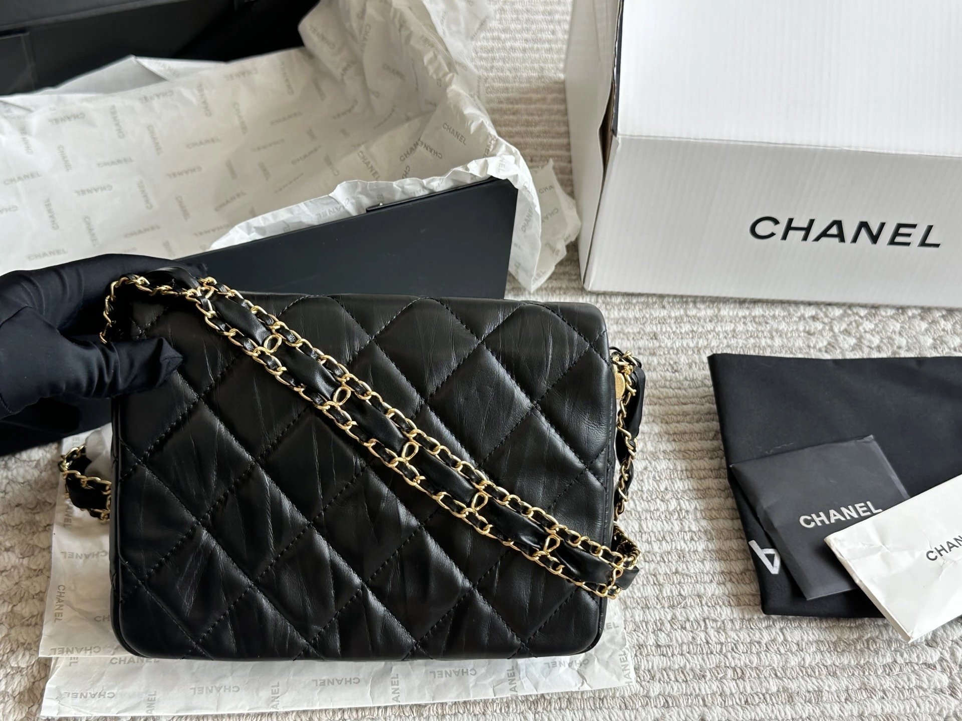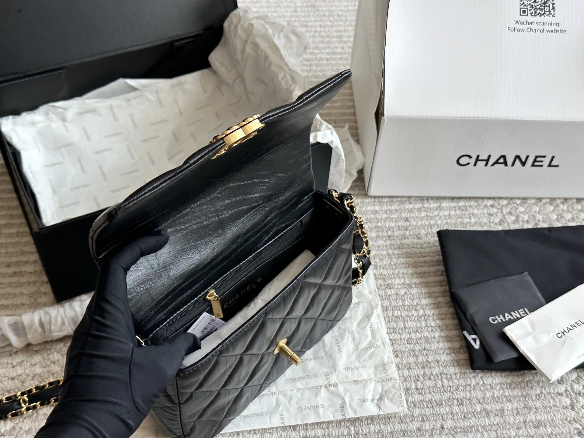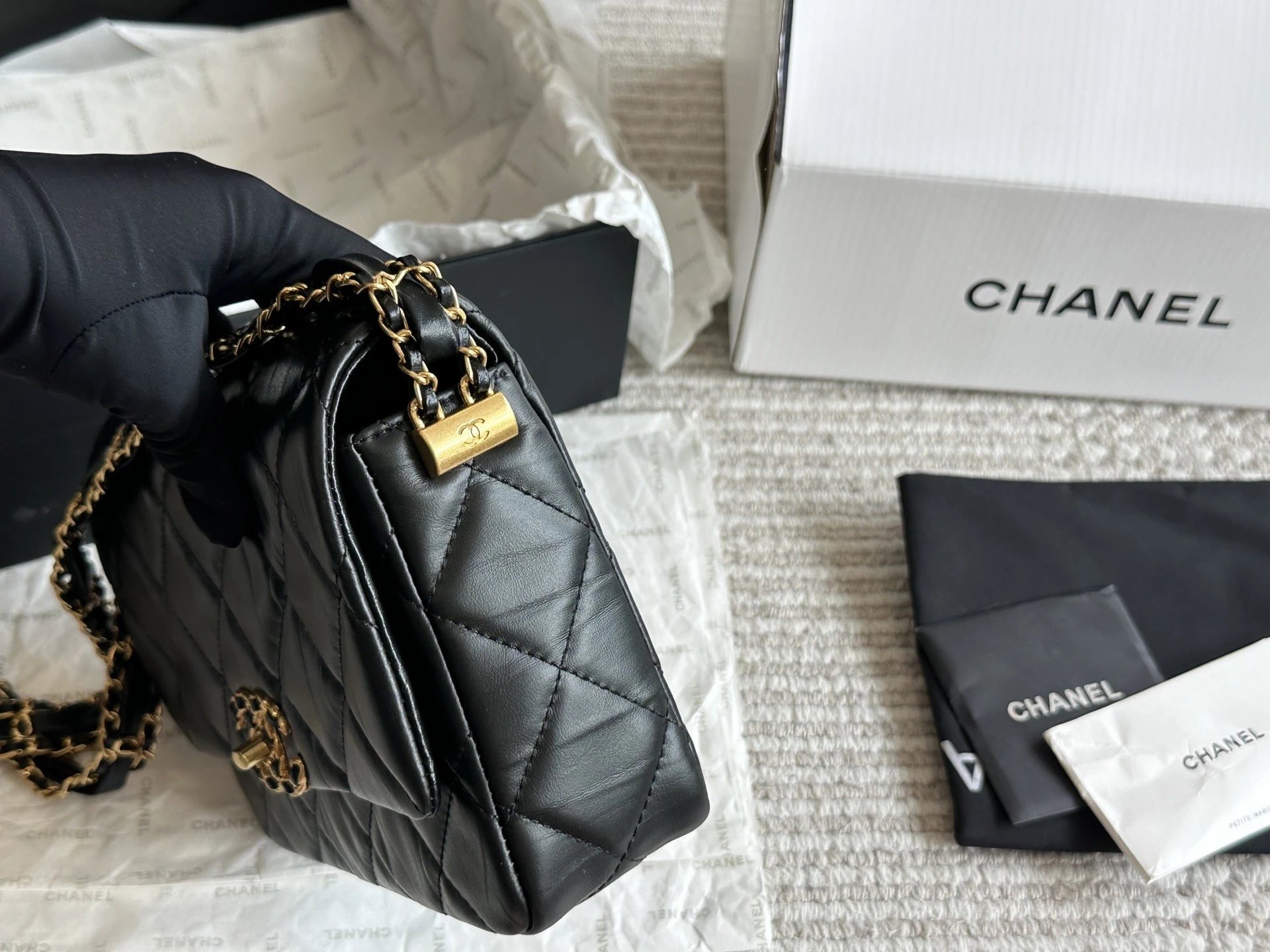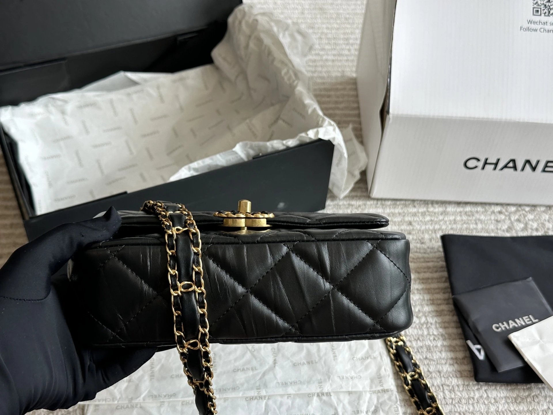 Alpha Home [Original Single Quality] Home 23k Thick Chain Square Fixed Shoulder Strap Crossbody Bag Pleated Original Leather Cowhide Heavy Gold Original Hardware Classic Flap
