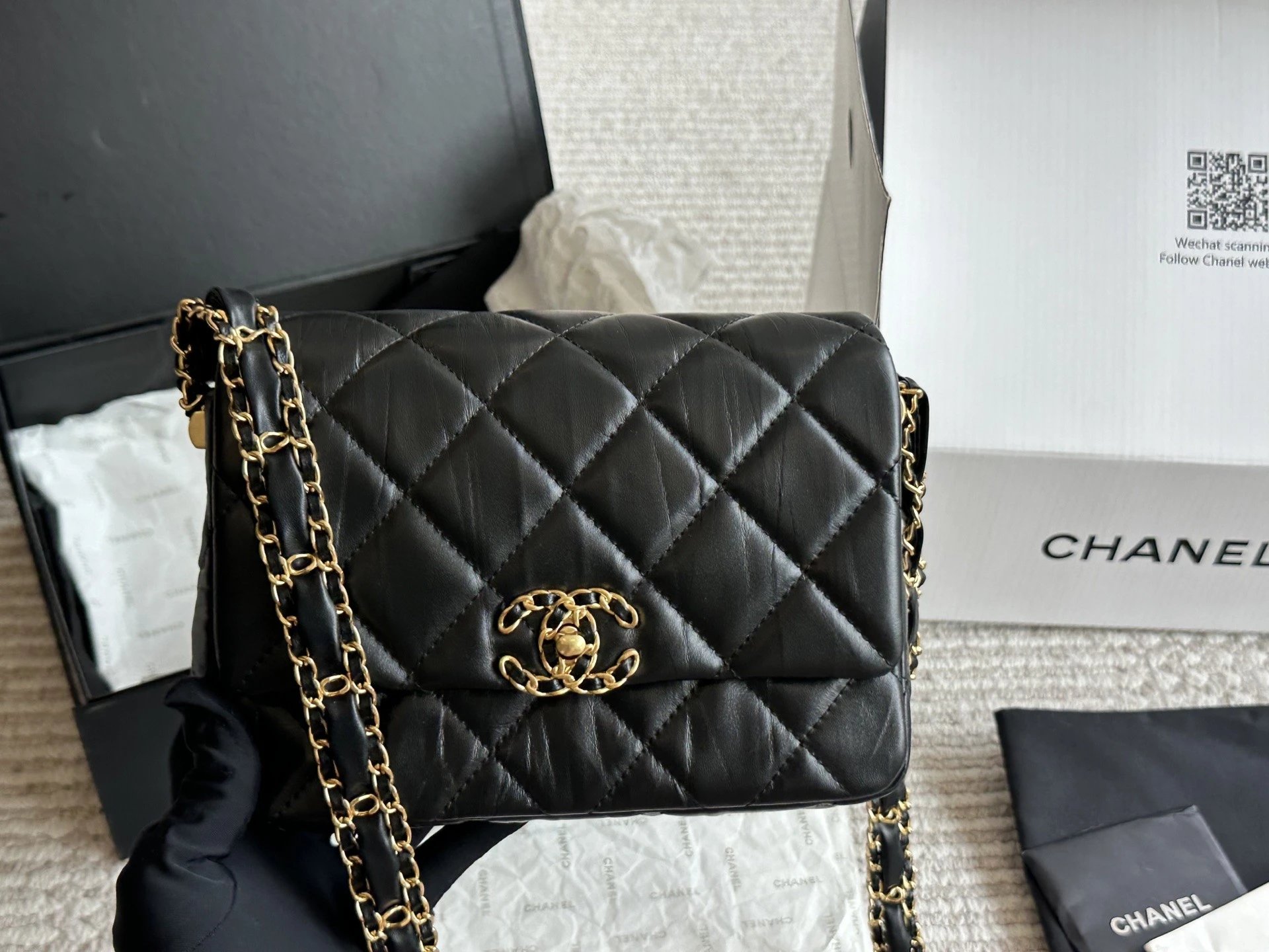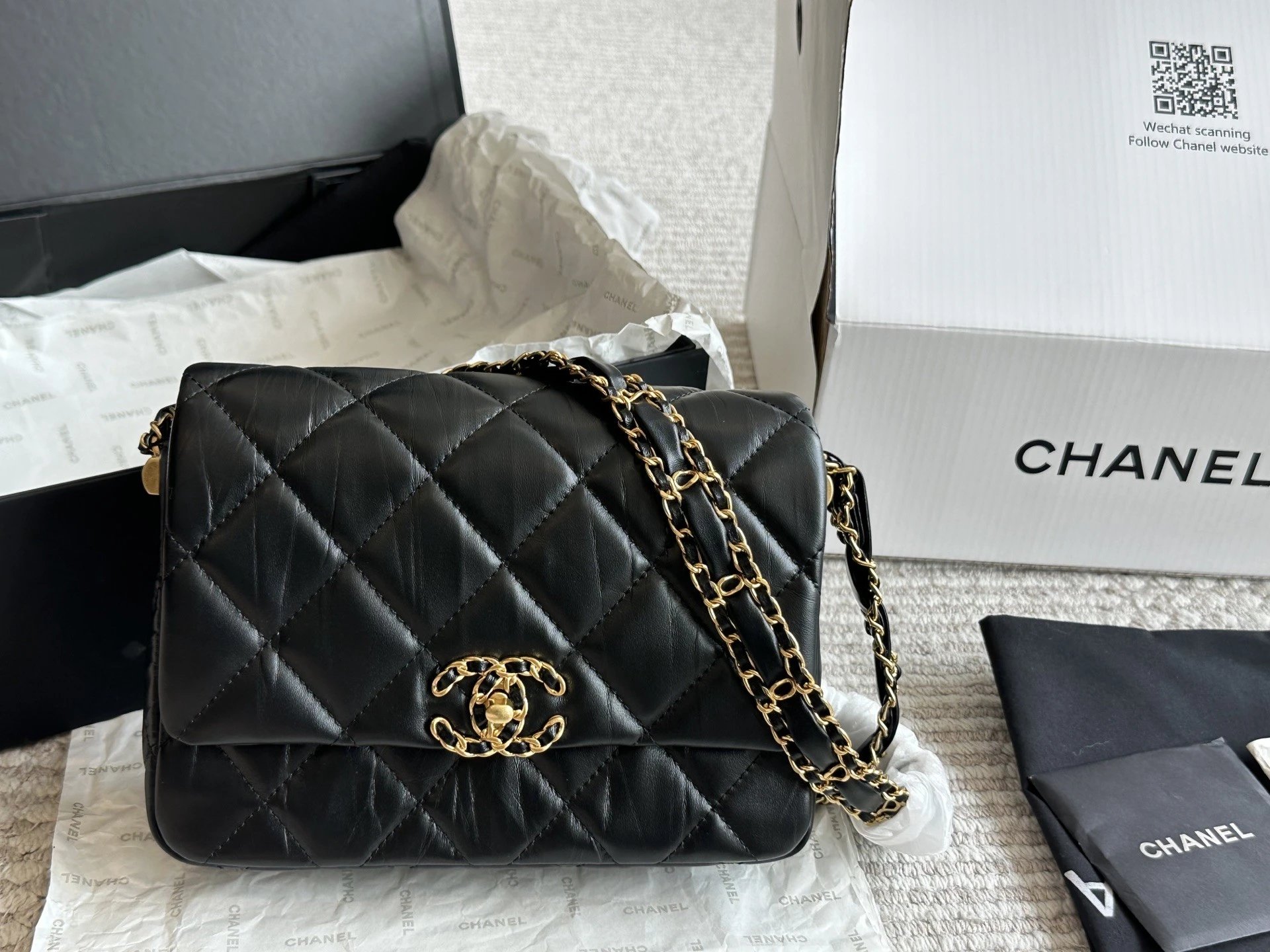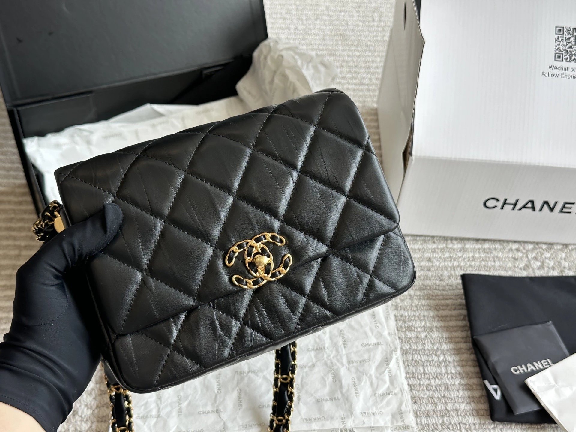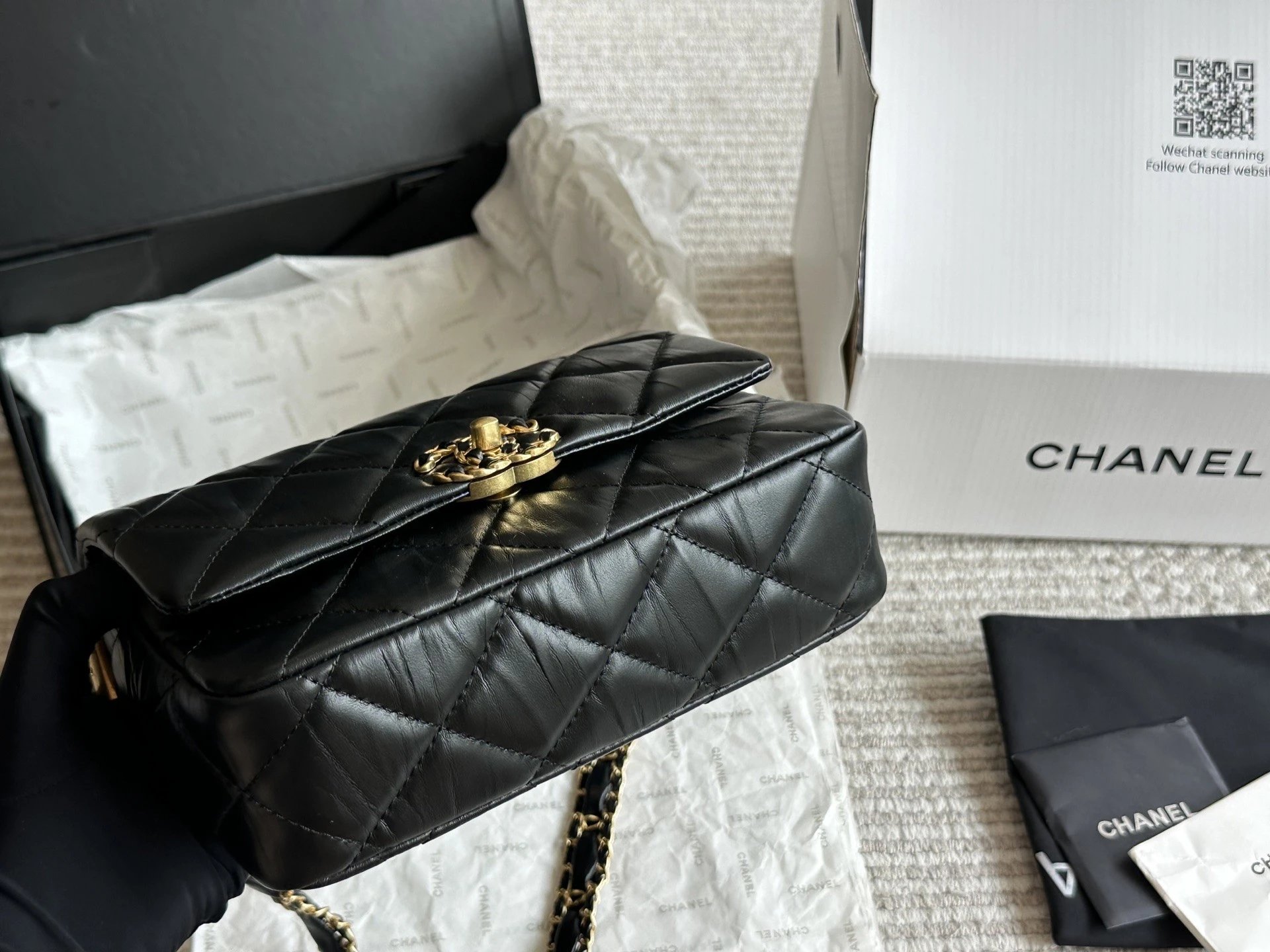 Alpha Home [Original Single Quality] Home 23k Thick Chain Square Fixed Shoulder Strap Crossbody Bag Pleated Original Leather Cowhide Heavy Gold Original Hardware Classic Flap