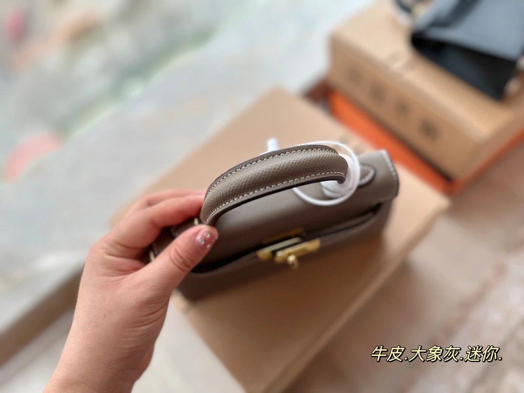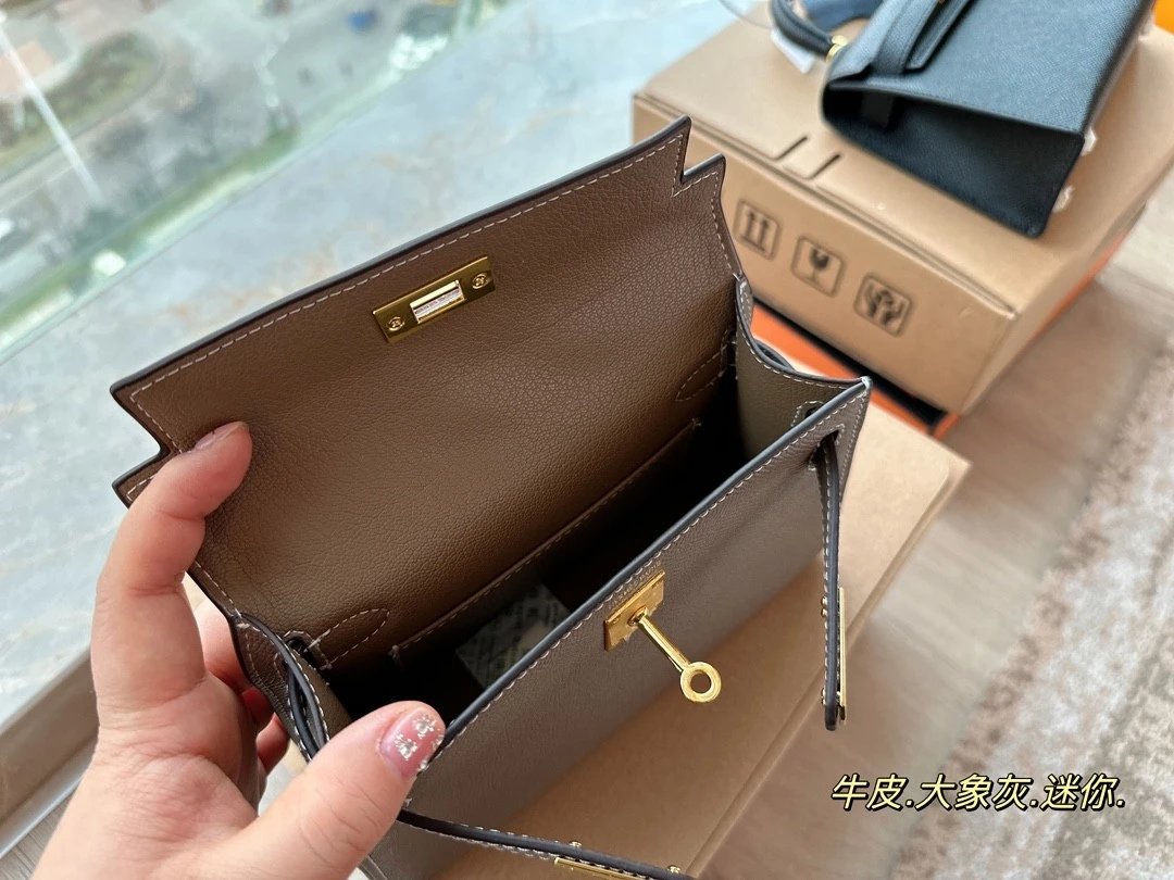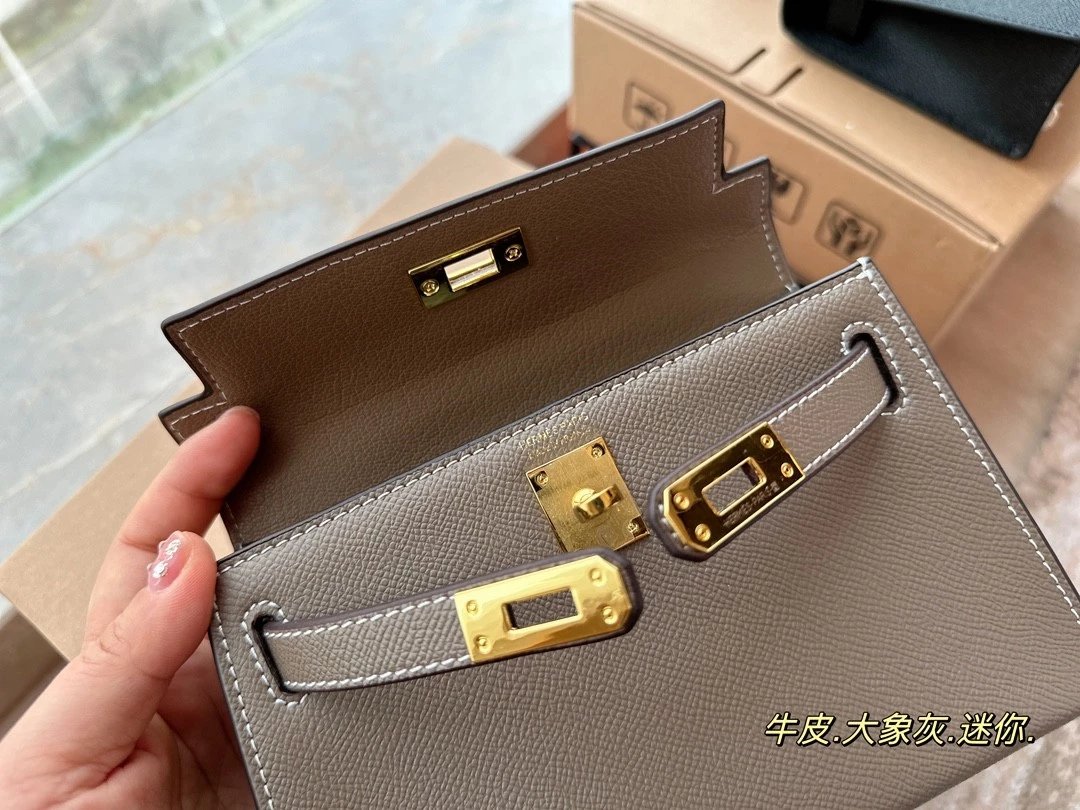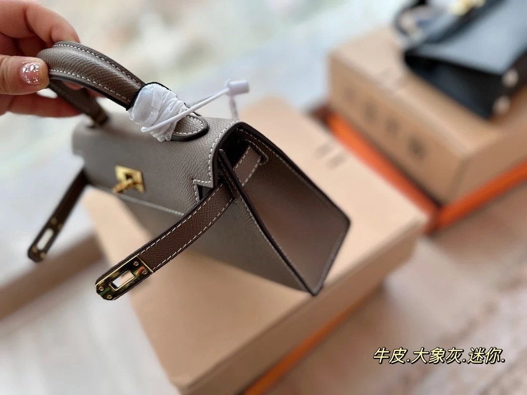 Alpha [**original order] H*rm*s mini Kelly II cowhide crossbody shoulder bag elephant gray brown etc. leather (H family gift box packaging)
