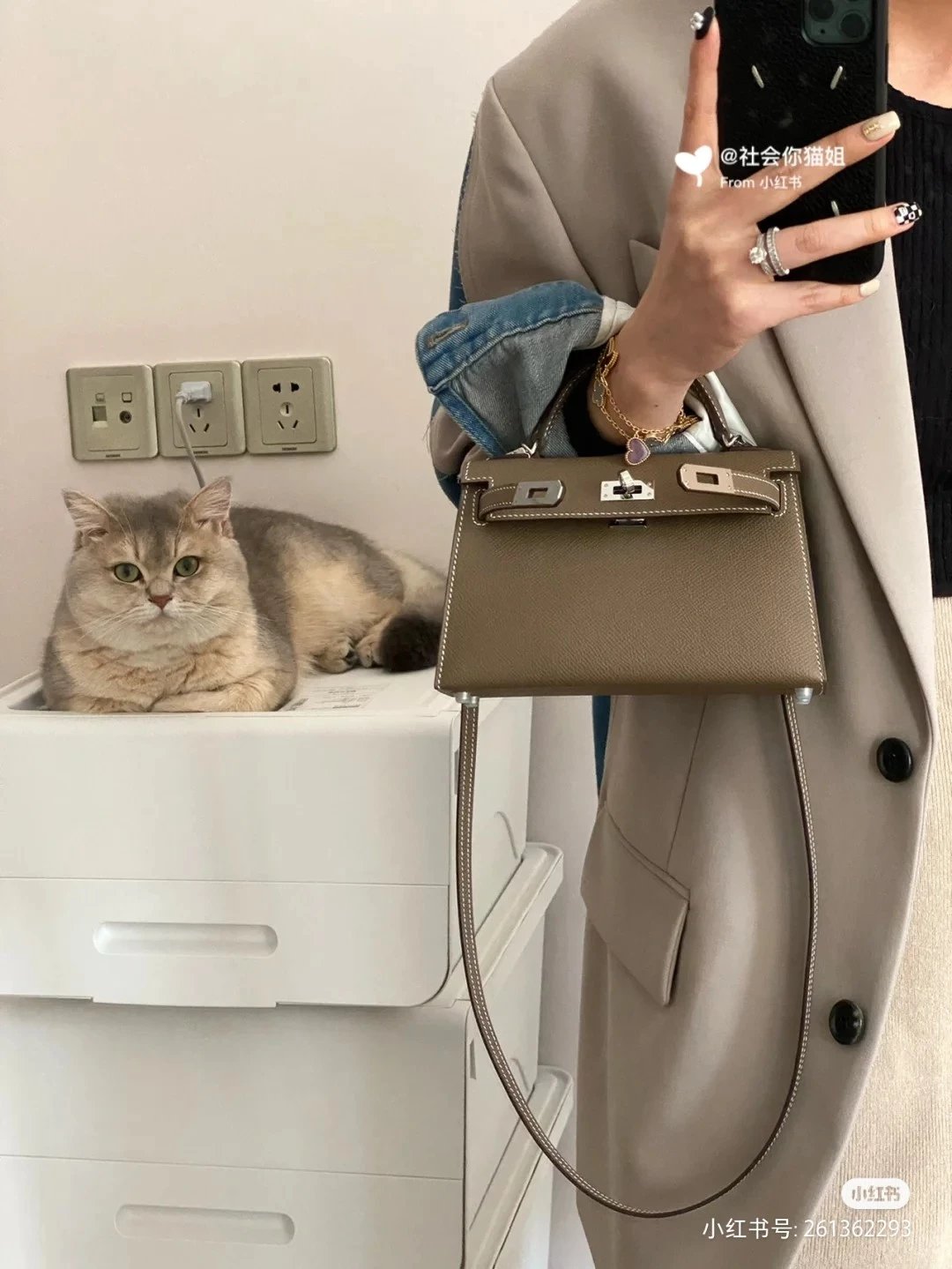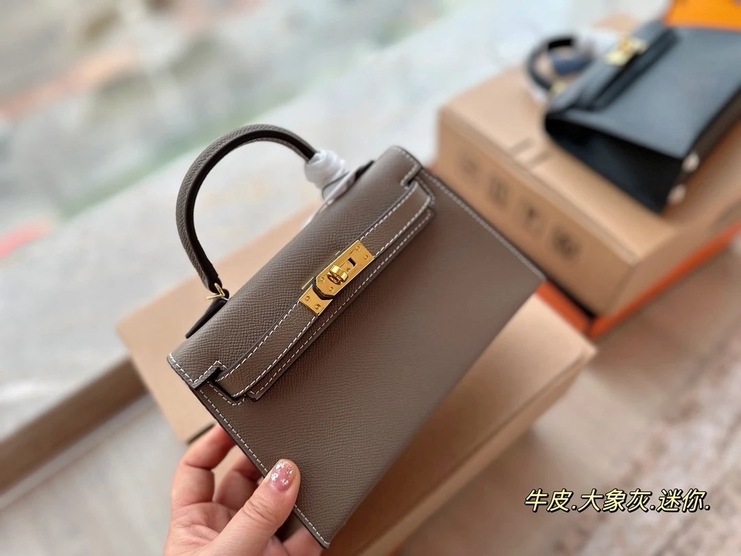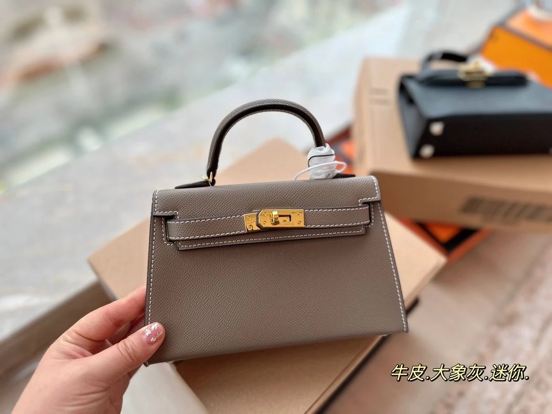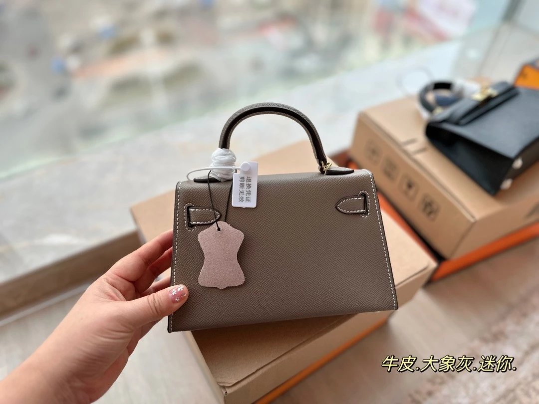 Alpha [**original order] H*rm*s mini Kelly II cowhide crossbody shoulder bag elephant gray brown etc. leather (H family gift box packaging)