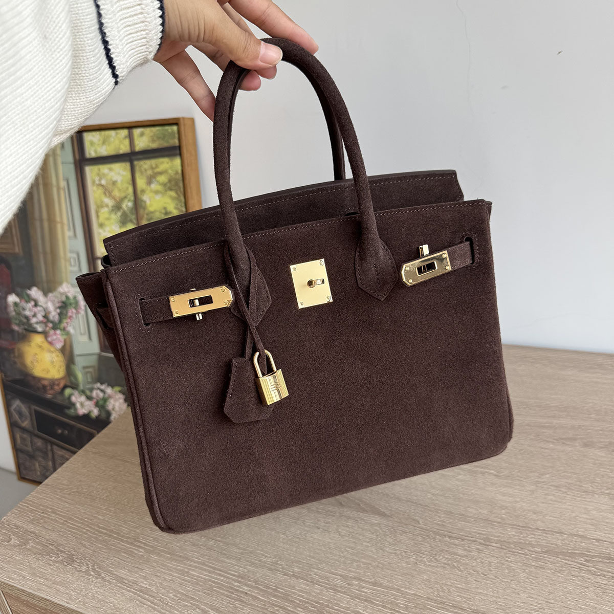Autumn and winter new suede spell togo leather platinum bag leather nubuck leather handbag top layer cowhide fashion women's bag soft