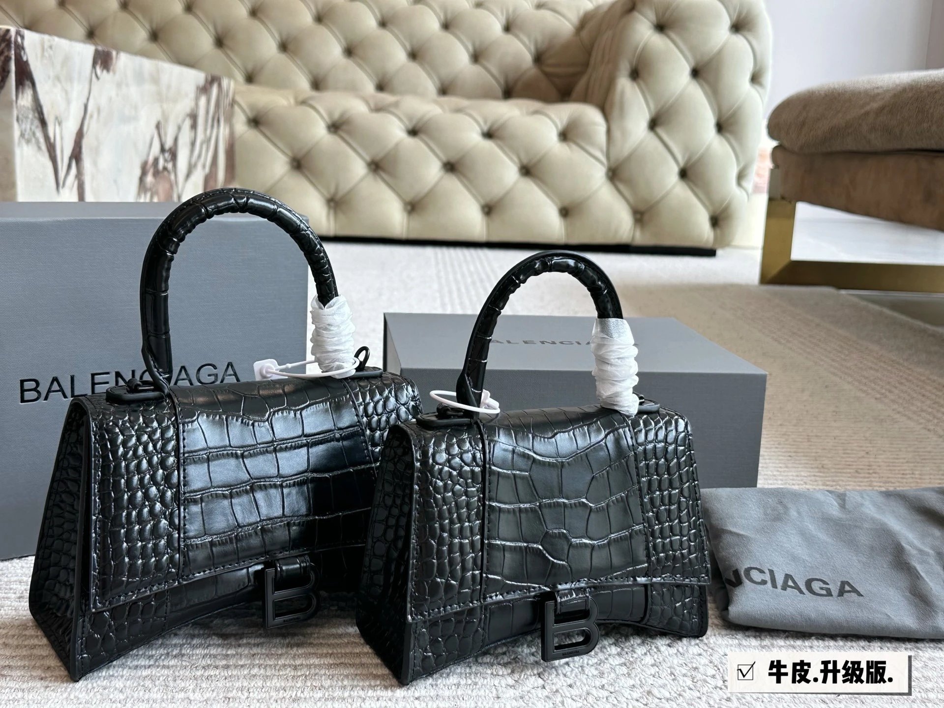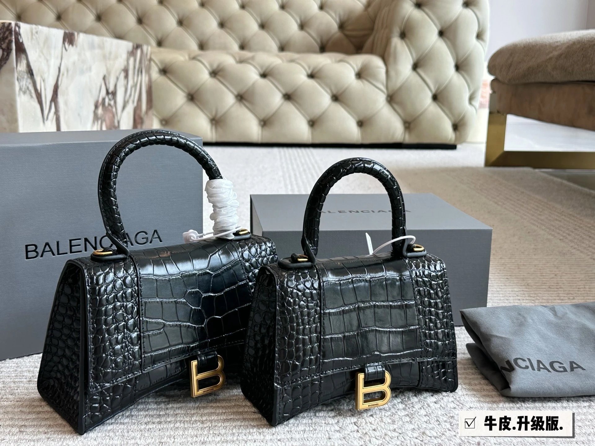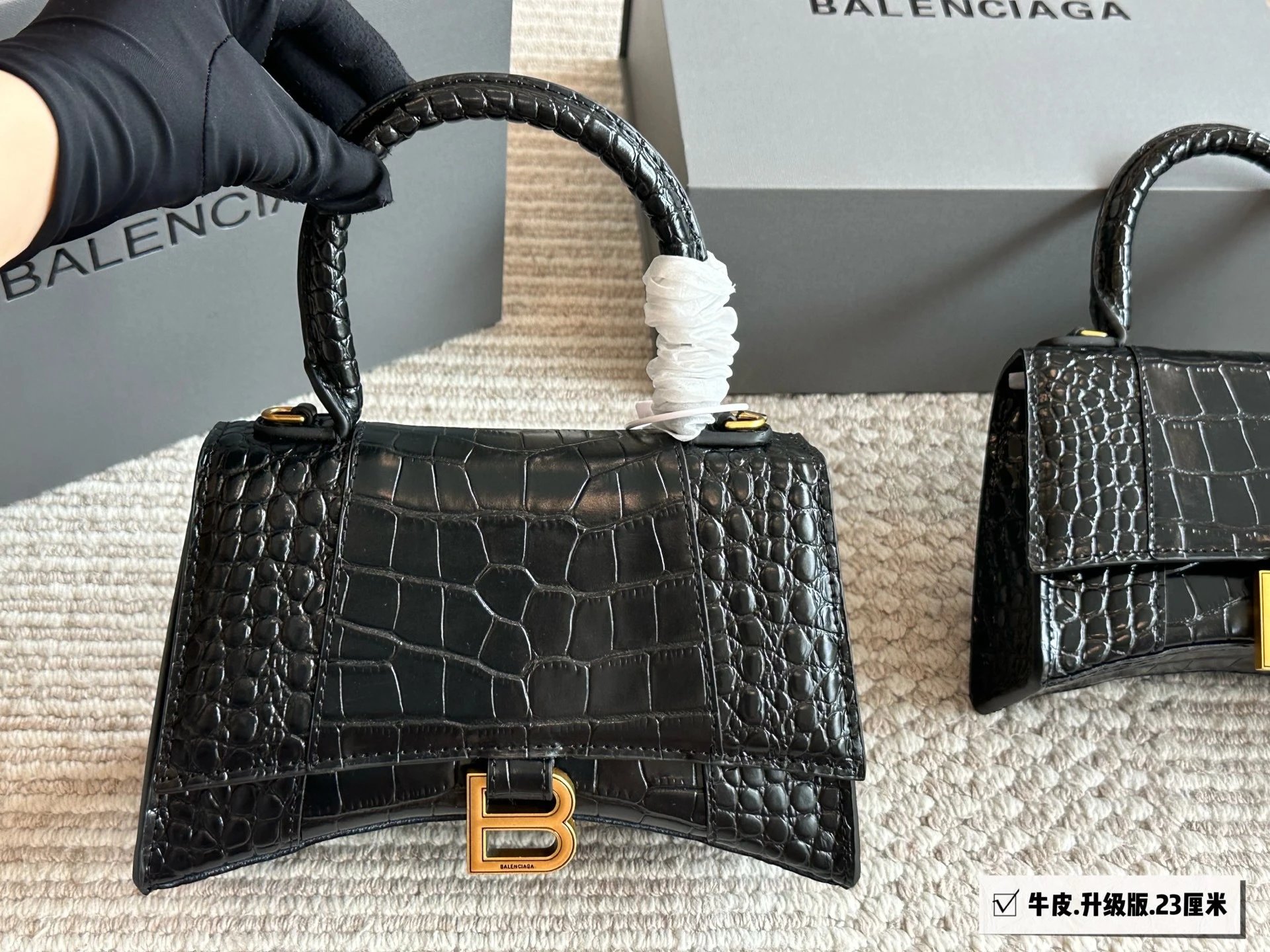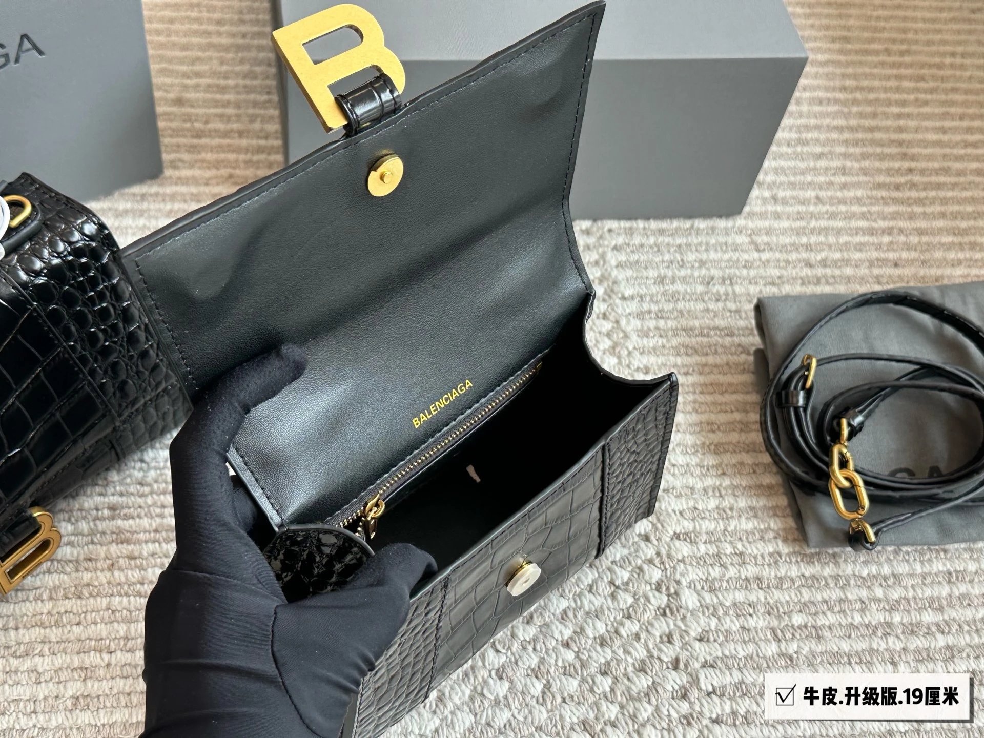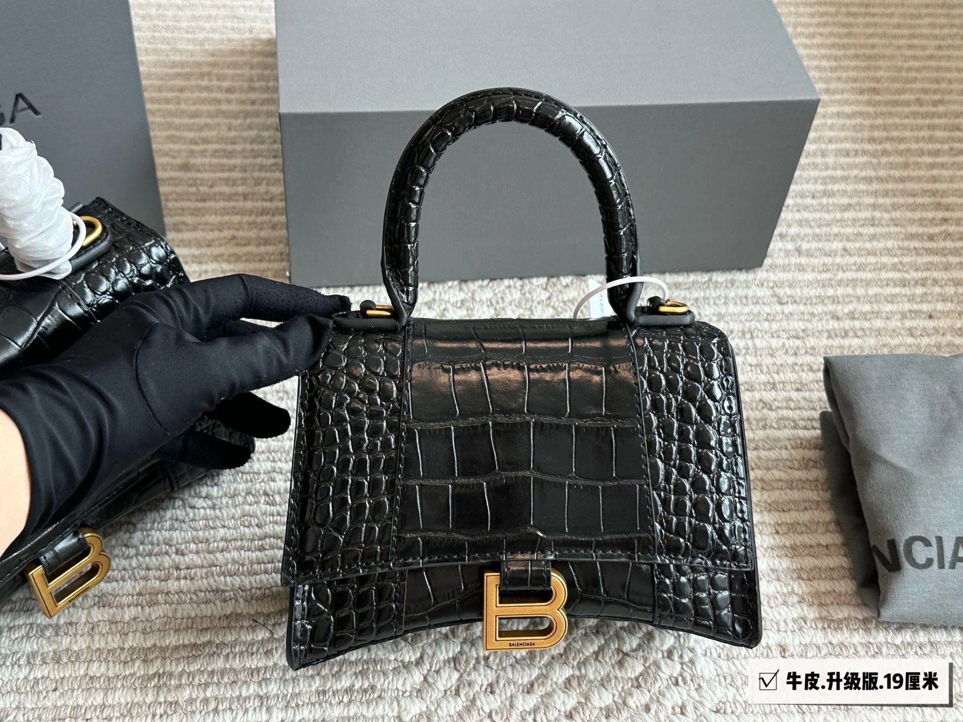 B family hourglass bag hourglass bag Balenciaga hourglass bag Balenciaga handbag Lisa top layer pure cowhide shoulder bag crocodile leather embossed crossbody bag black gold **hardware gravure logo full set of gift box