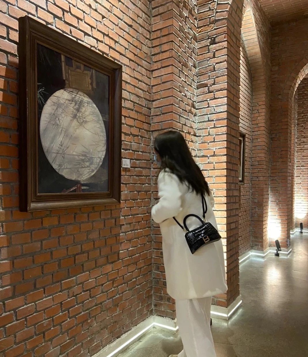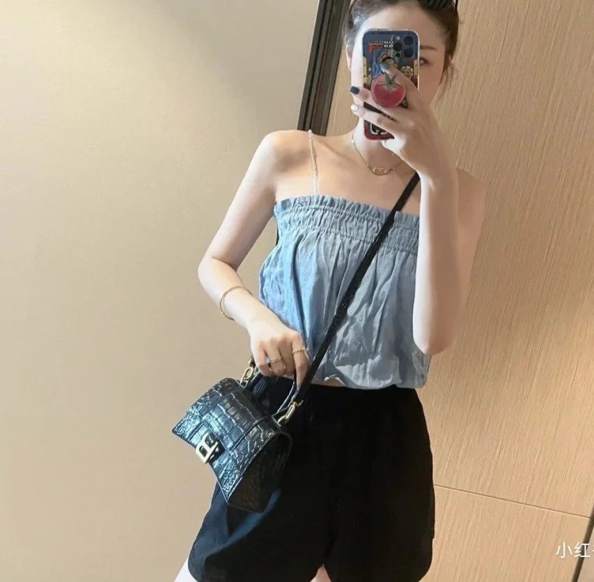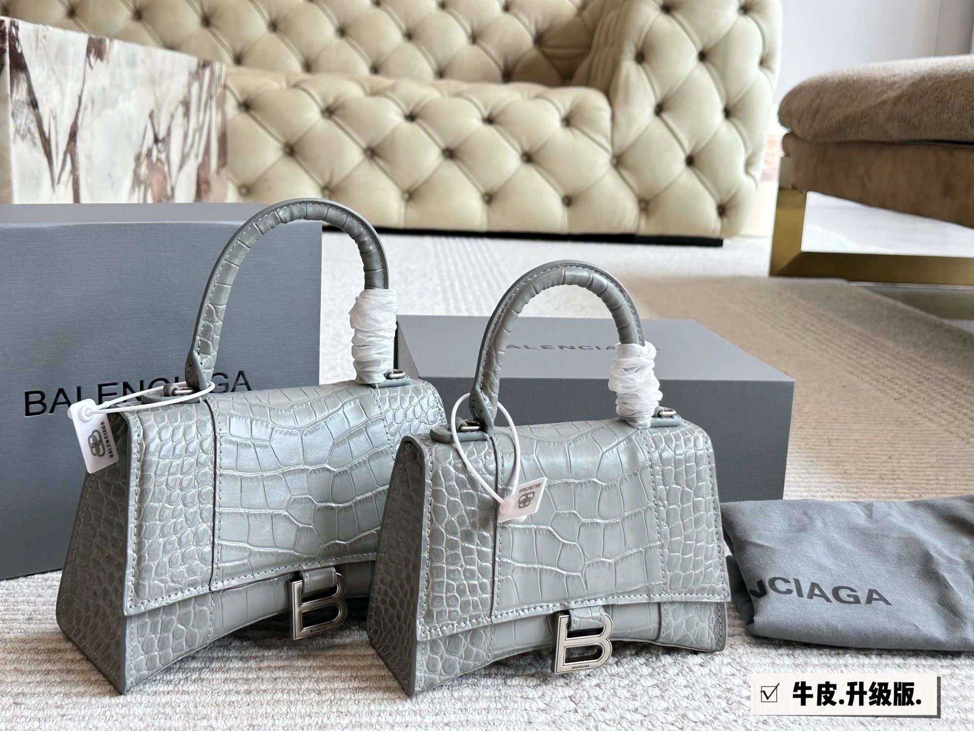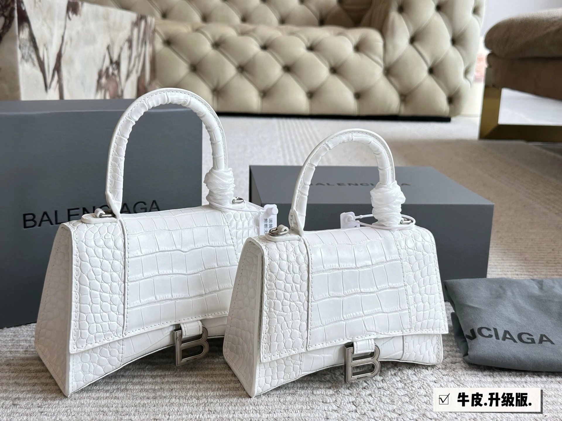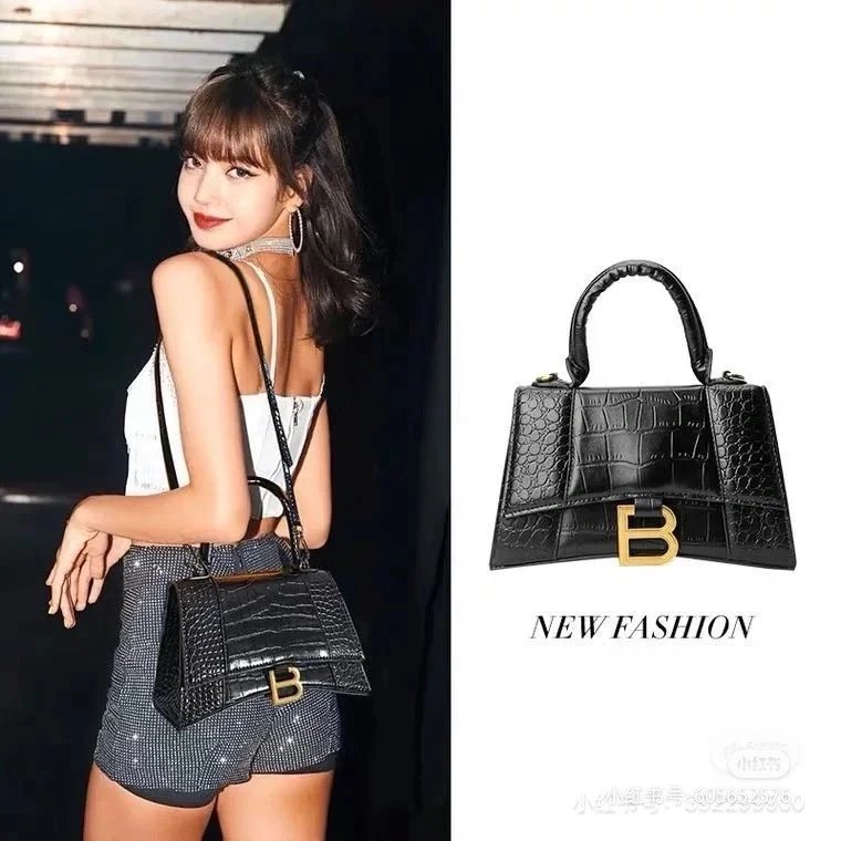 B family hourglass bag hourglass bag Balenciaga hourglass bag Balenciaga handbag Lisa top layer pure cowhide shoulder bag crocodile leather embossed crossbody bag black gold **hardware gravure logo full set of gift box