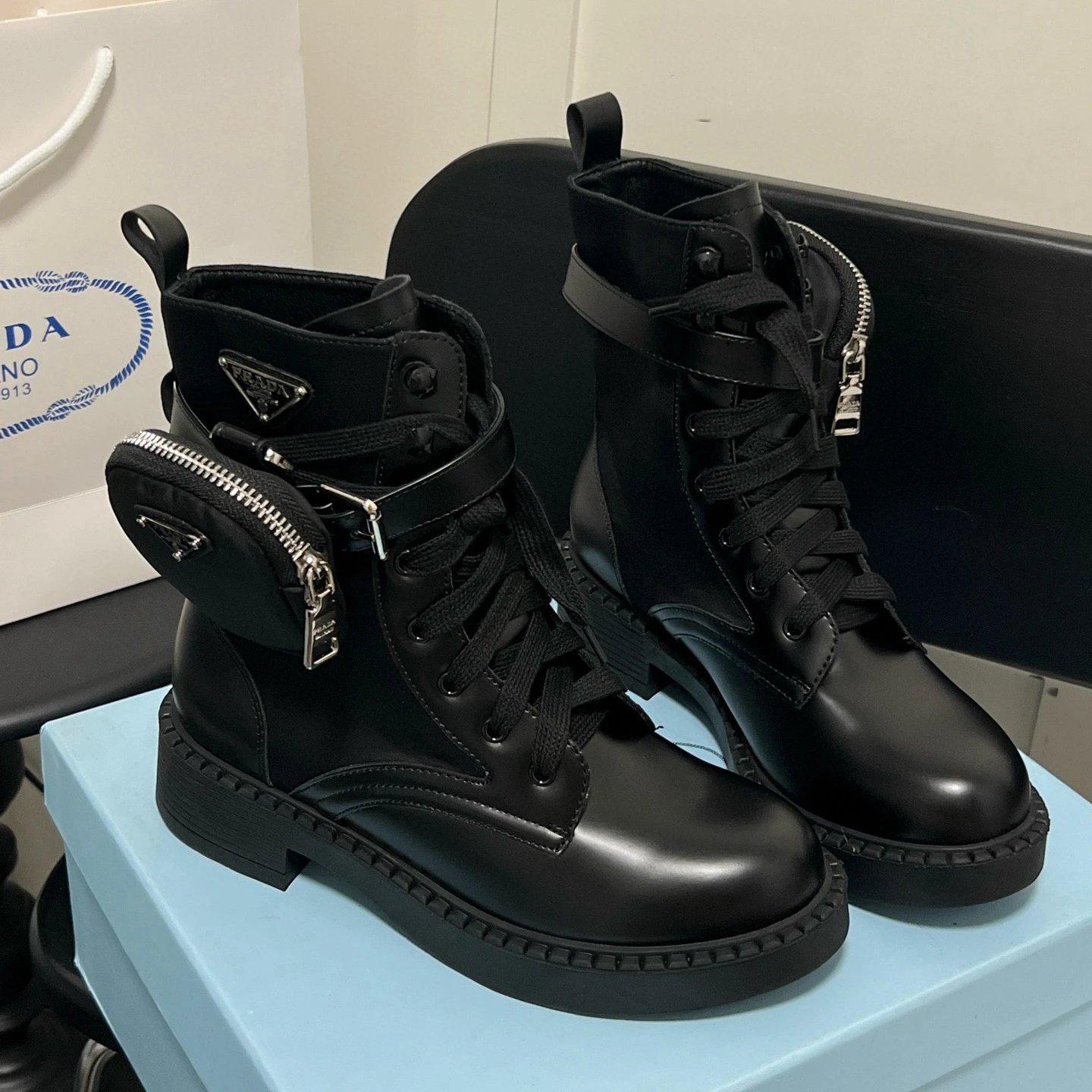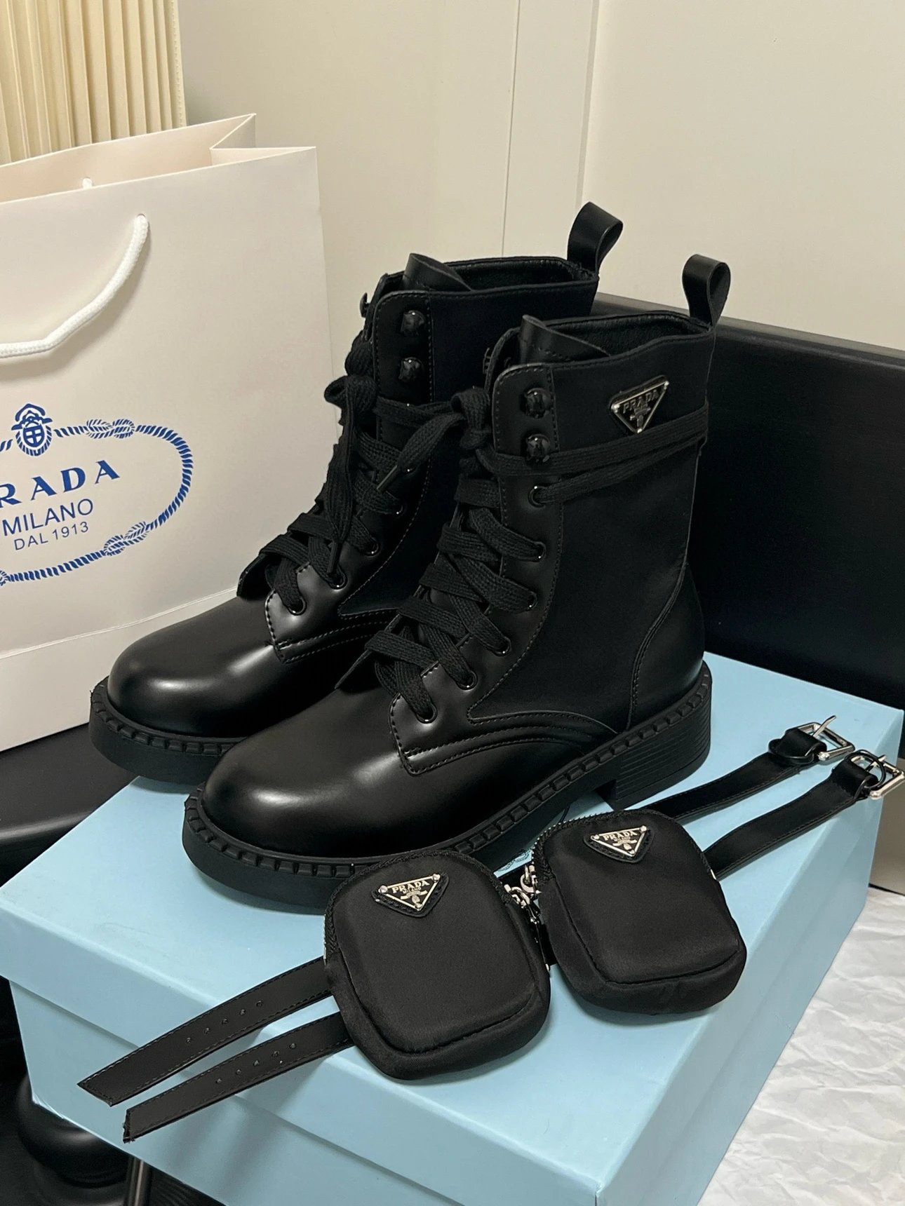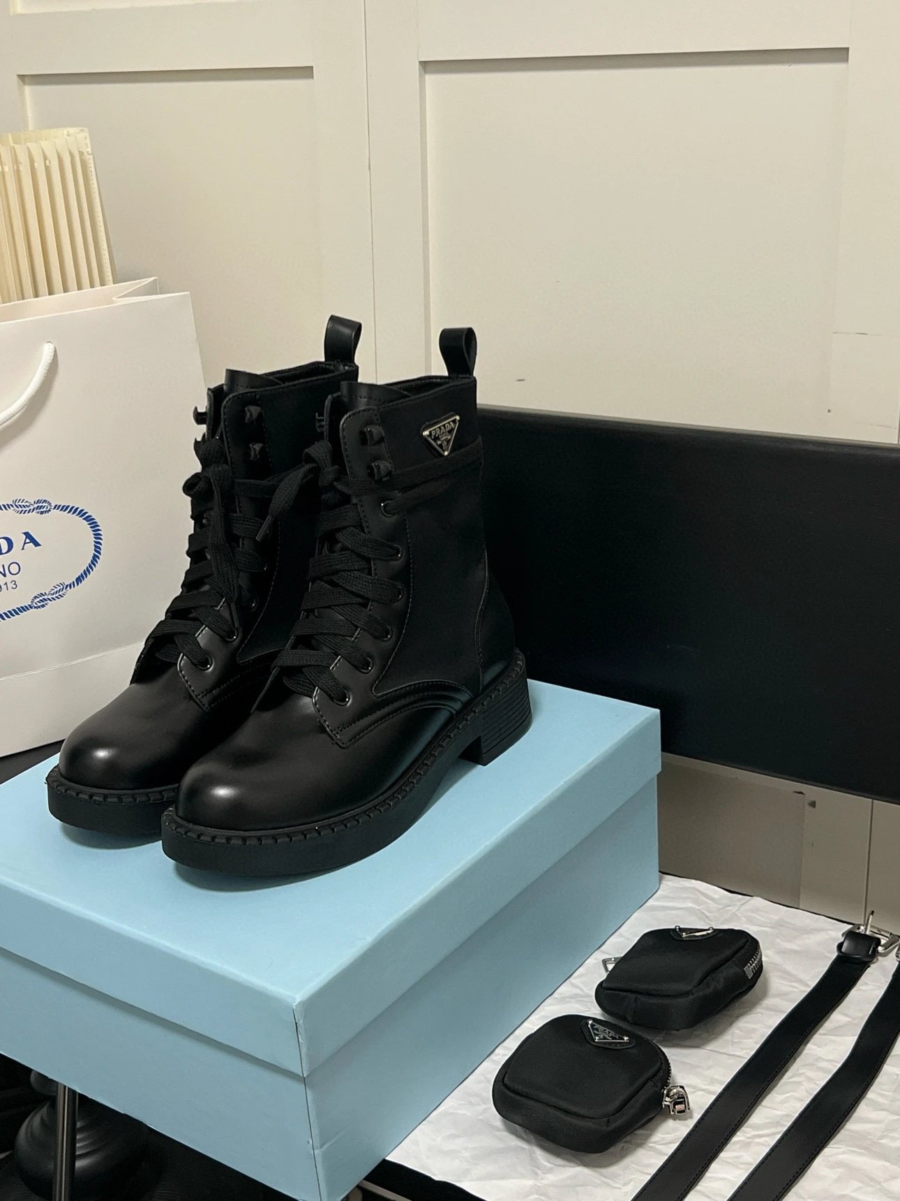 Fall and winter new P family patent leather boots Chelsea boots round toe lace-up Martin boots