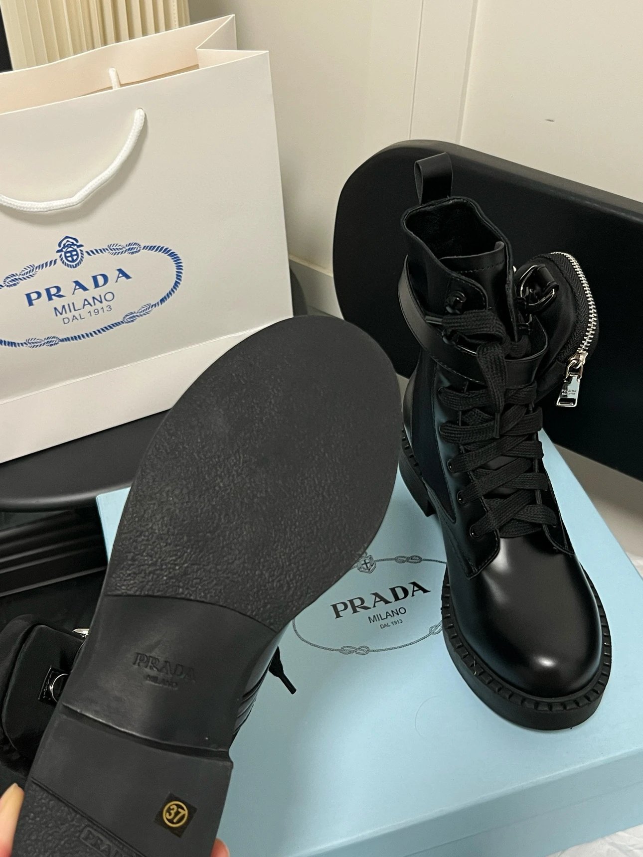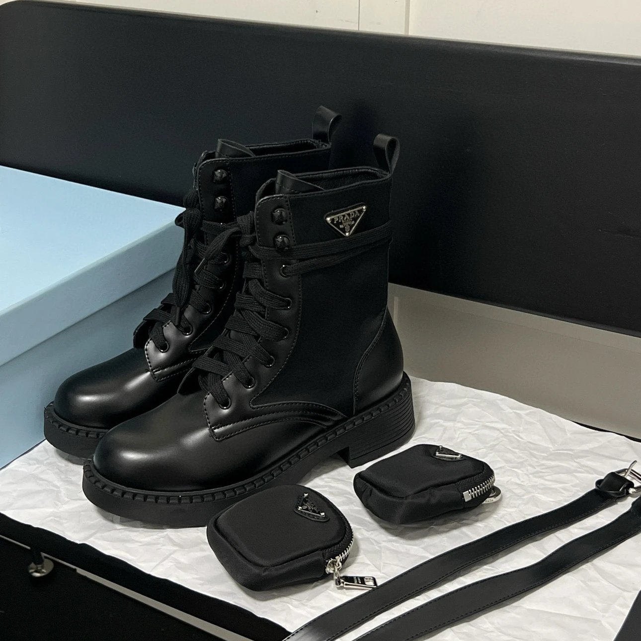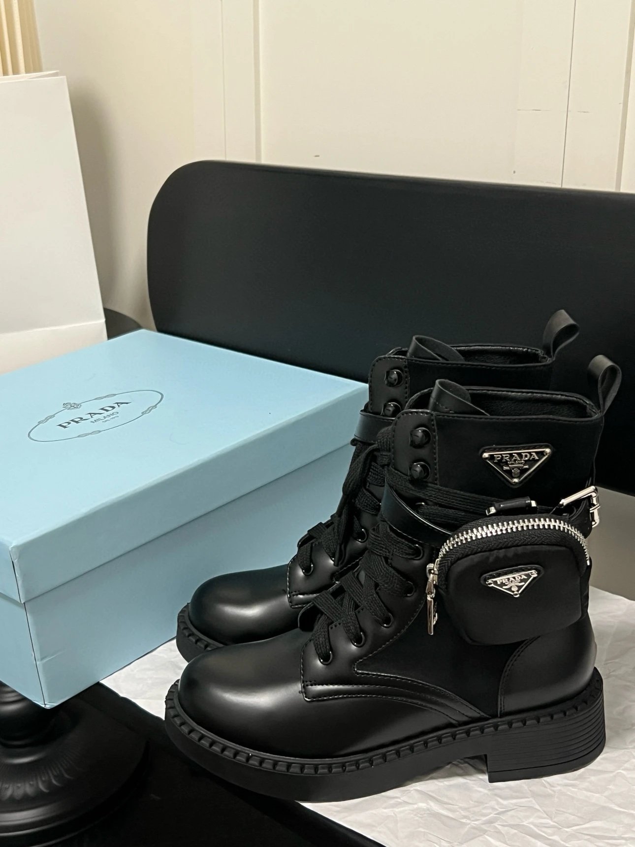 Fall and winter new P family patent leather boots Chelsea boots round toe lace-up Martin boots