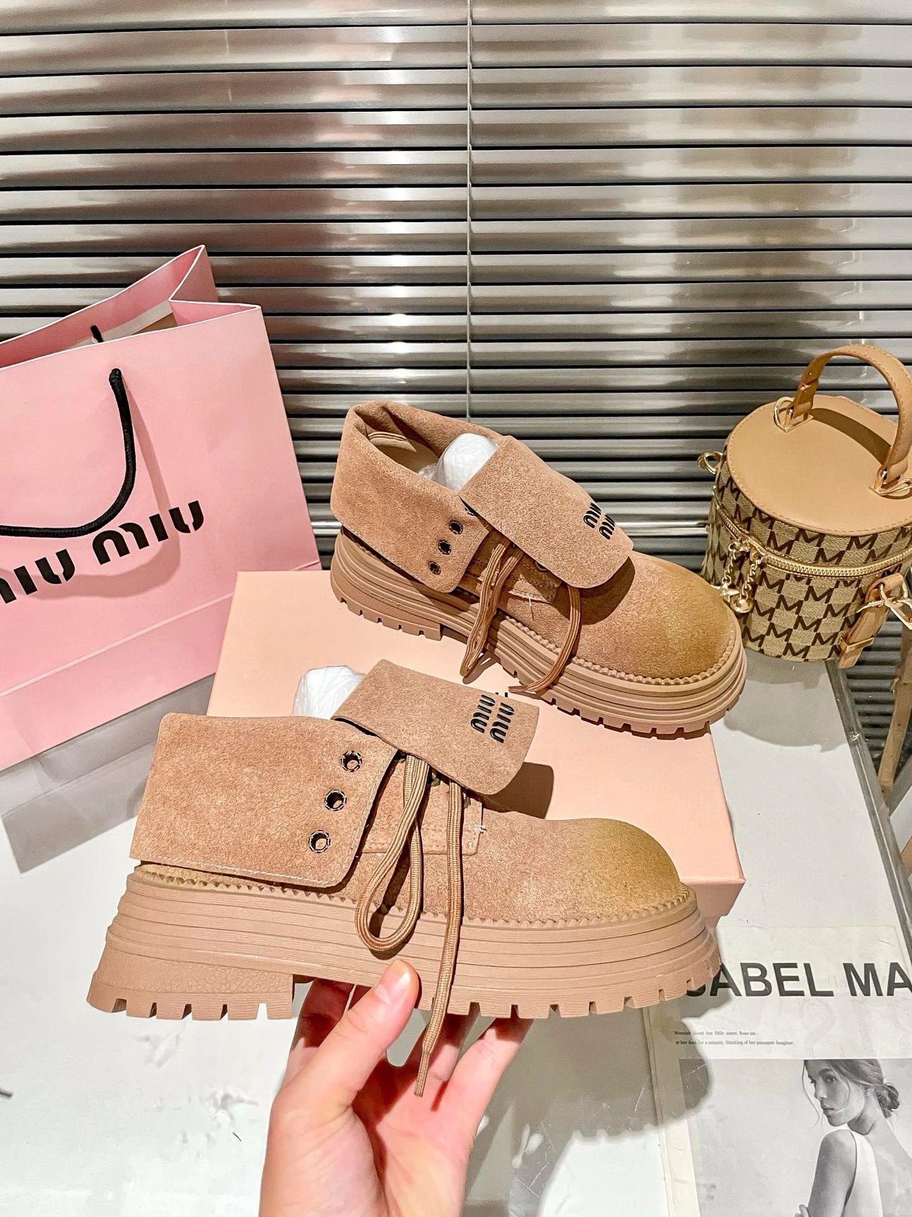 High version M Martin Boots Thick-soled Lapel Martin Boots Women's Thick-soled Two-Wear high or low Boots