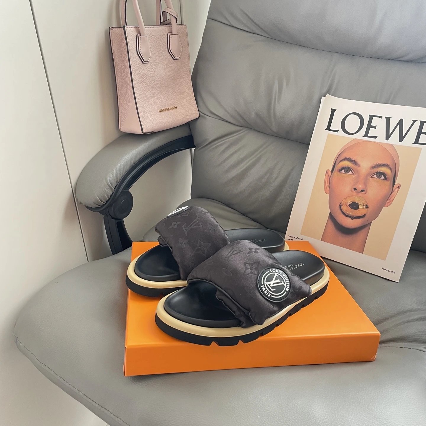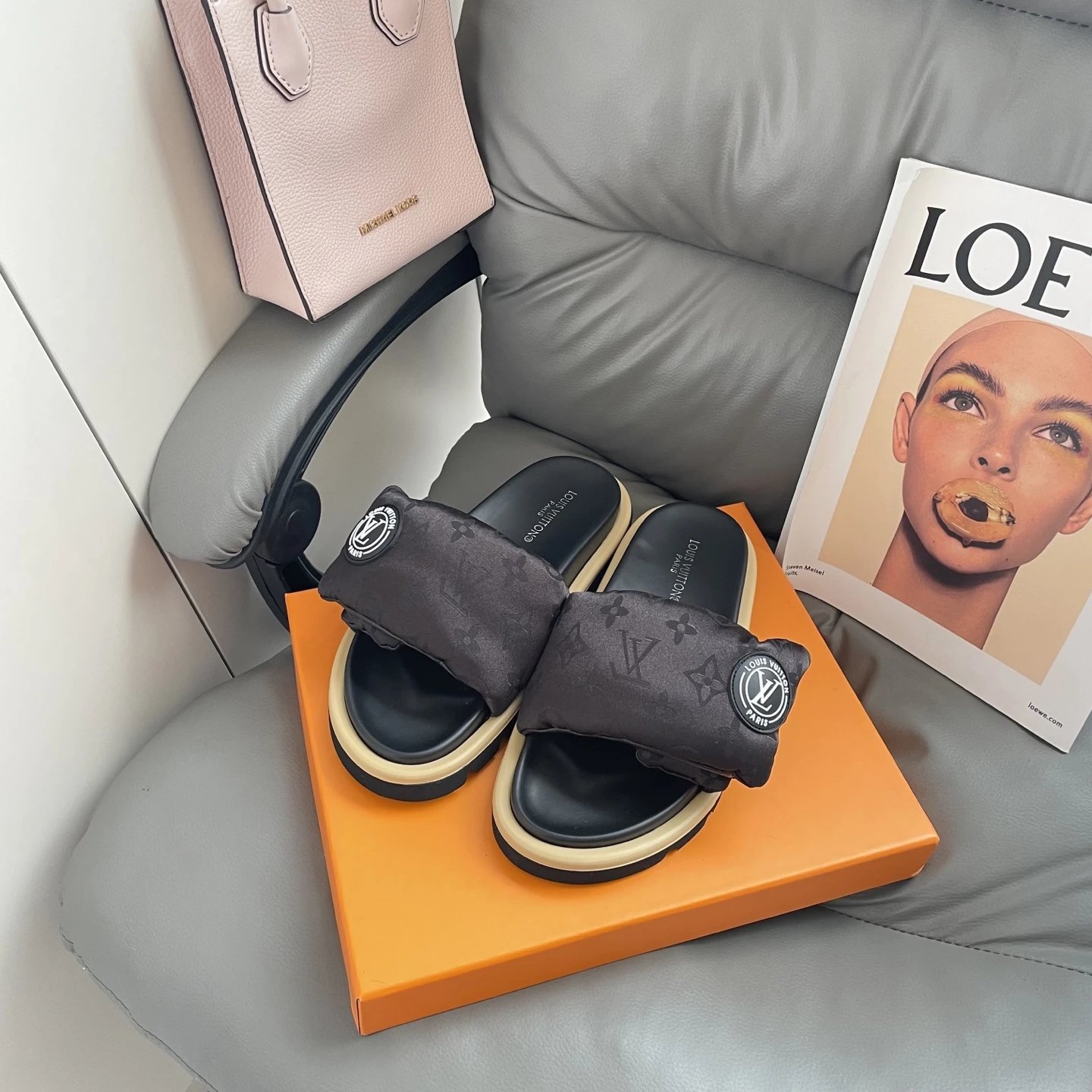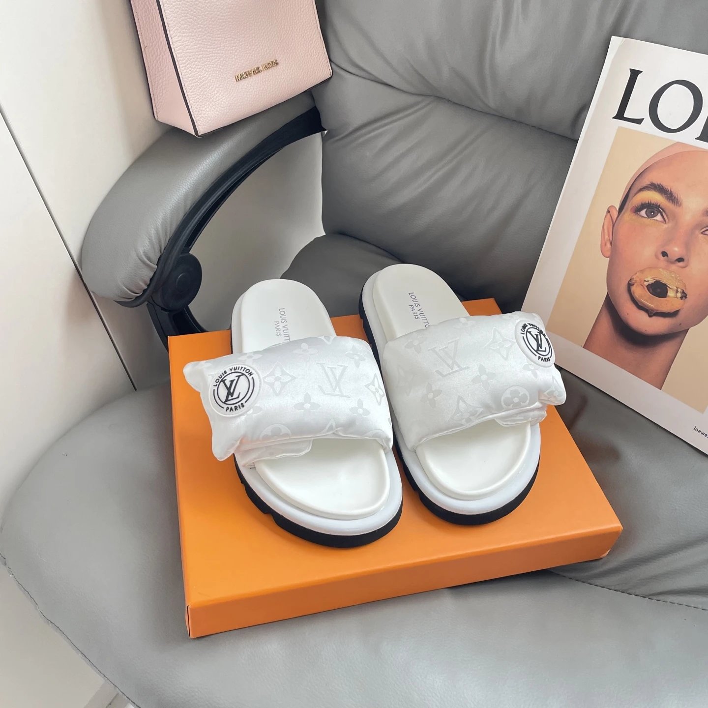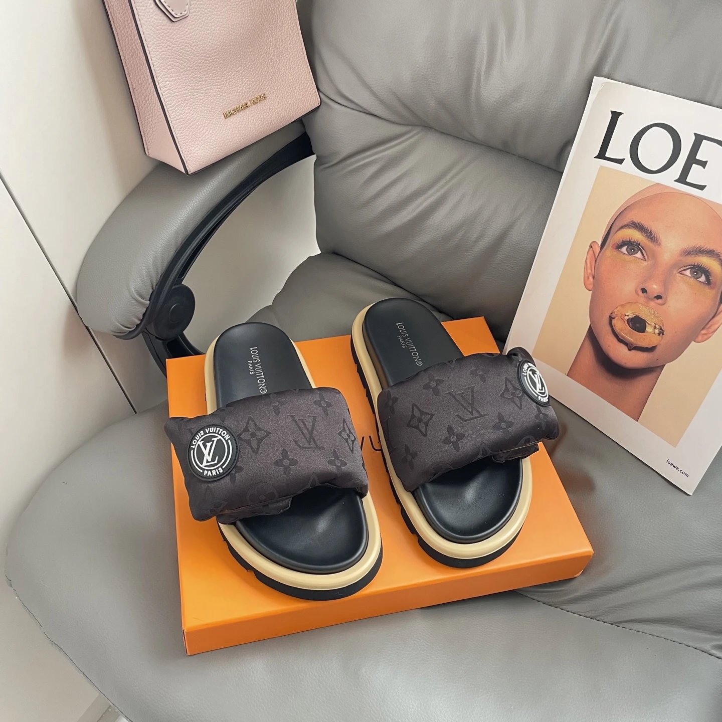 High version printed Velcro thick sole slipper thick sole Velcro slippers women's 2025 new L home wear fashion non-slip denim letter slipper casual non-slip fashion platform slippers