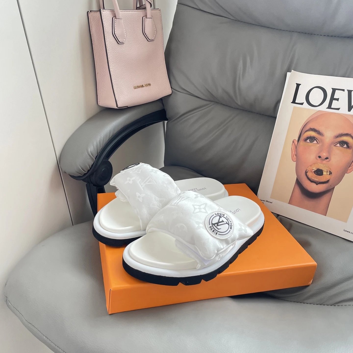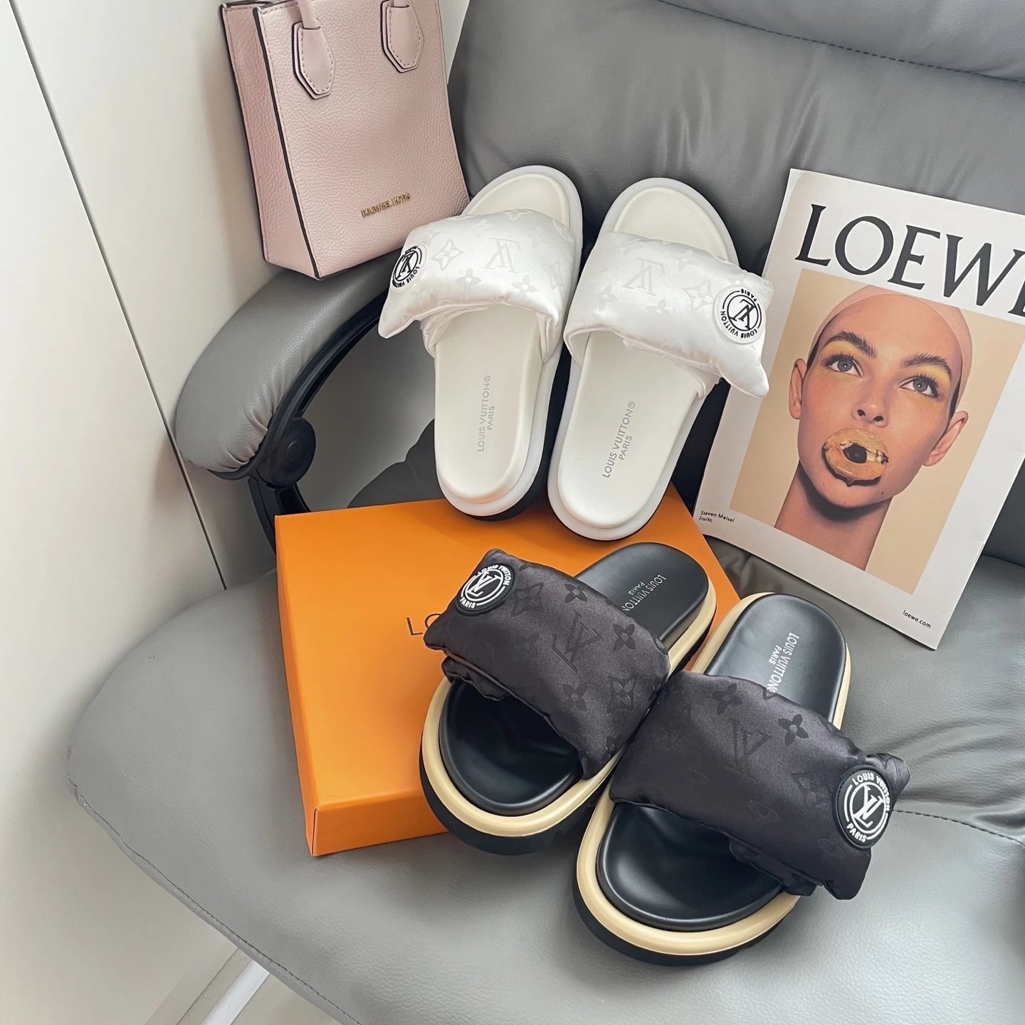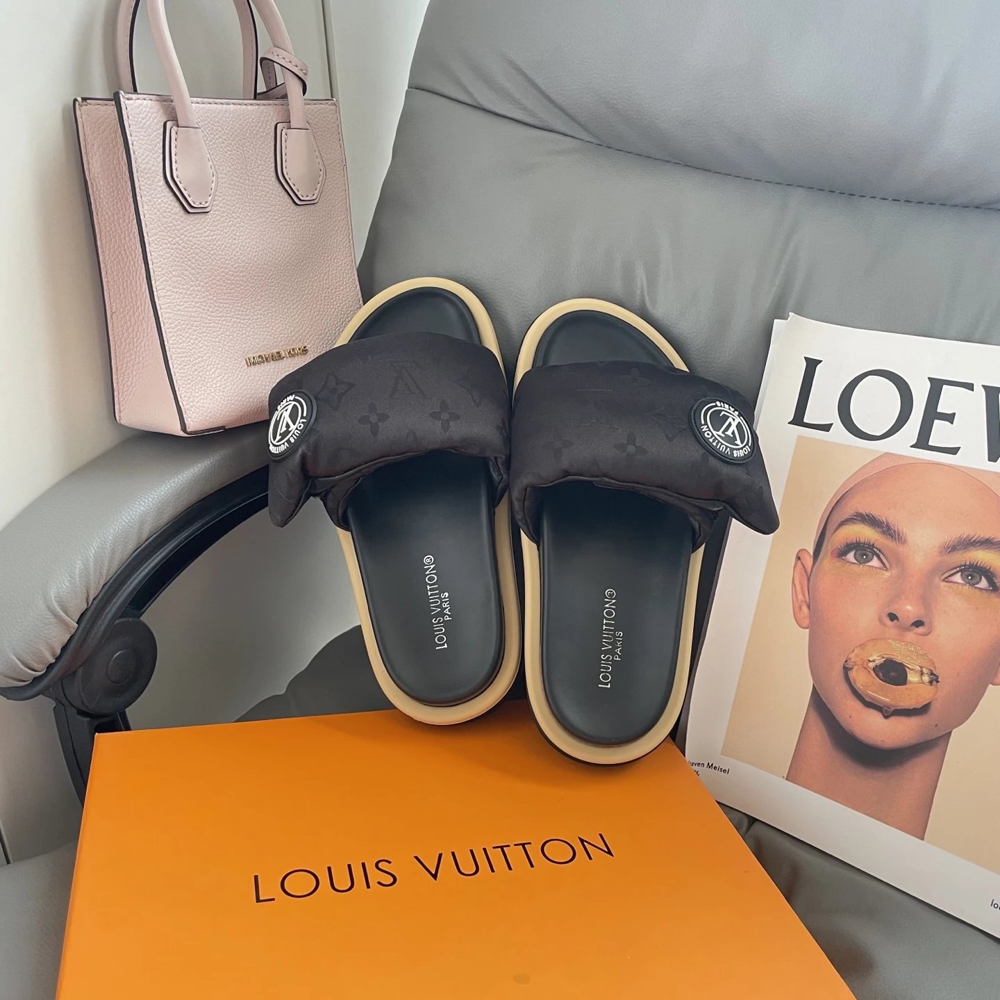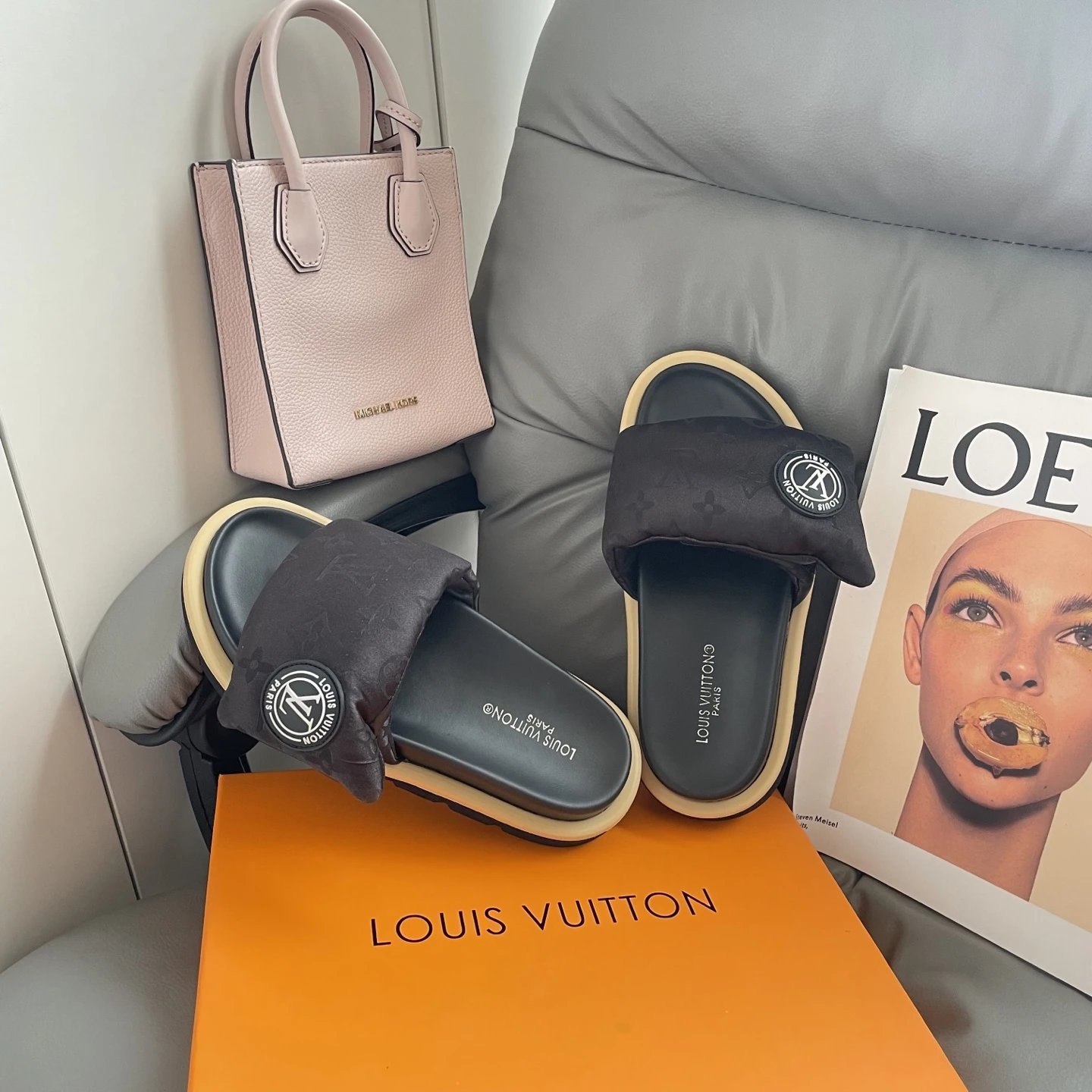High version printed Velcro thick sole slipper thick sole Velcro slippers women's 2025 new L home wear fashion non-slip denim letter slipper casual non-slip fashion platform slippers