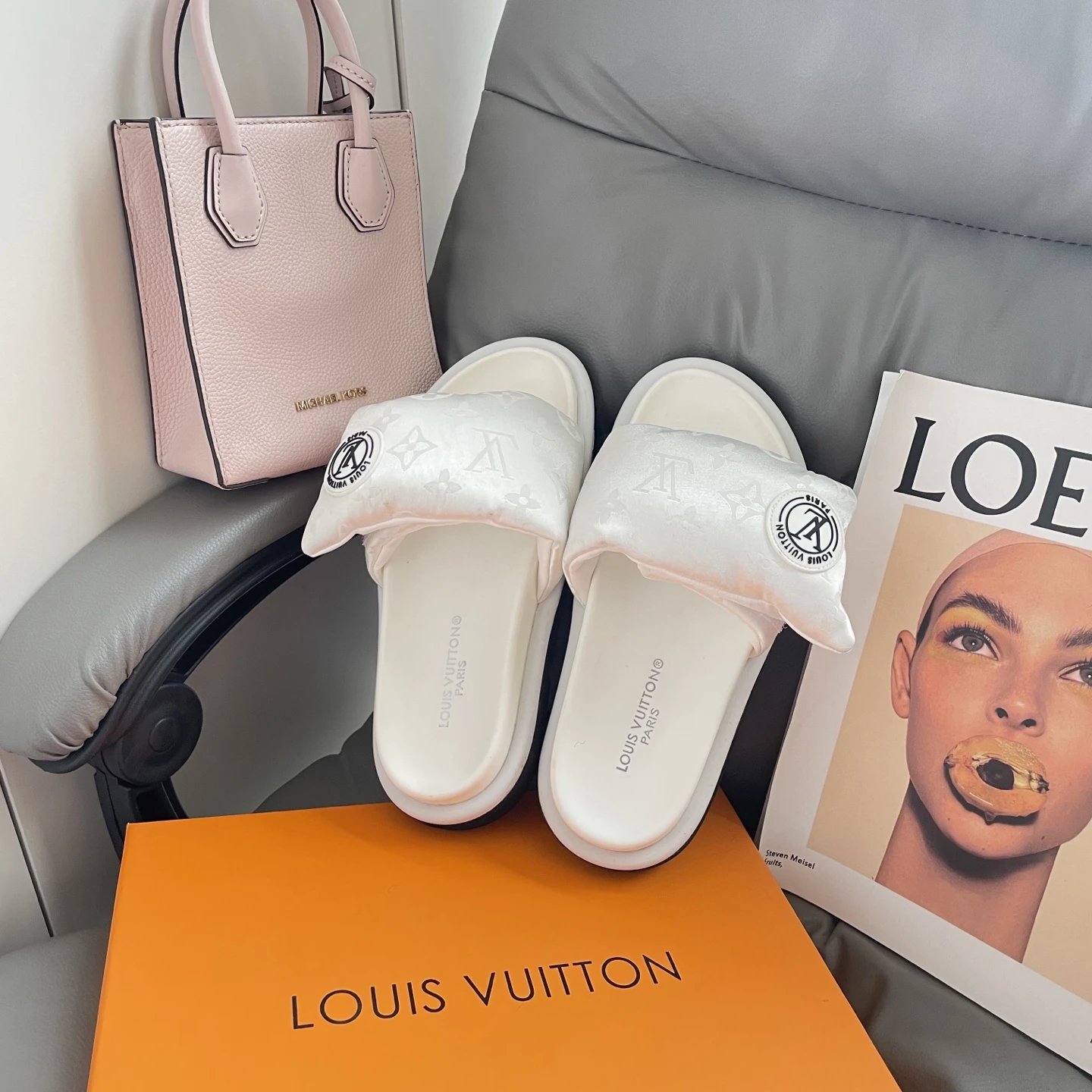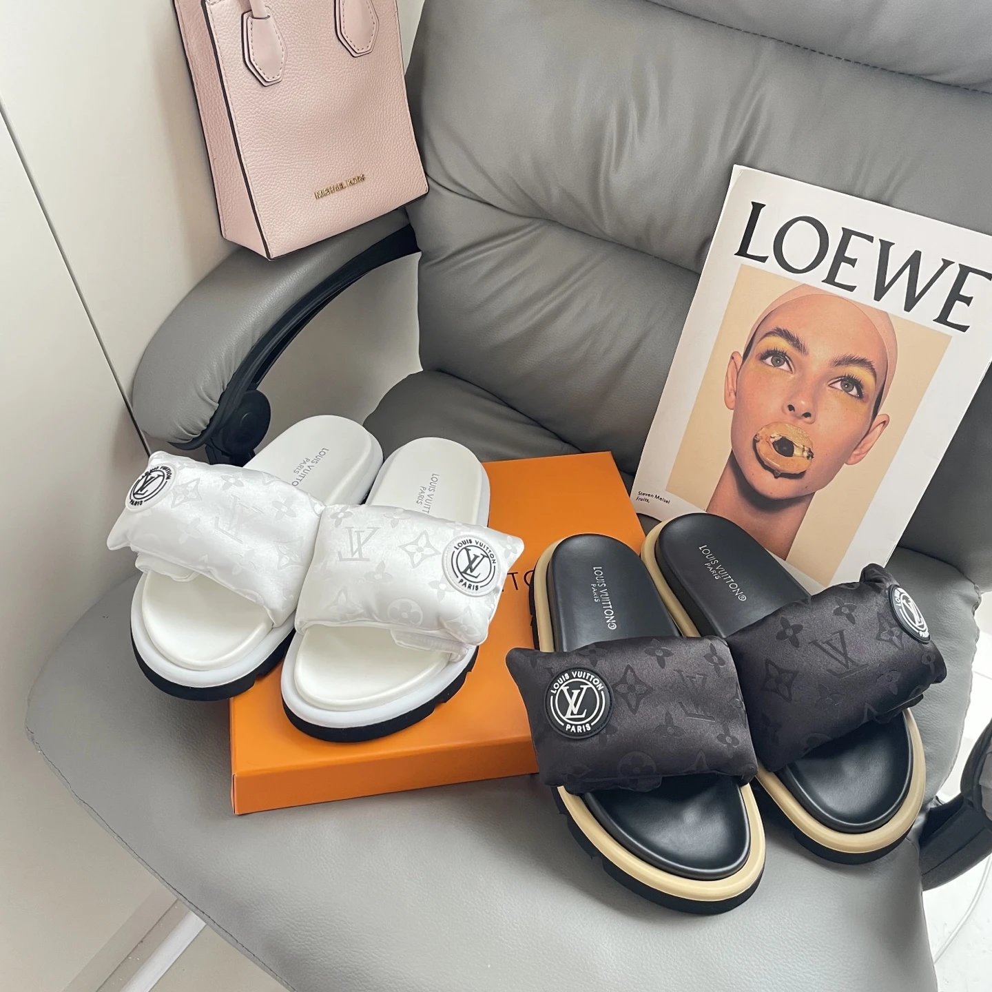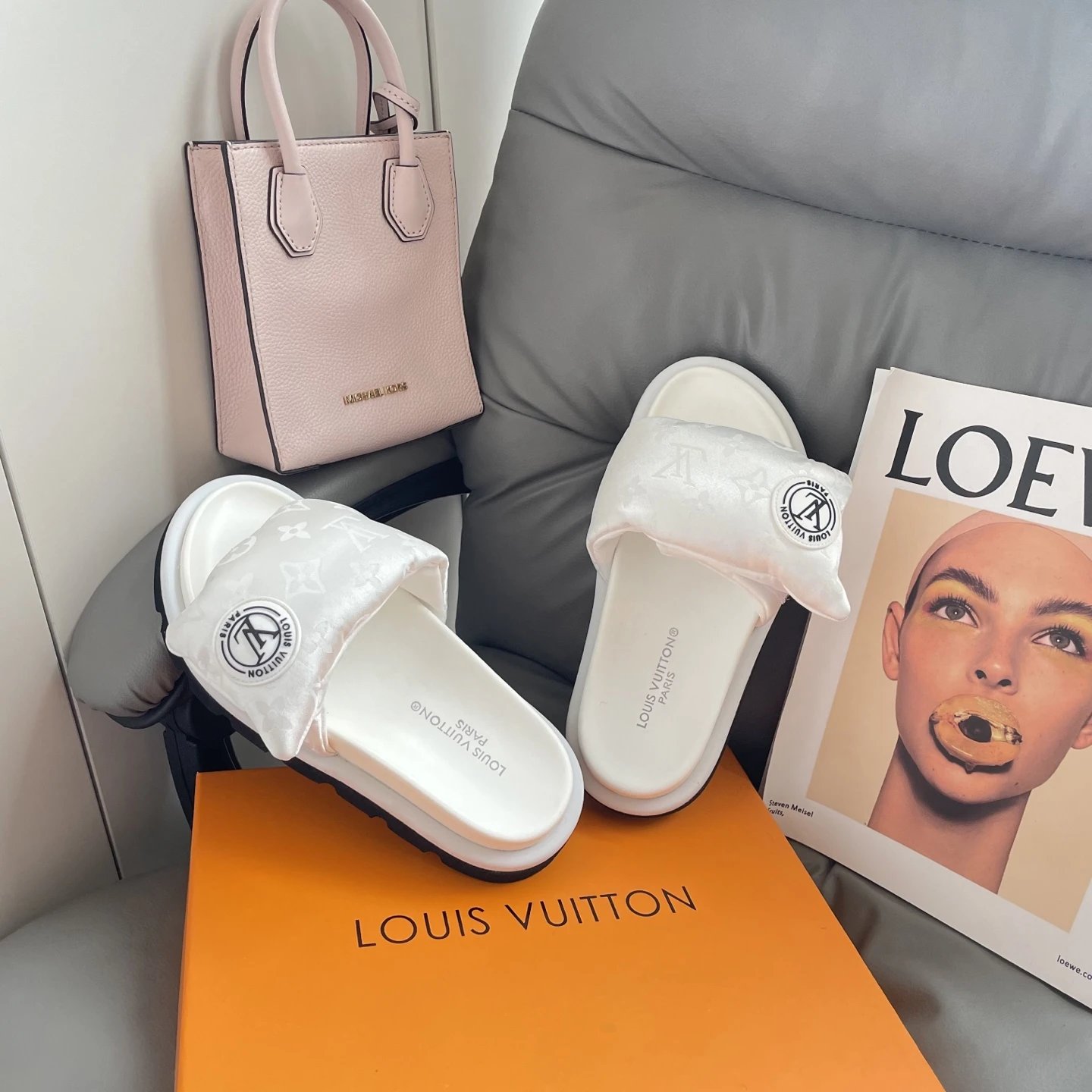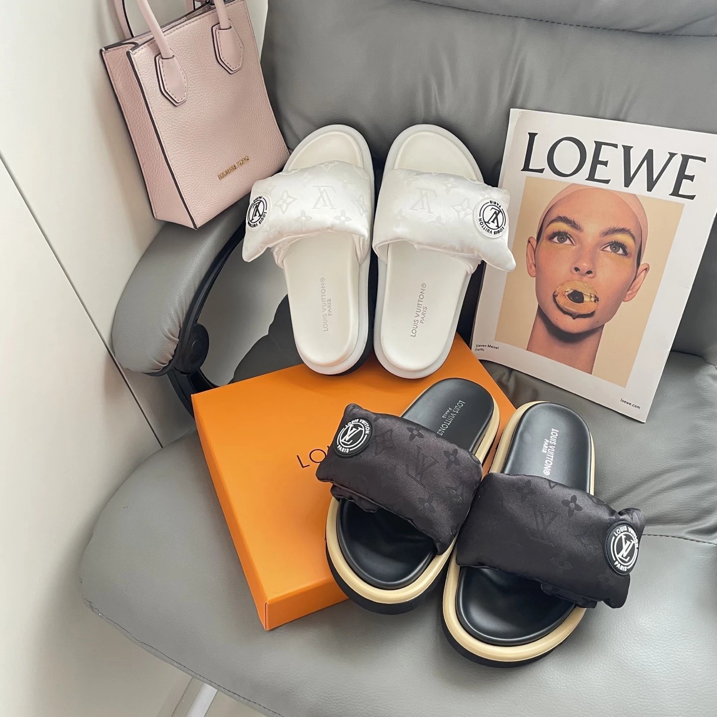 High version printed Velcro thick sole slipper thick sole Velcro slippers women's 2025 new L home wear fashion non-slip denim letter slipper casual non-slip fashion platform slippers