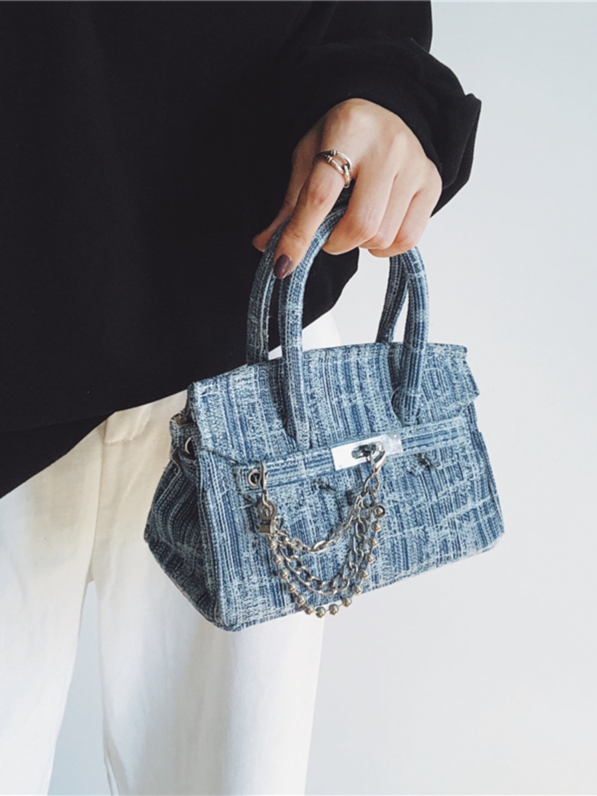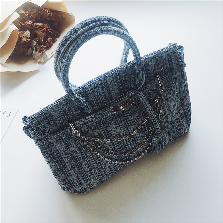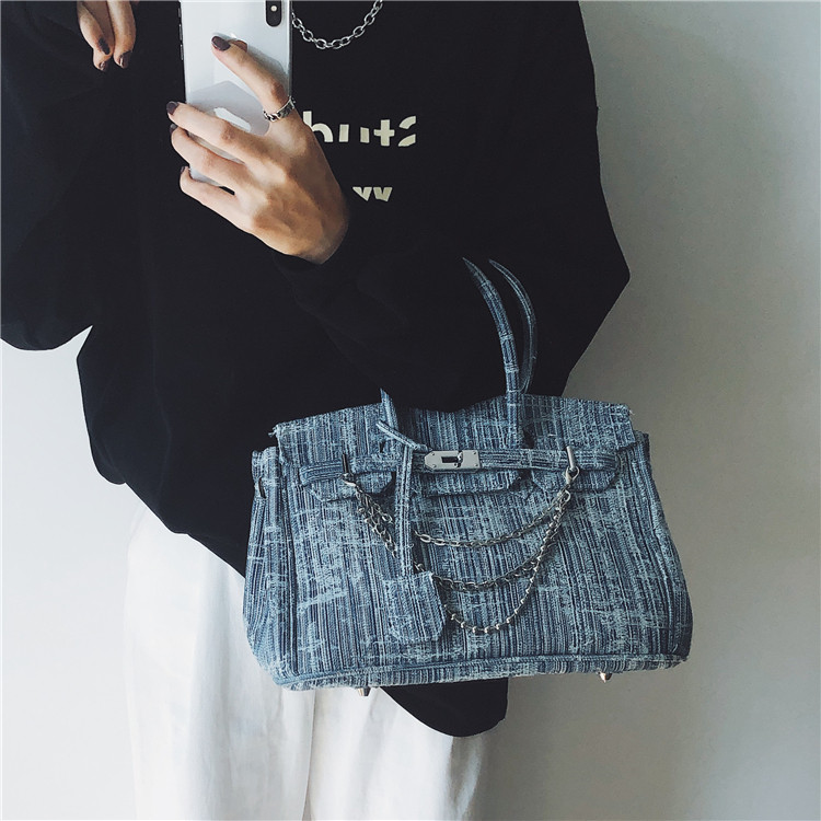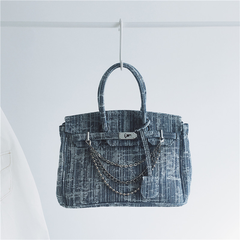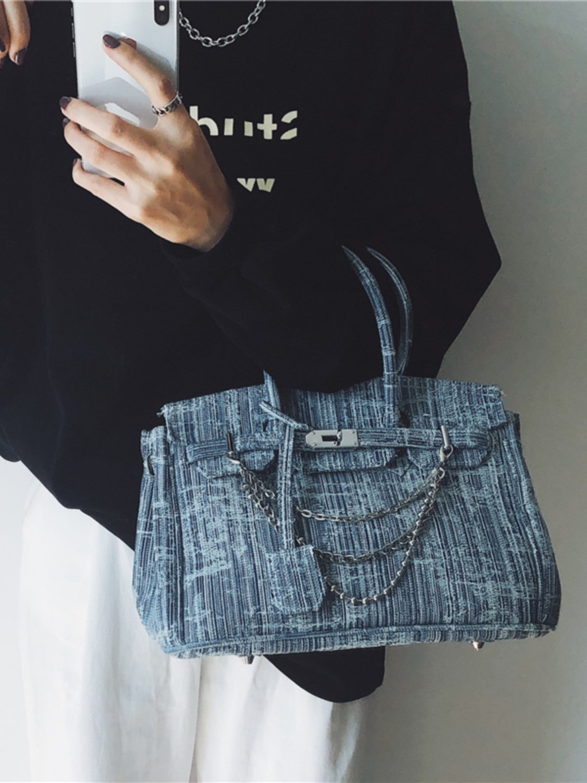 Internet celebrity same denim platinum bag Kylie bag large capacity fashion casual women's bag, hand-held shoulder bag, cross-body bag