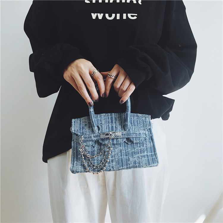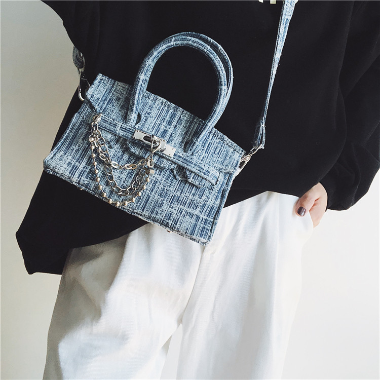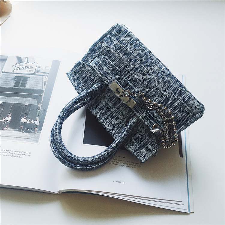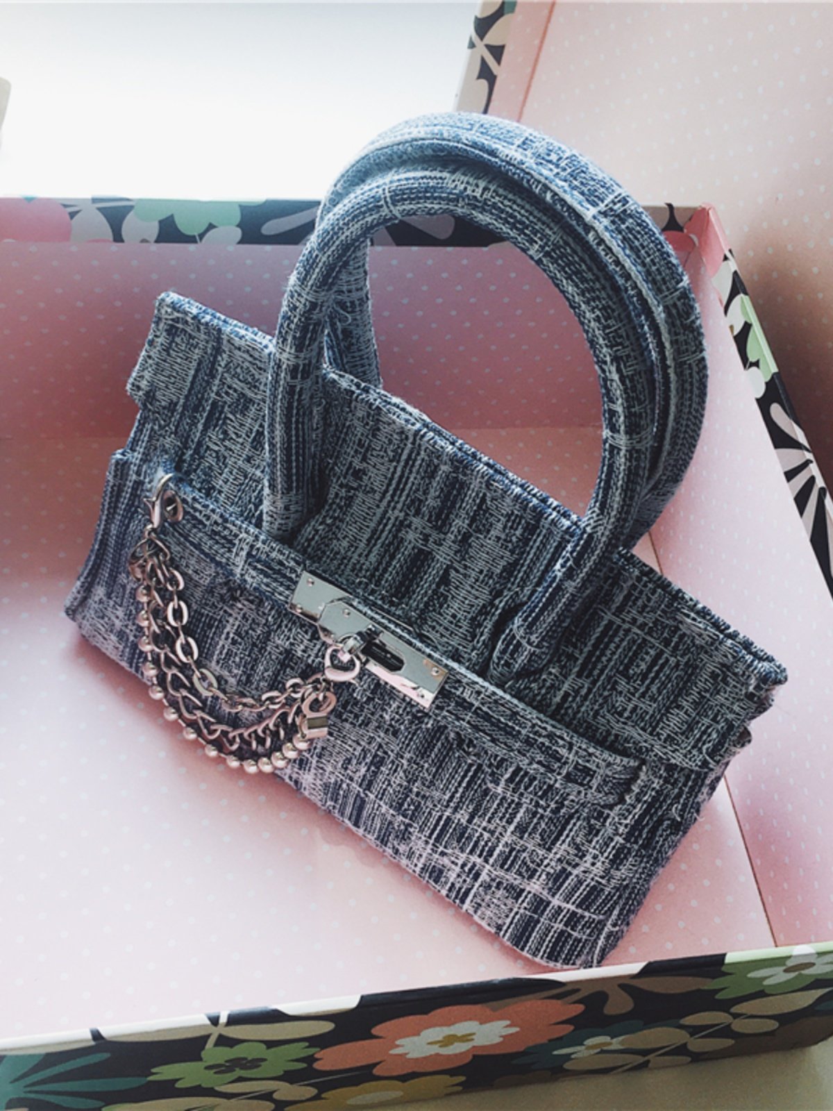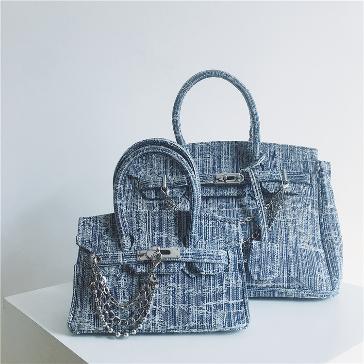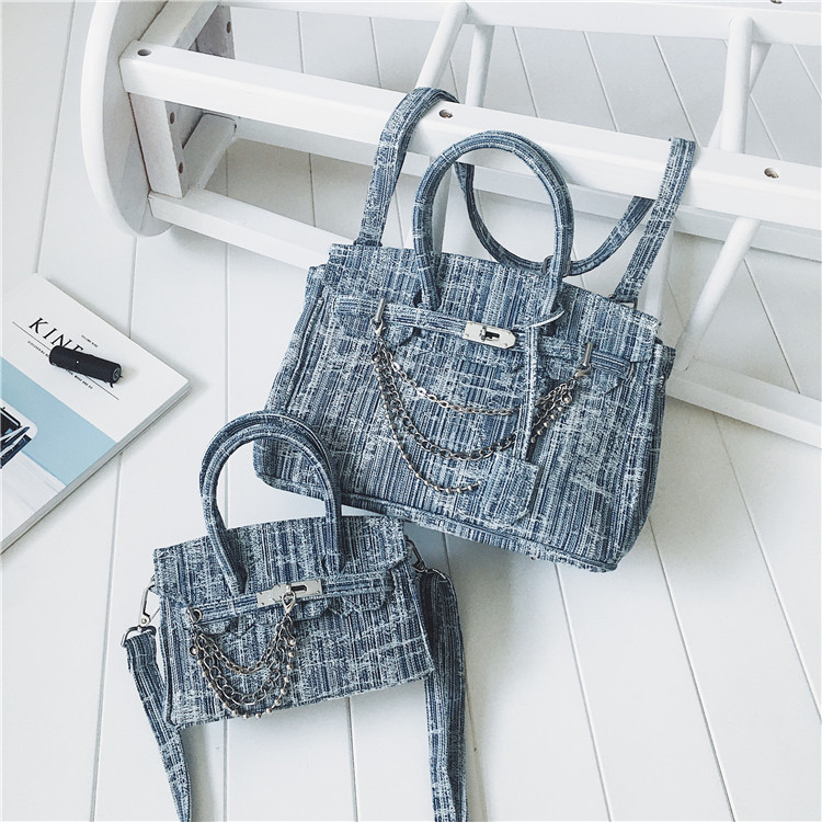 Internet celebrity same denim platinum bag Kylie bag large capacity fashion casual women's bag, hand-held shoulder bag, cross-body bag