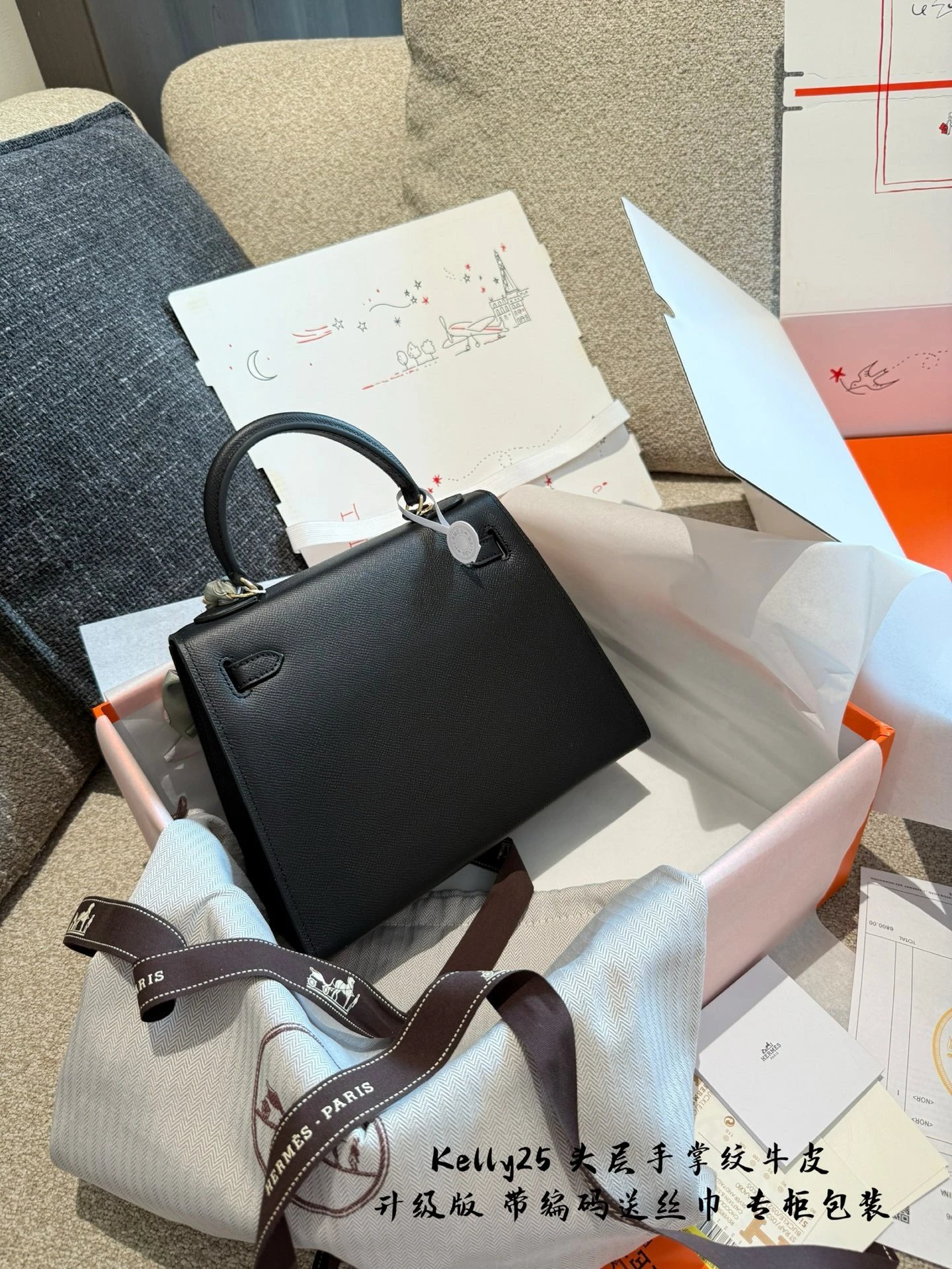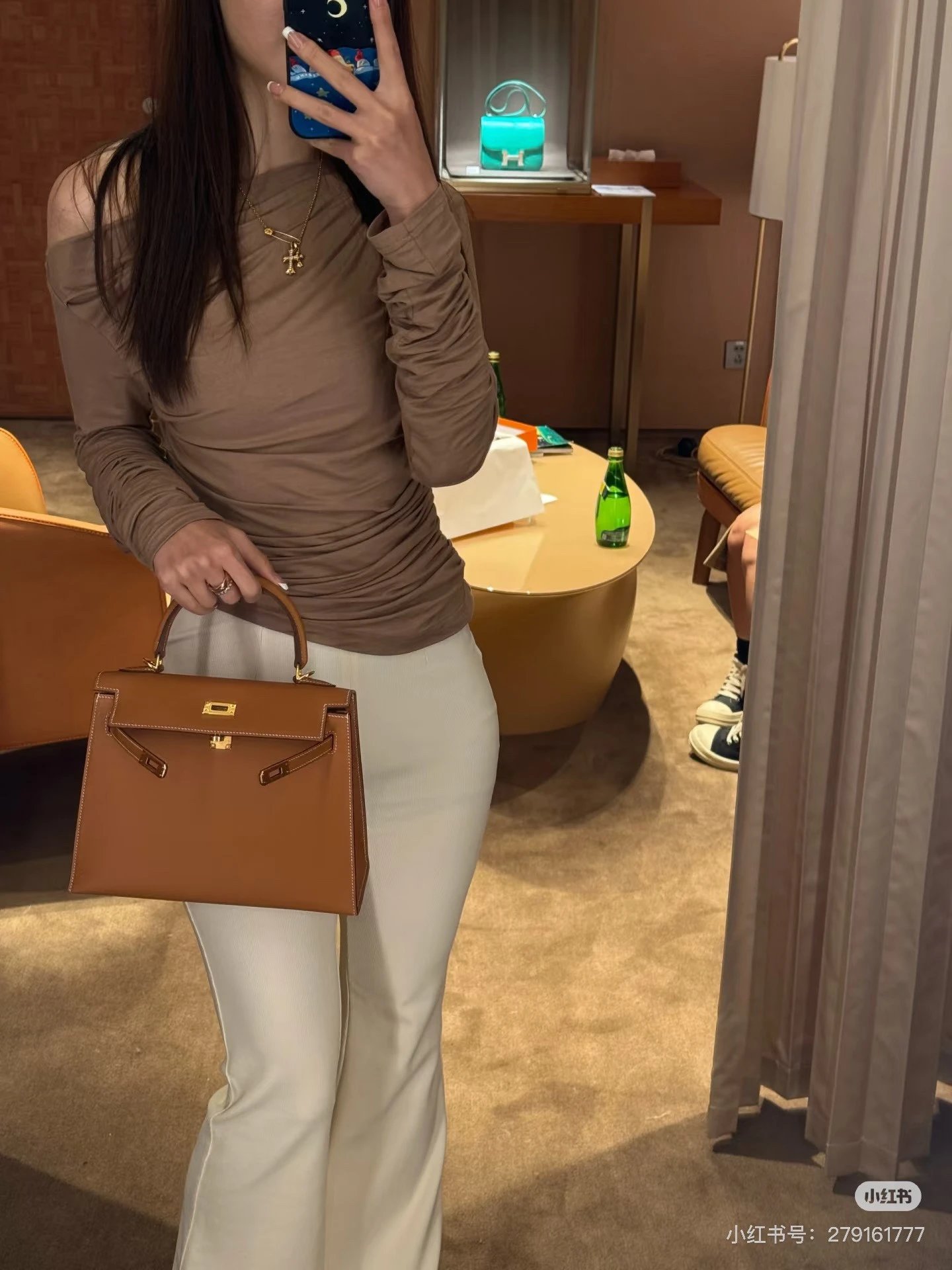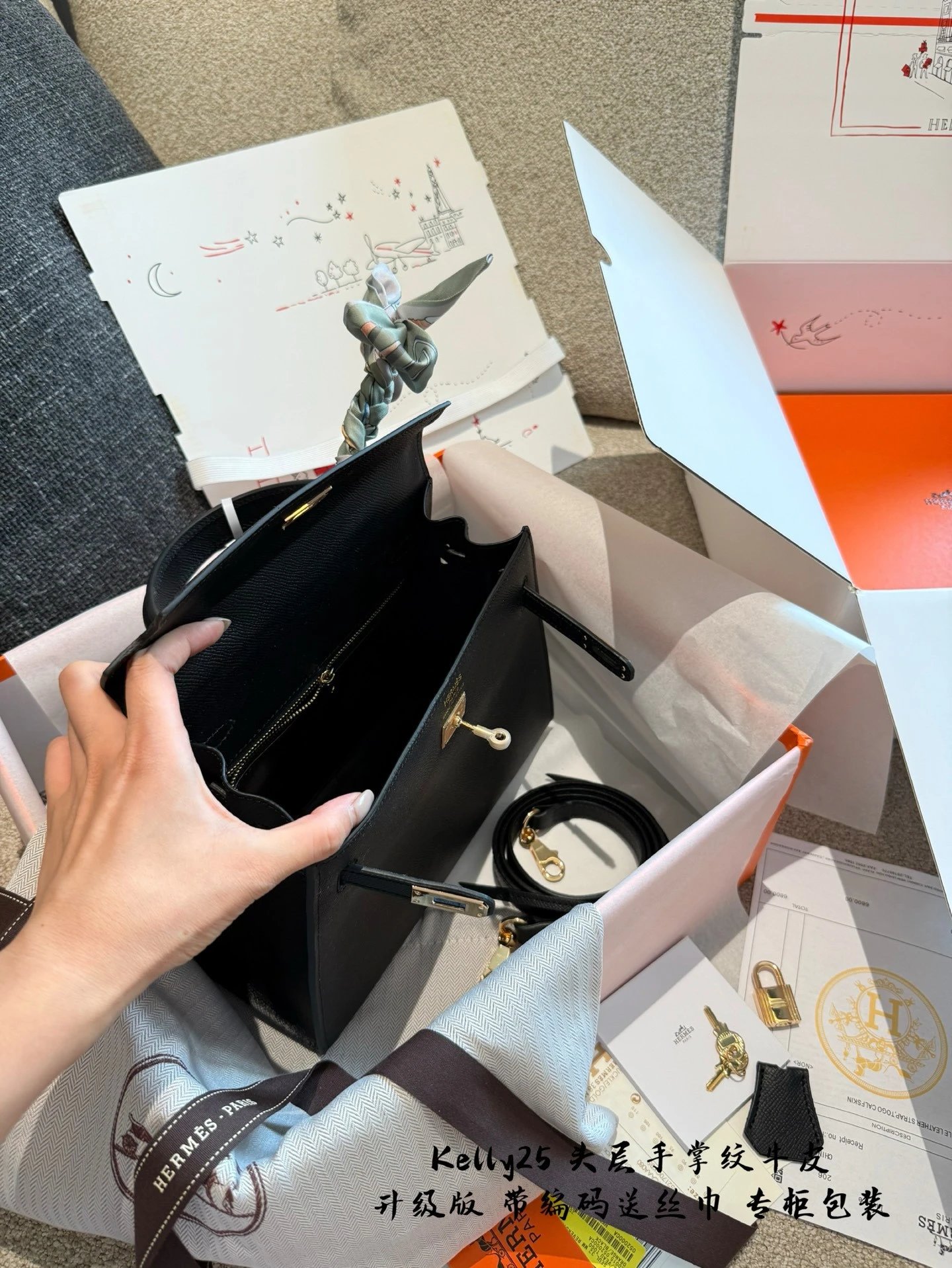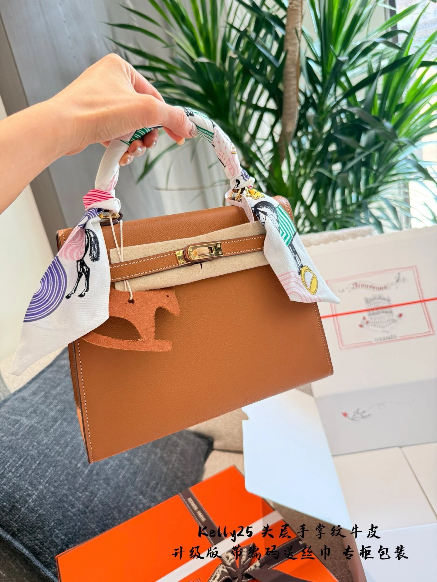 Kelly bag H family crossbody bag Kelly 25** pure leather hand bag pure leather shoulder bag details perfect real shot goddess bag **original order hardware exquisite gift original hardware logo