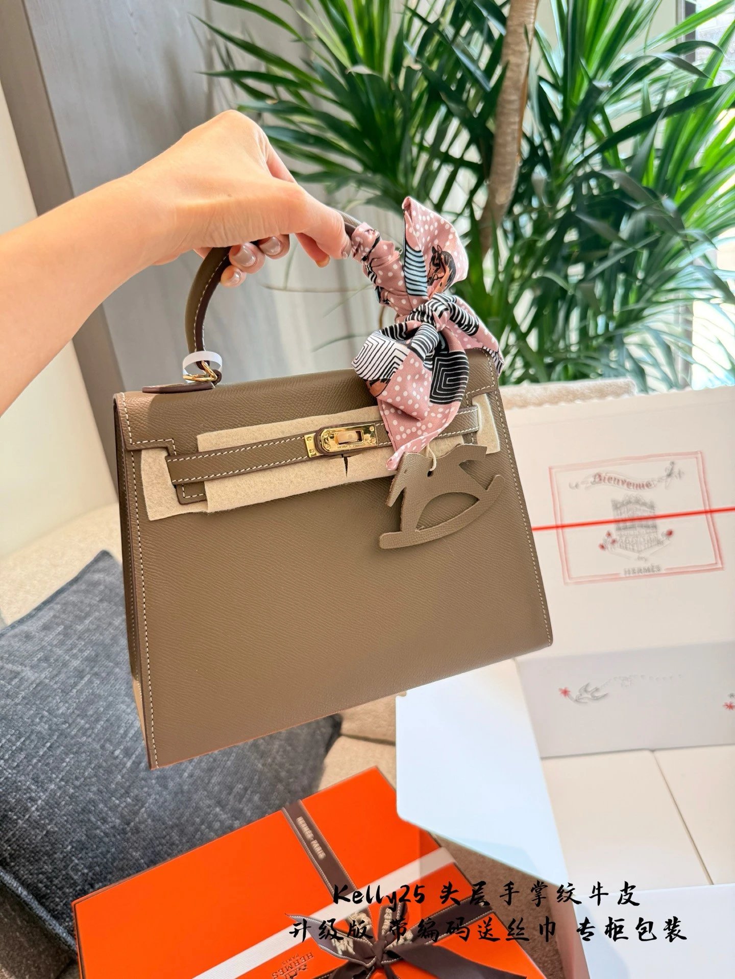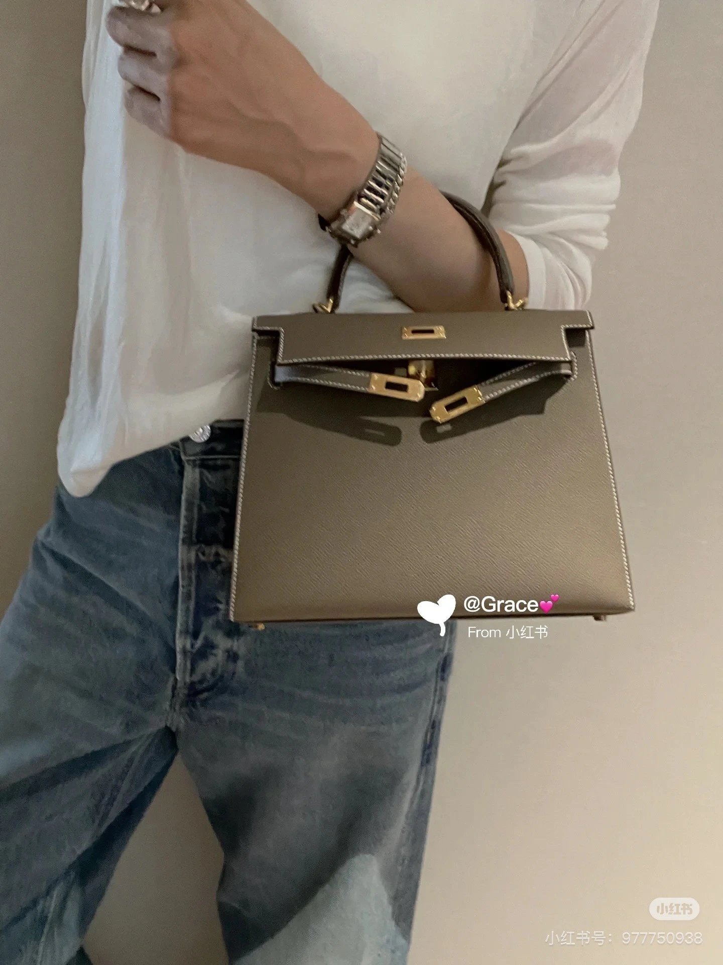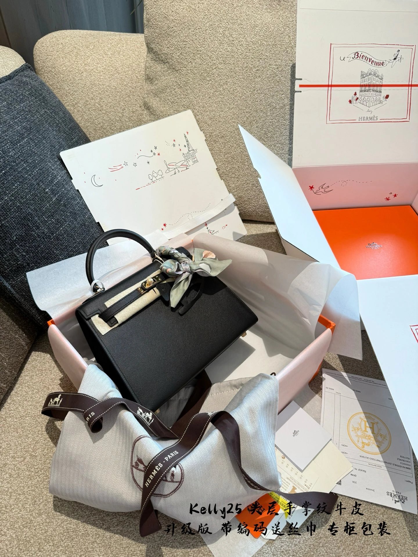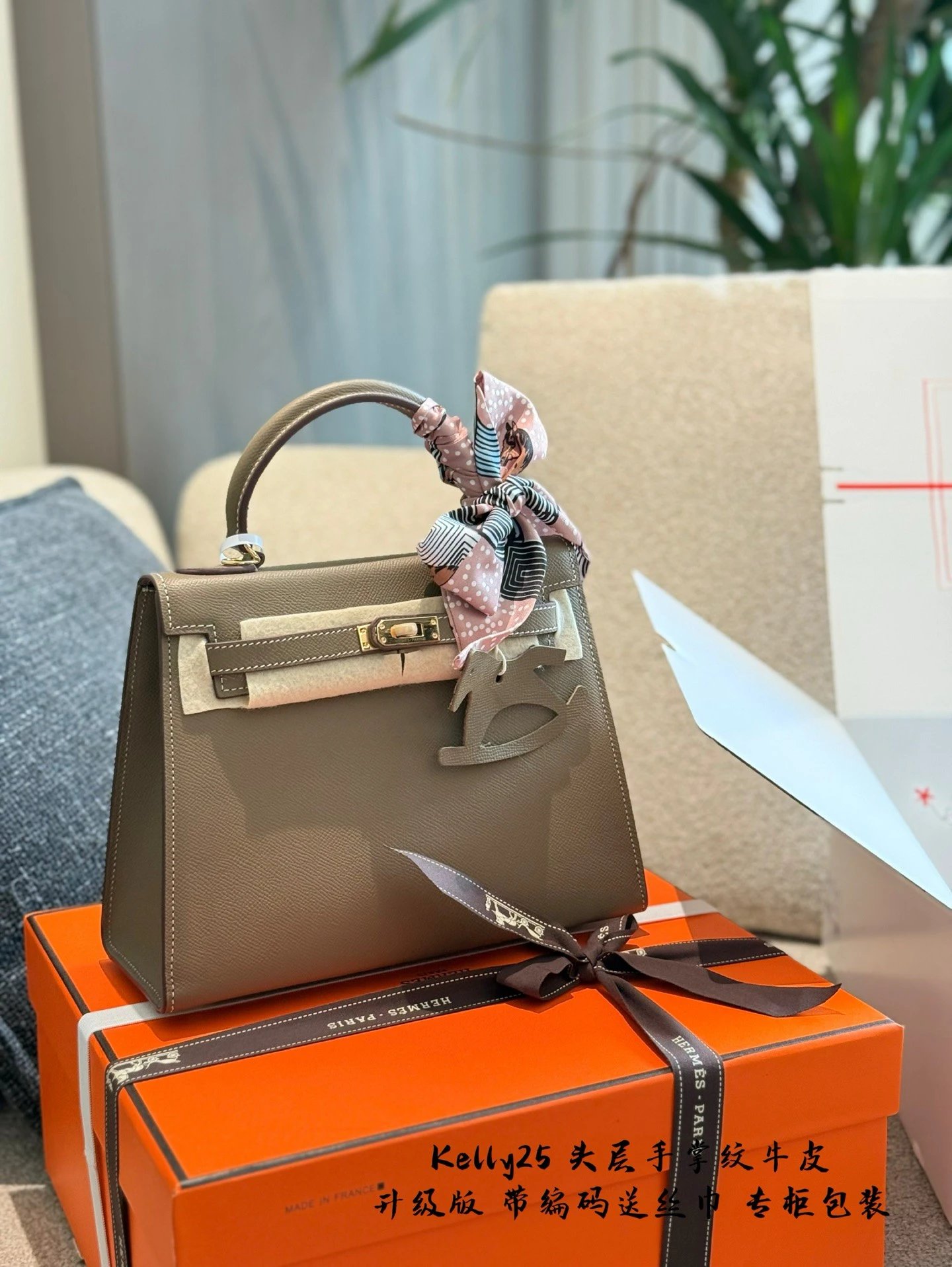Kelly bag H family crossbody bag Kelly 25** pure leather hand bag pure leather shoulder bag details perfect real shot goddess bag **original order hardware exquisite gift original hardware logo